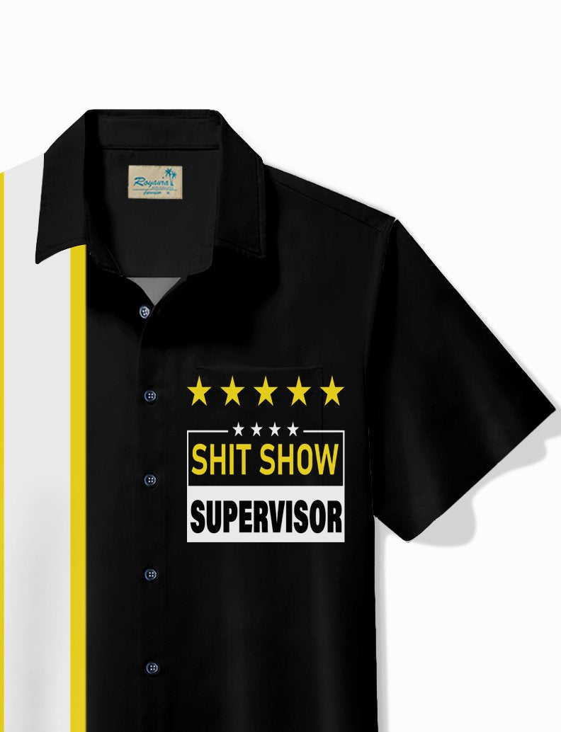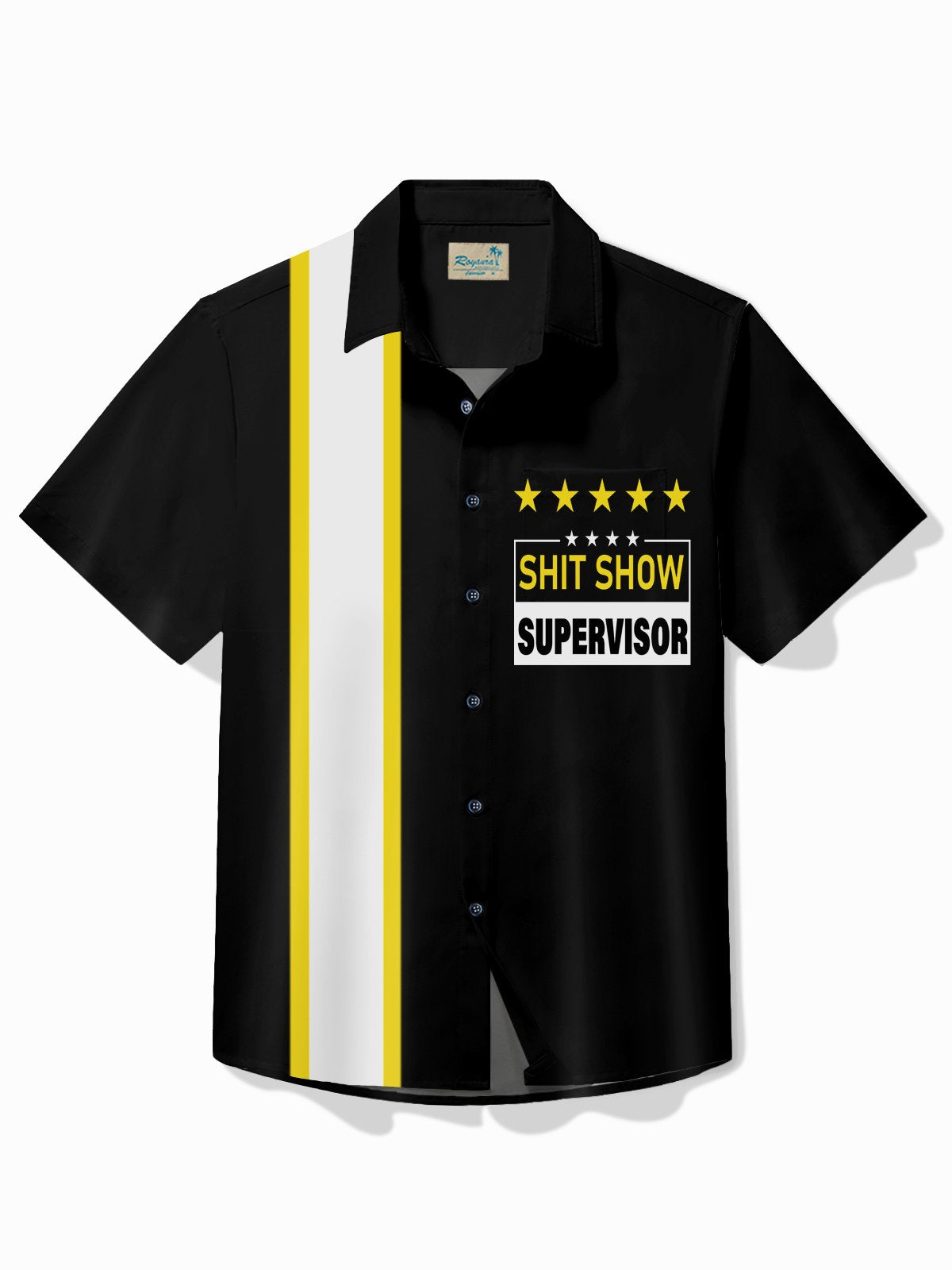 Alohadaddy Retro Bowling Men's Hawaiian Shirt Letter Pentagram Print Pocket Camping Shirt