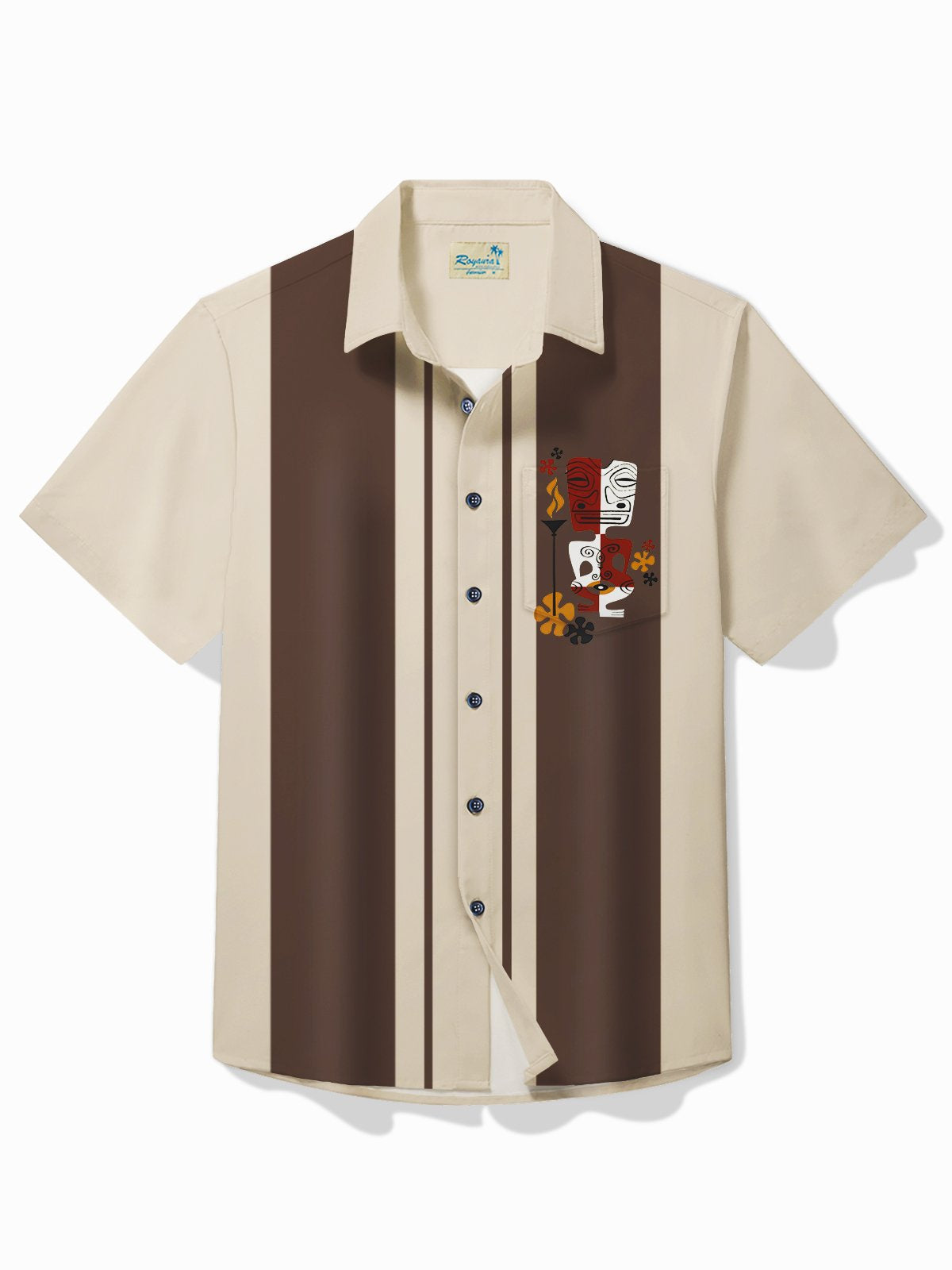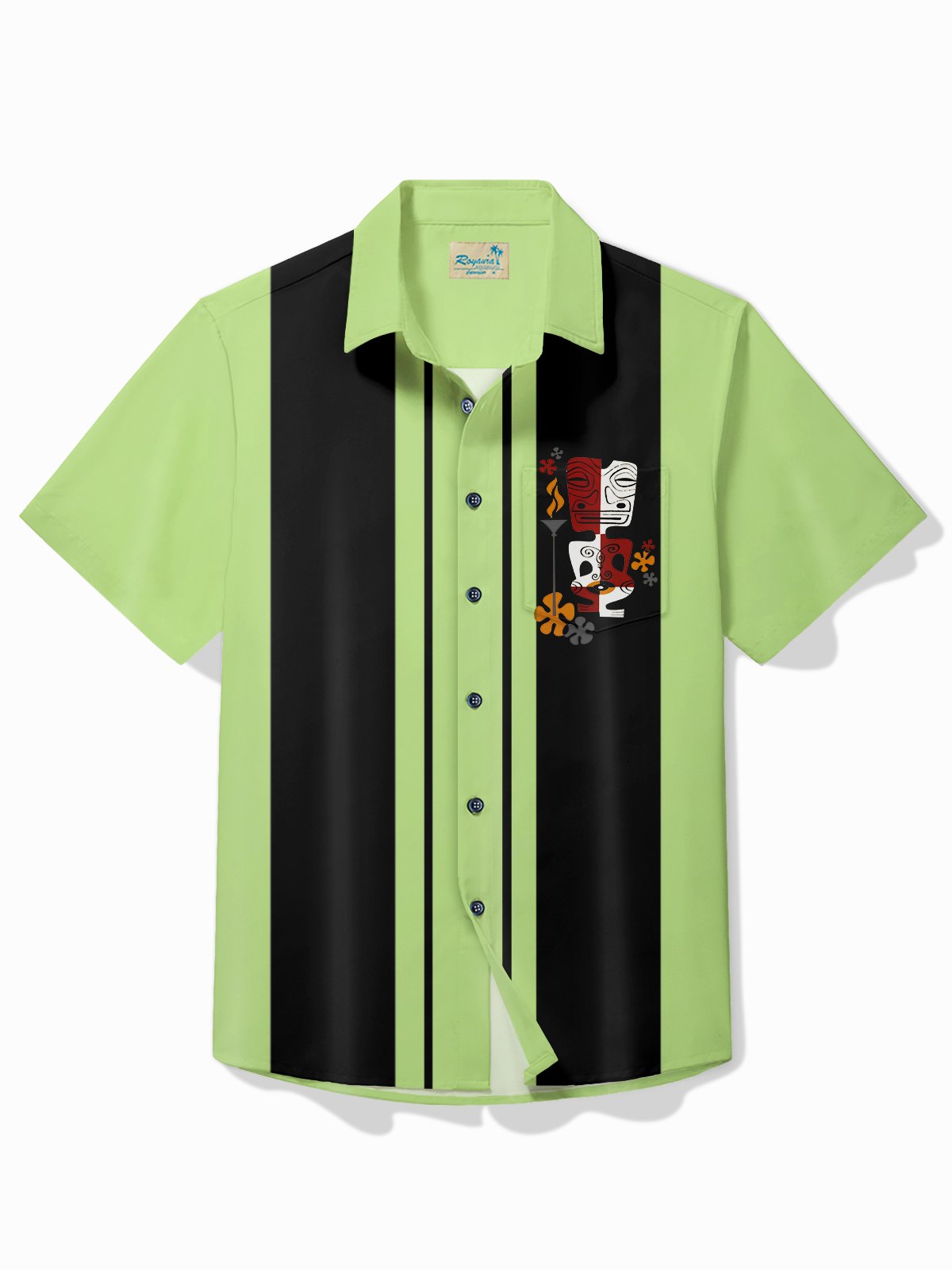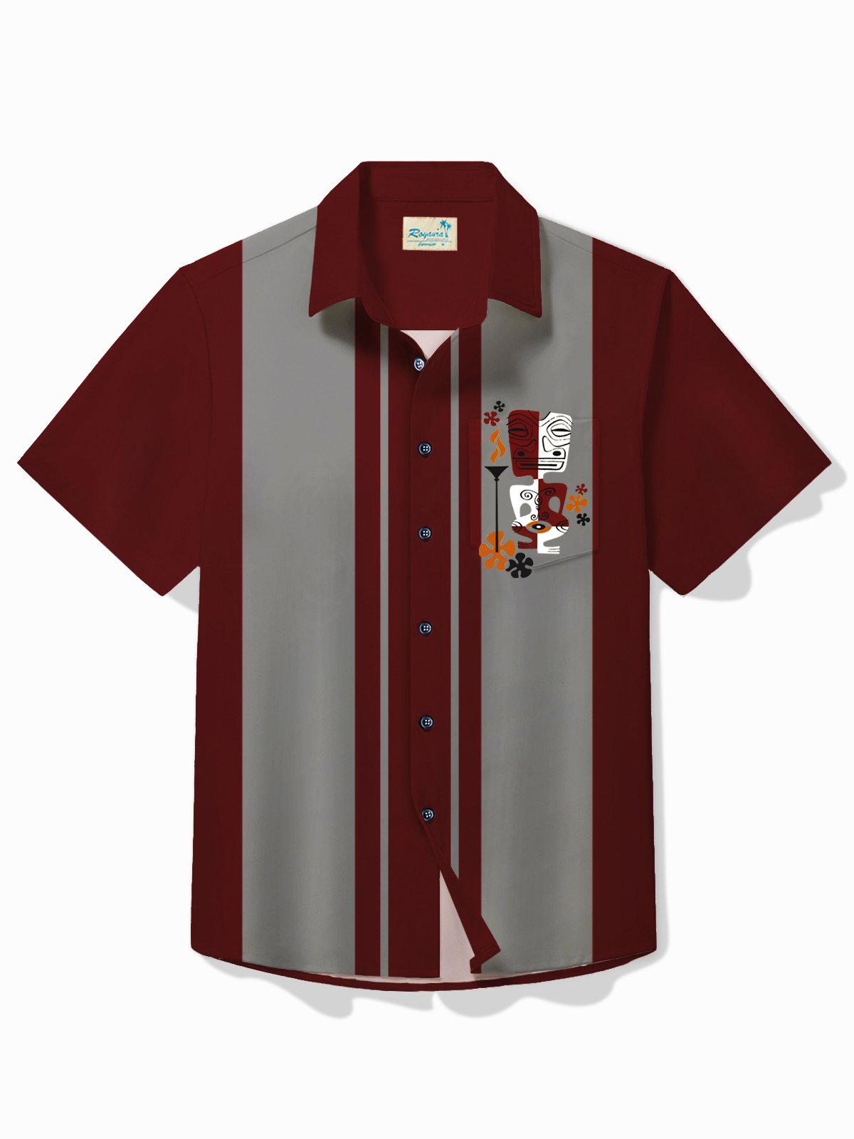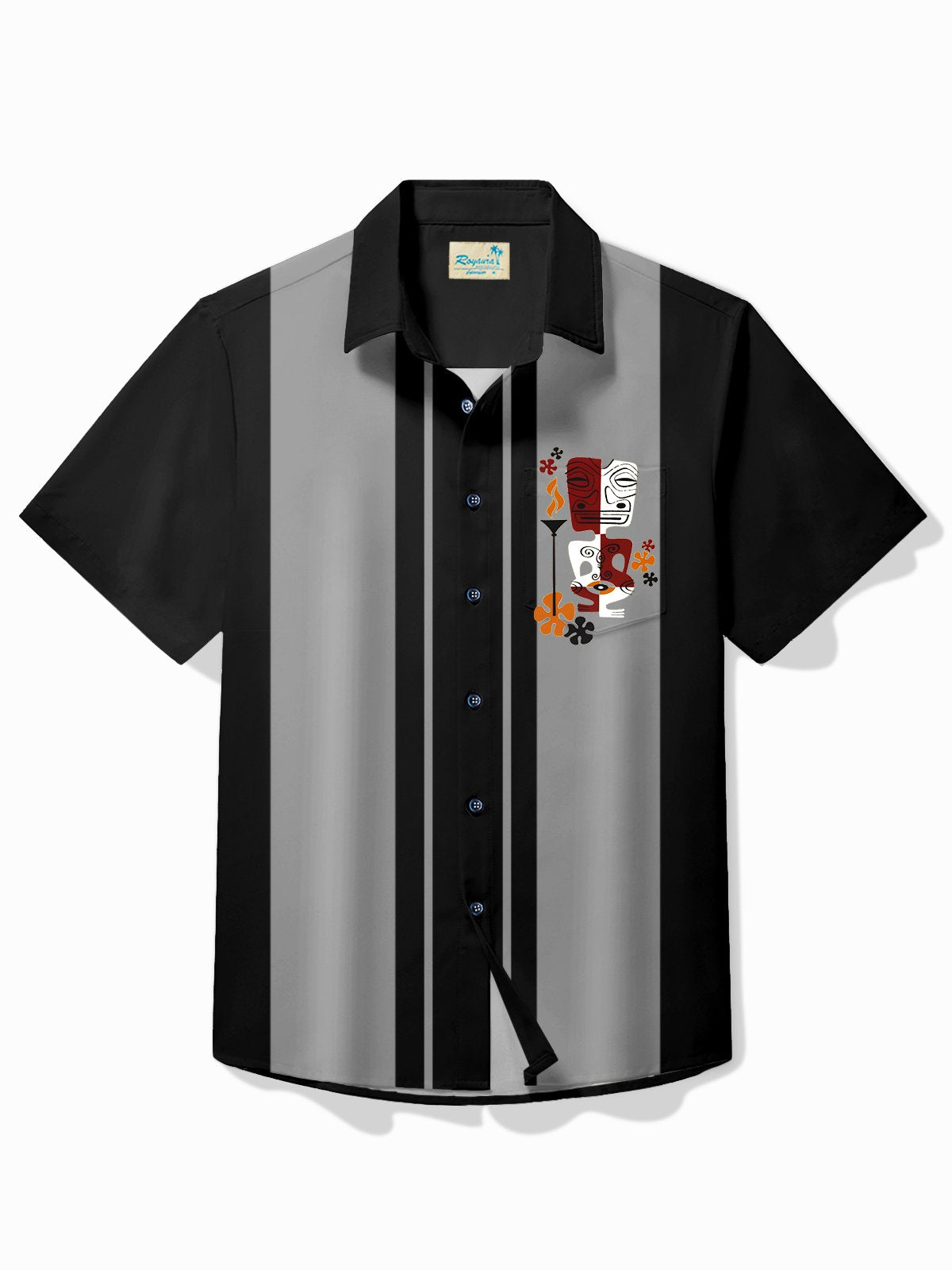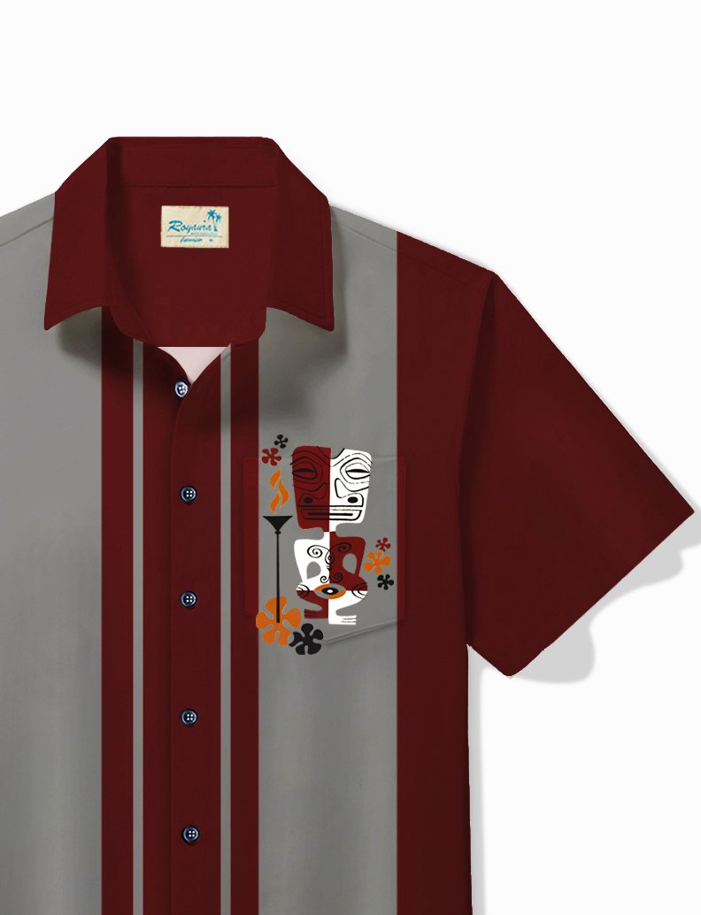Alohadaddy Retro Bowling Men's Hawaiian Shirt Tiki Print Pocket Camping Shirt