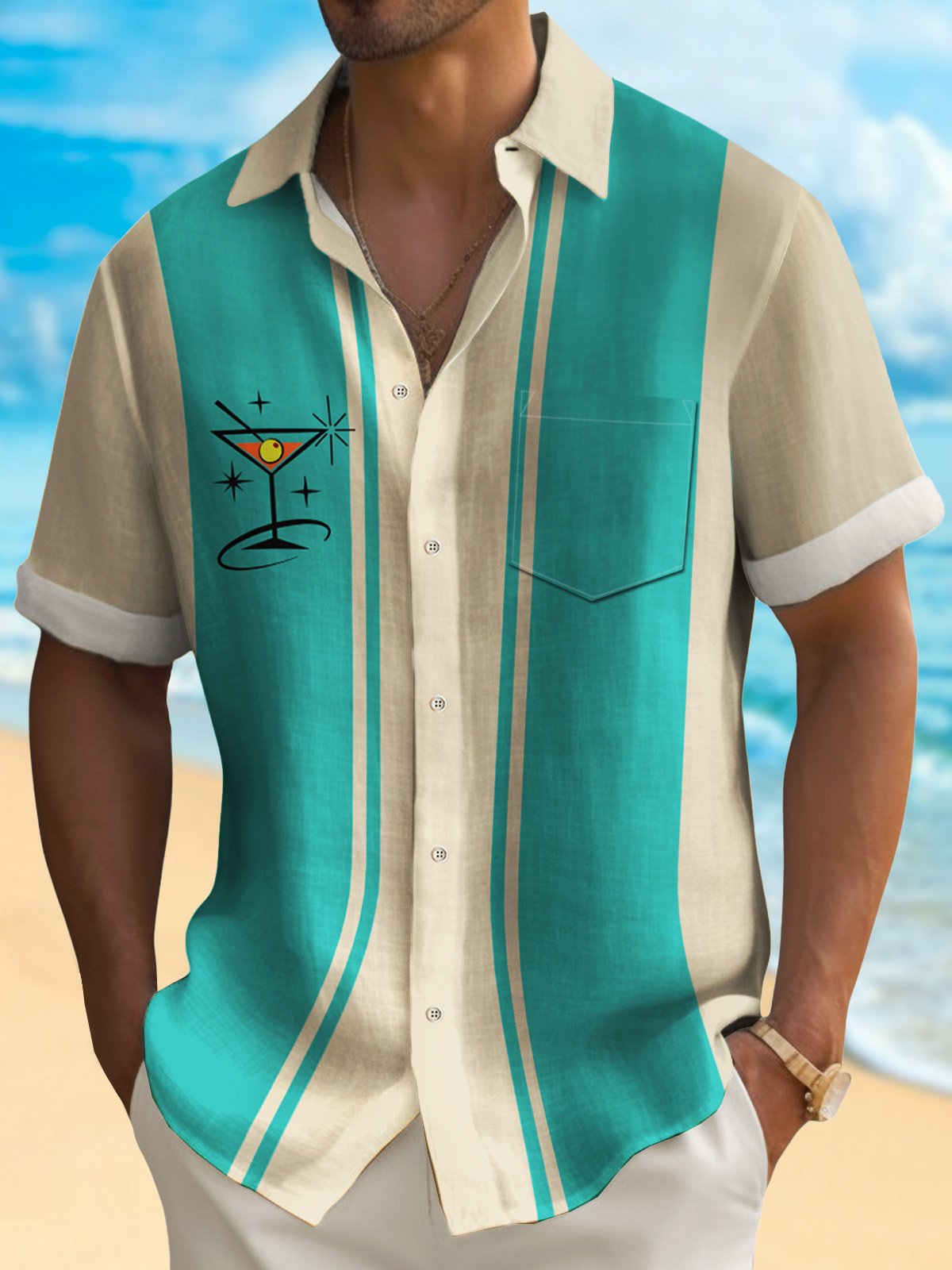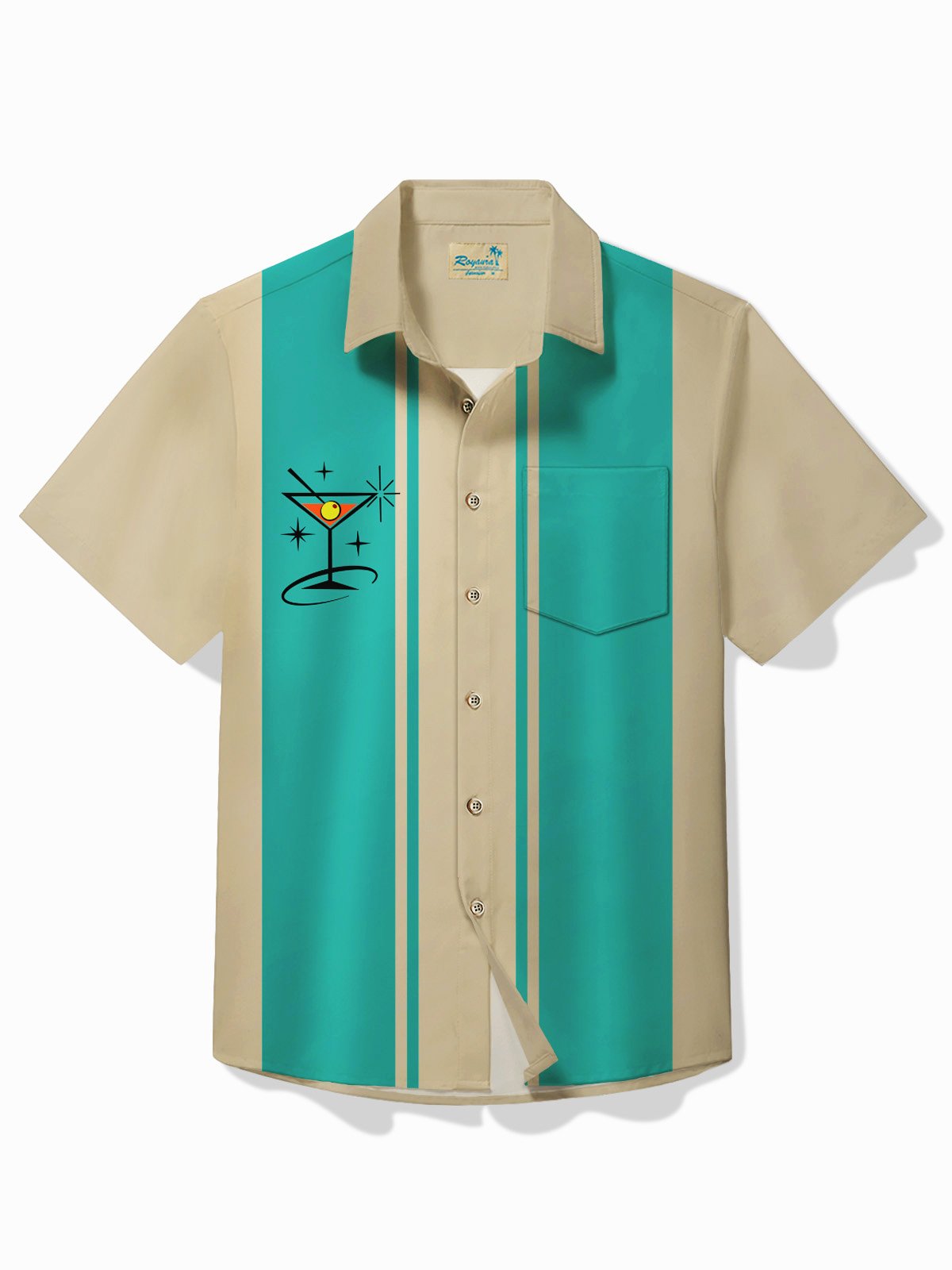 Alohadaddy Retro Cocktail Boling Shirt Medieval Geometry Easy Care Camp Pocket Shirt Big Tall