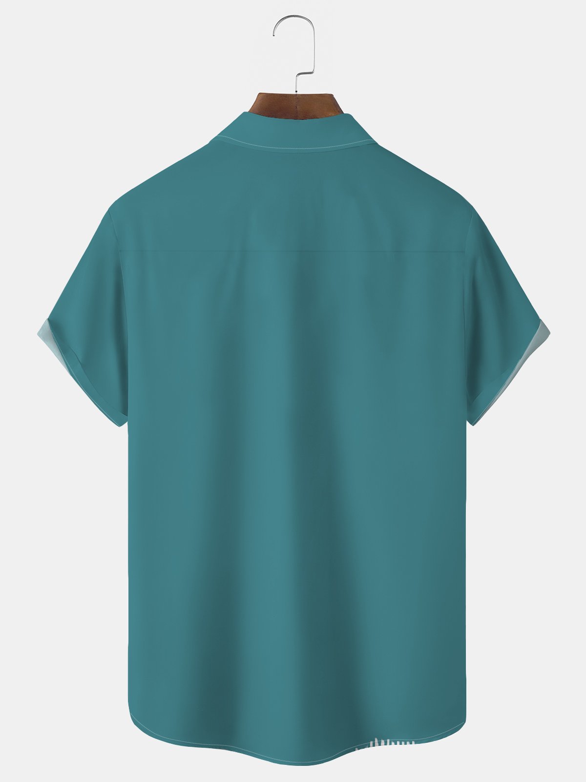 Alohadaddy Retro Geometric Bowling Stripe Print Men's Button Pocket Shirt