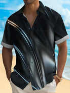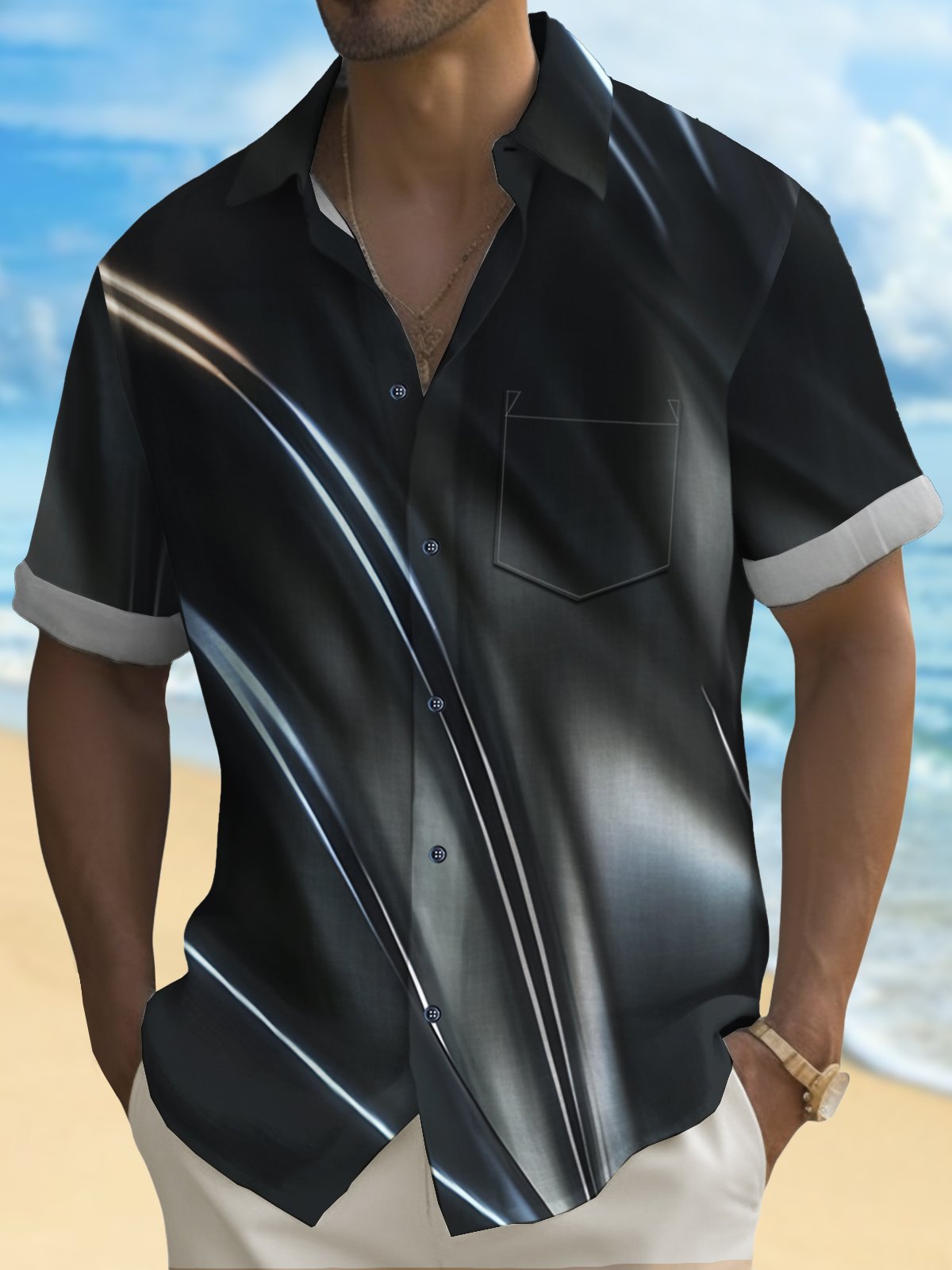 Alohadaddy Retro Gradient Textured Print Men's Hawaiian Shirt Easy Care Pocket Camping Shirt