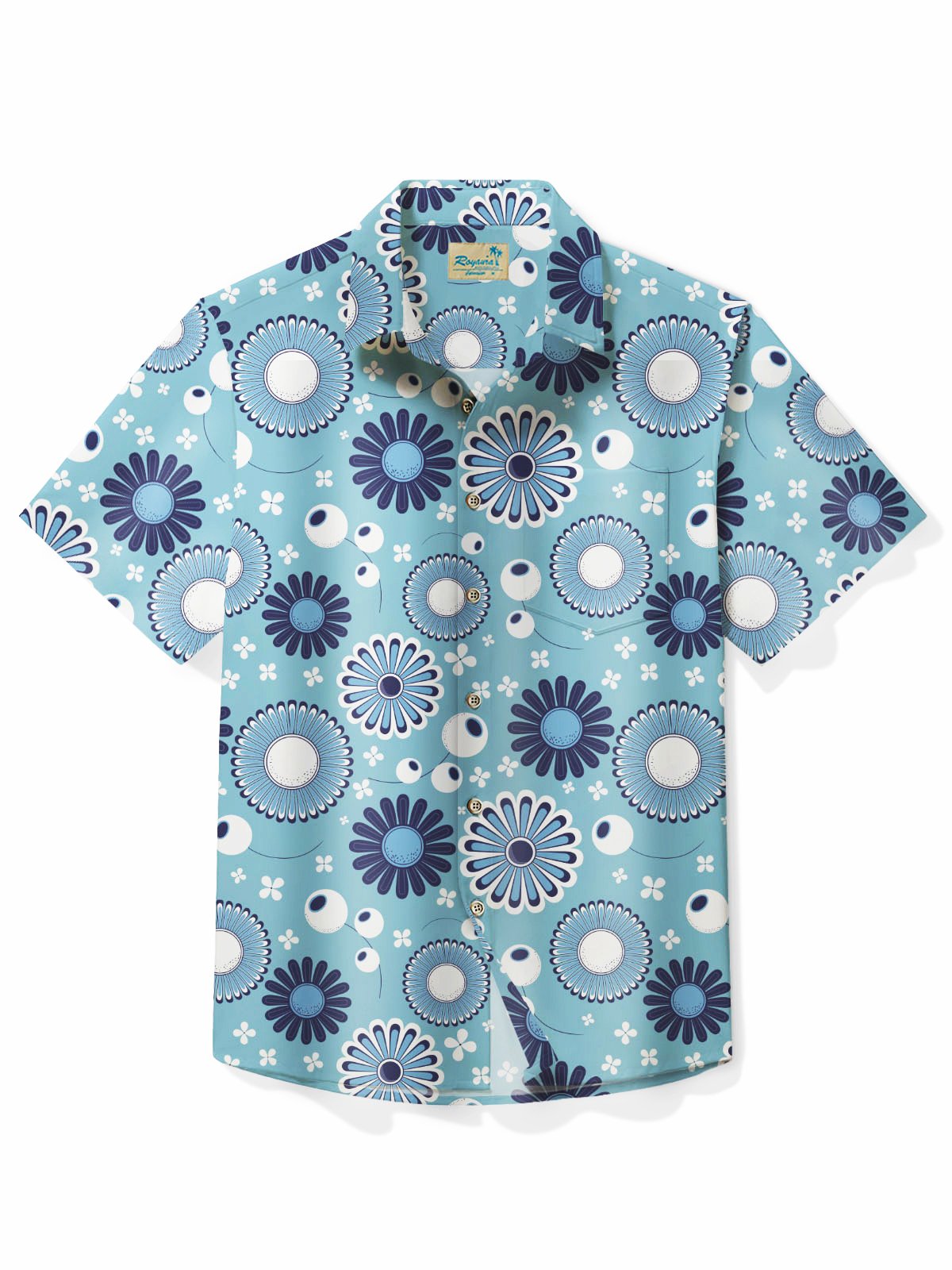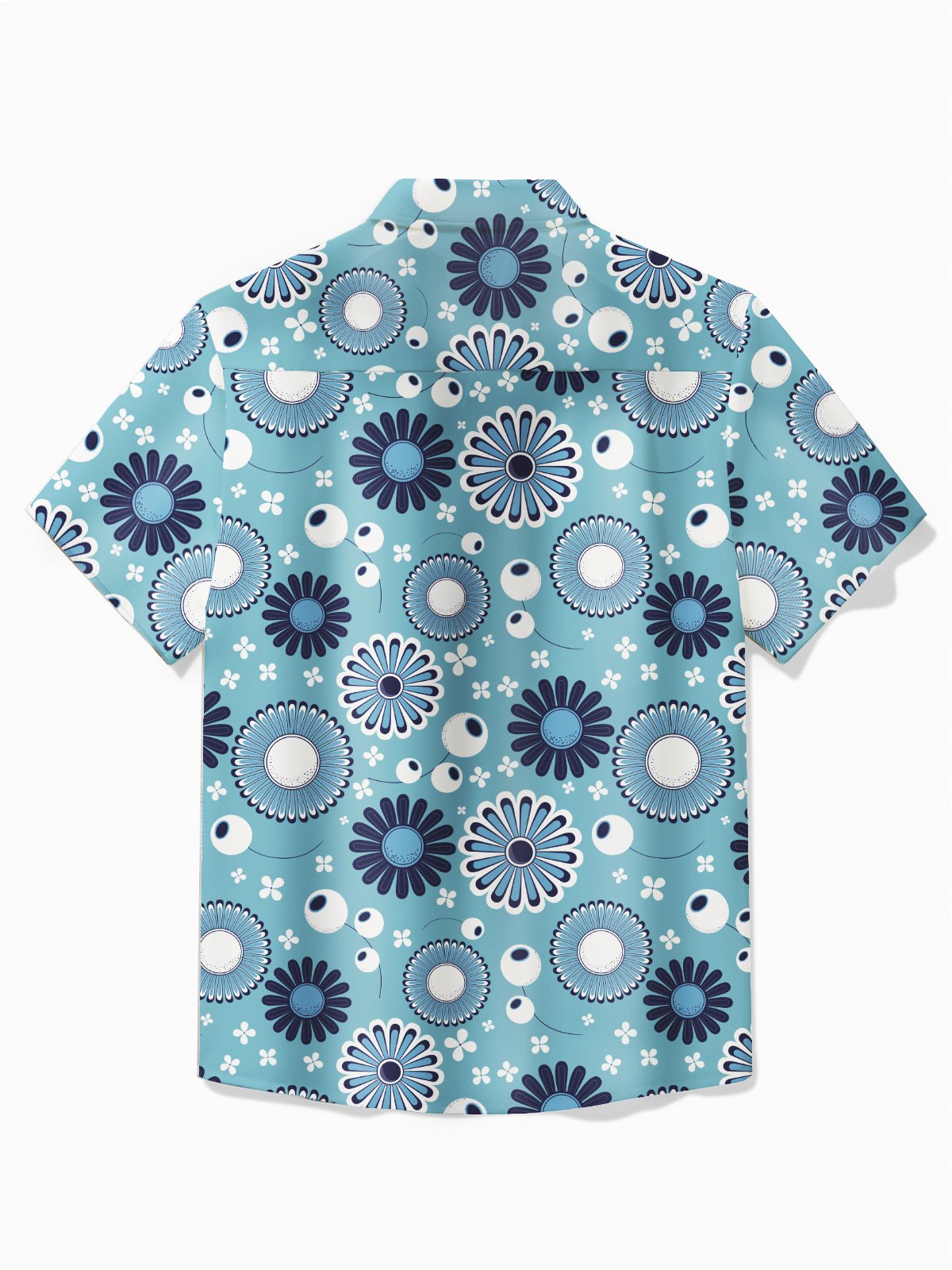 Alohadaddy Retro Mid-Century Geometric Blue Men's Hawaiian Shirt Stretch Camp Button Pocket Shirt Big Tall