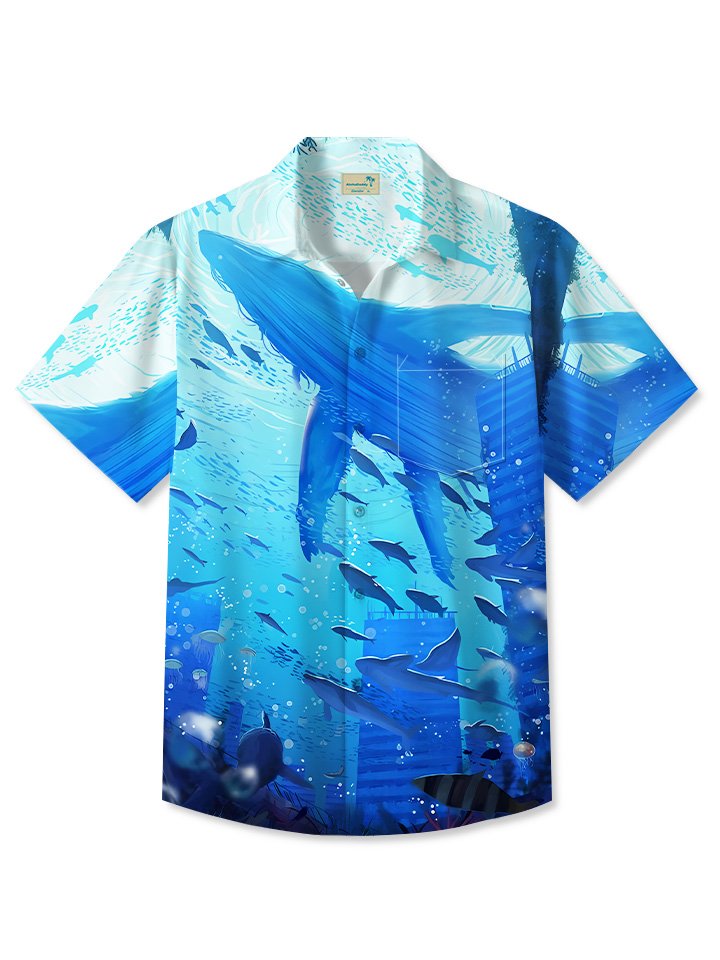 Alohadaddy Summer Ocean Fish Art Pocket Button Men Casual Vacation Shirt