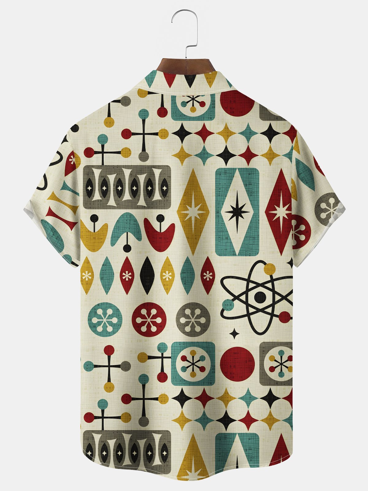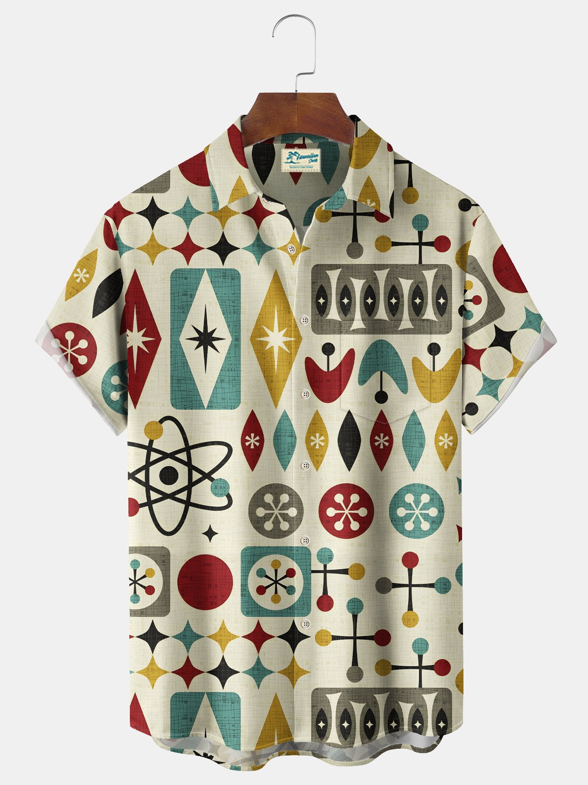 Alohadaddy Vintage 50s Geometric Starburst Boomerang Print Men's Chest Pocket Stretch Hawaiian Shirt