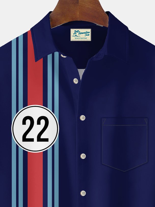Alohadaddy Vintage Bowling Cars 22 Print Men's Chest Pocket Stretch Shirt Big Tall