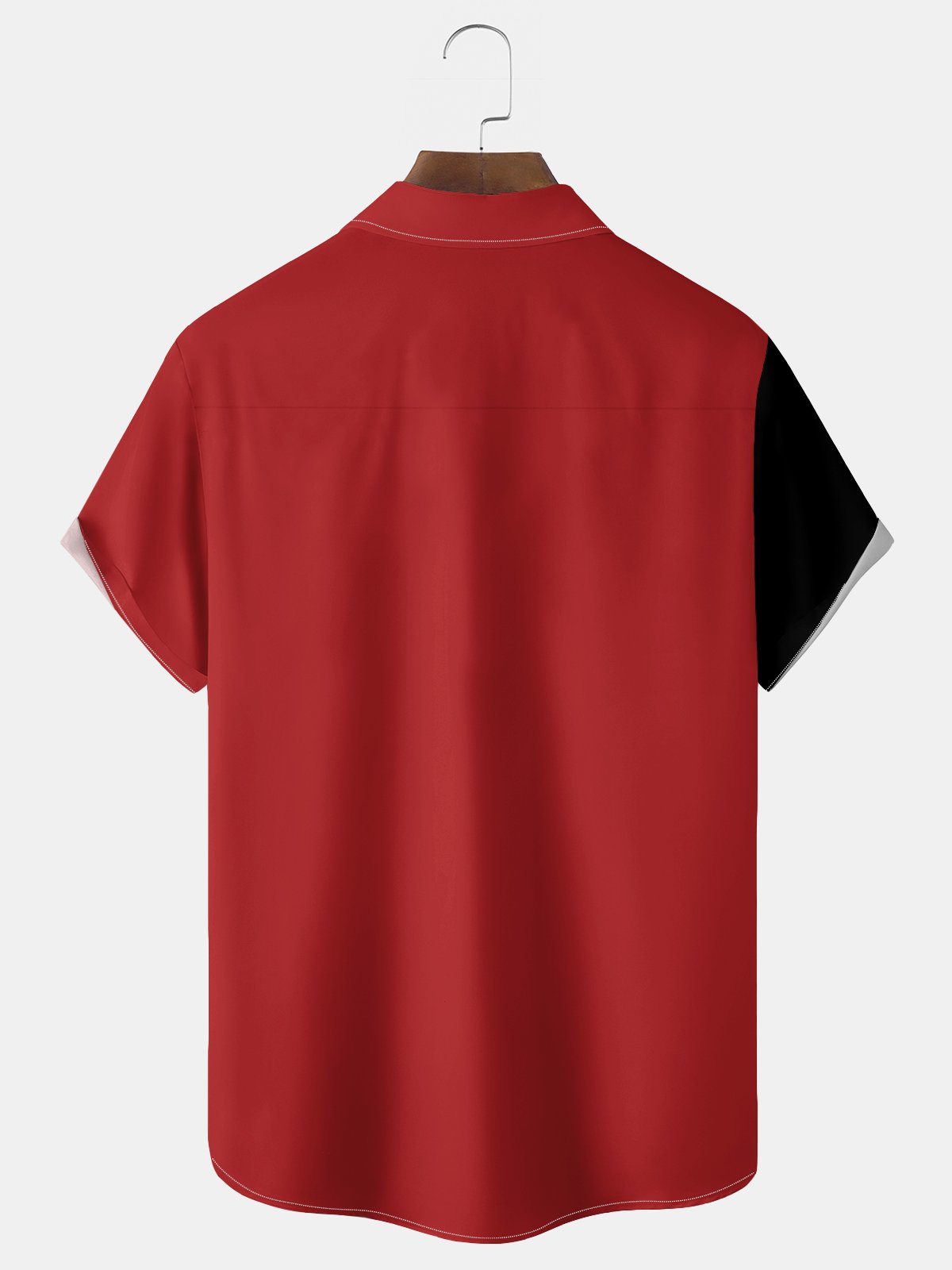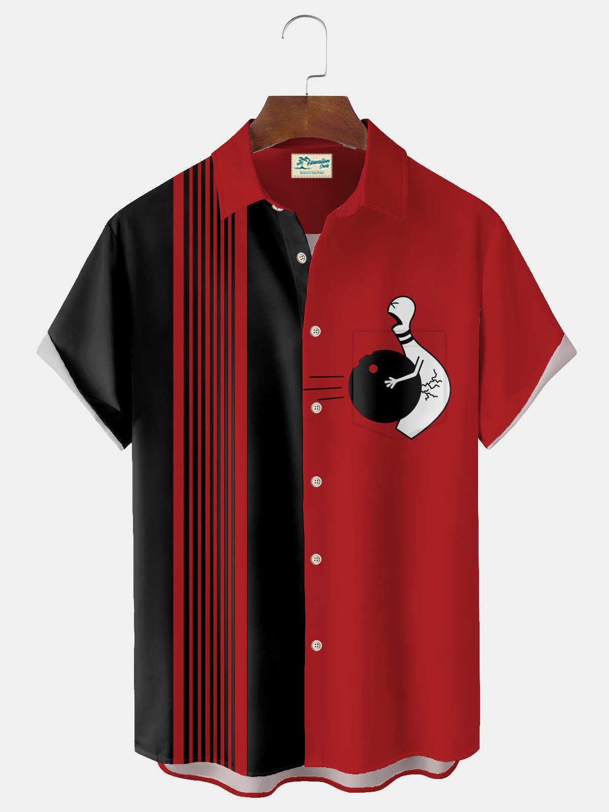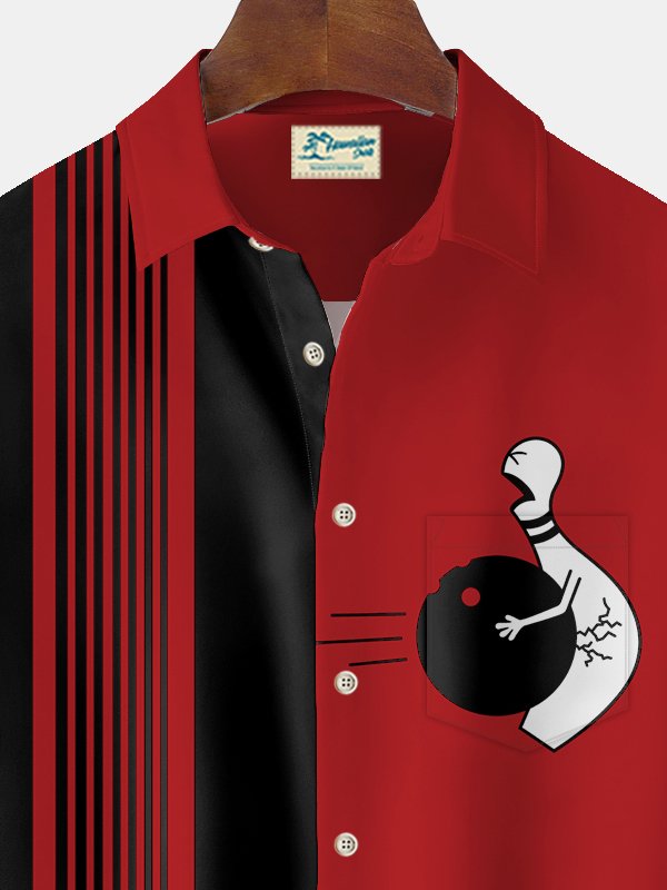 Alohadaddy Vintage Bowling Cartoon Print Chest Pocket Shirt Big Tall