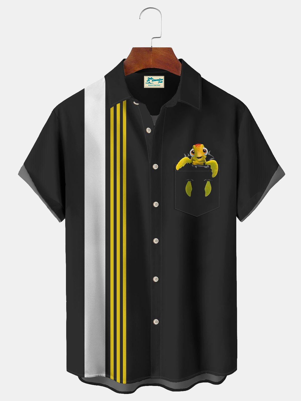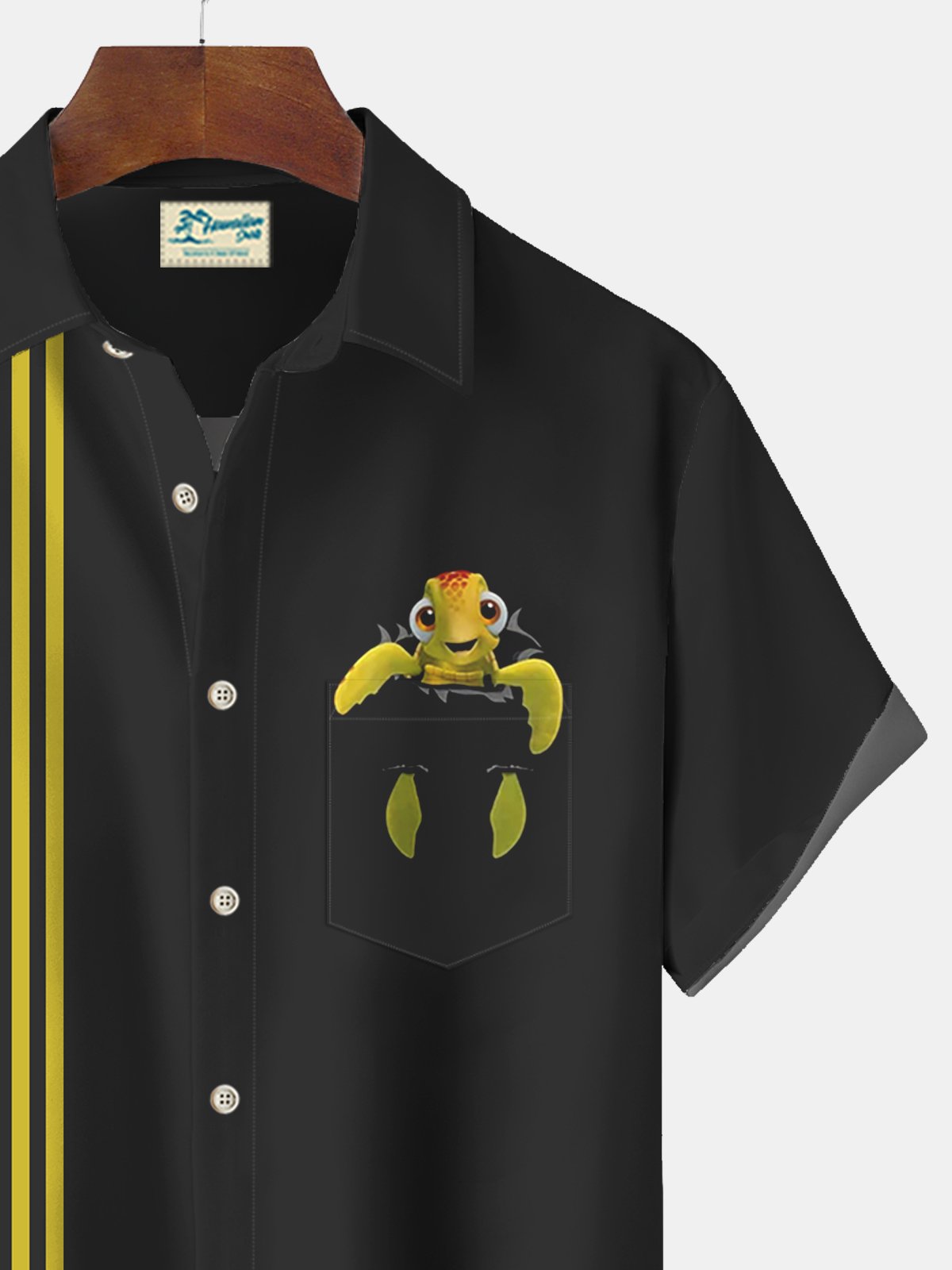 Alohadaddy Vintage Bowling Funny Turtle Print Beach Men's Hawaiian Big&Tall Shirt With Pocket