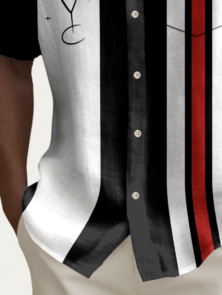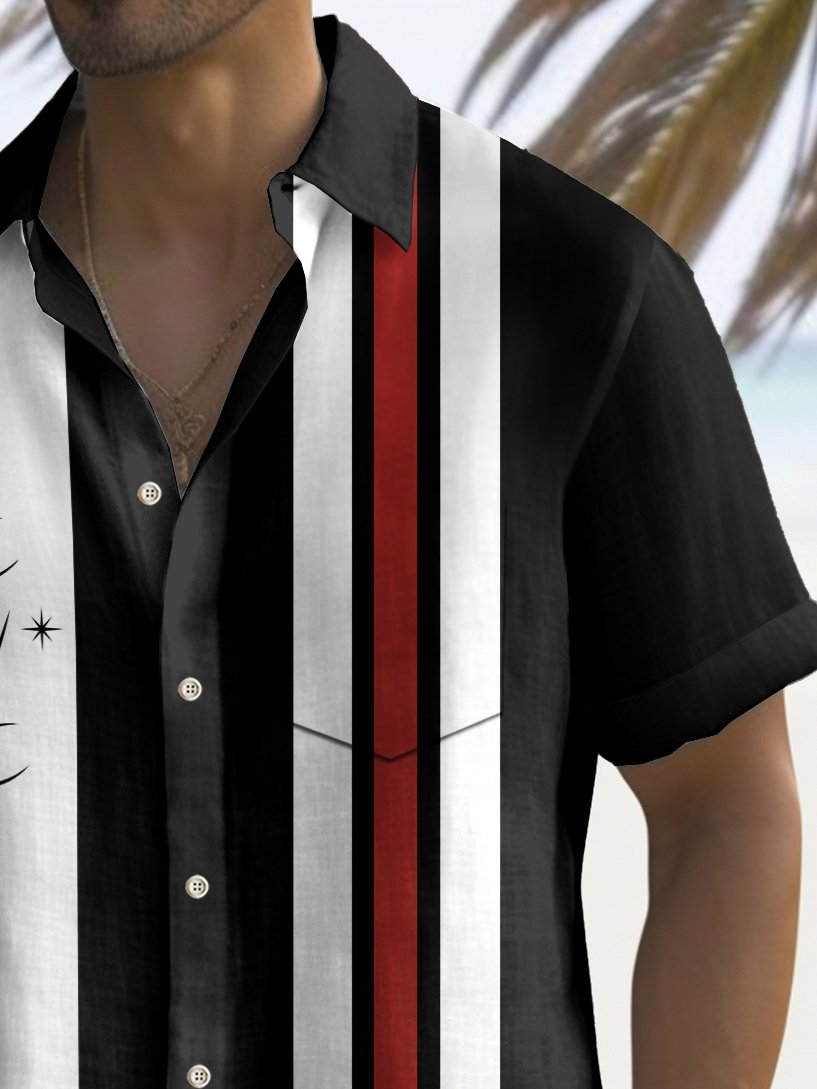 Alohadaddy Vintage Bowling Geometric Cocktail Print Men's Chest Pocket Stretch Shirt Big Tall