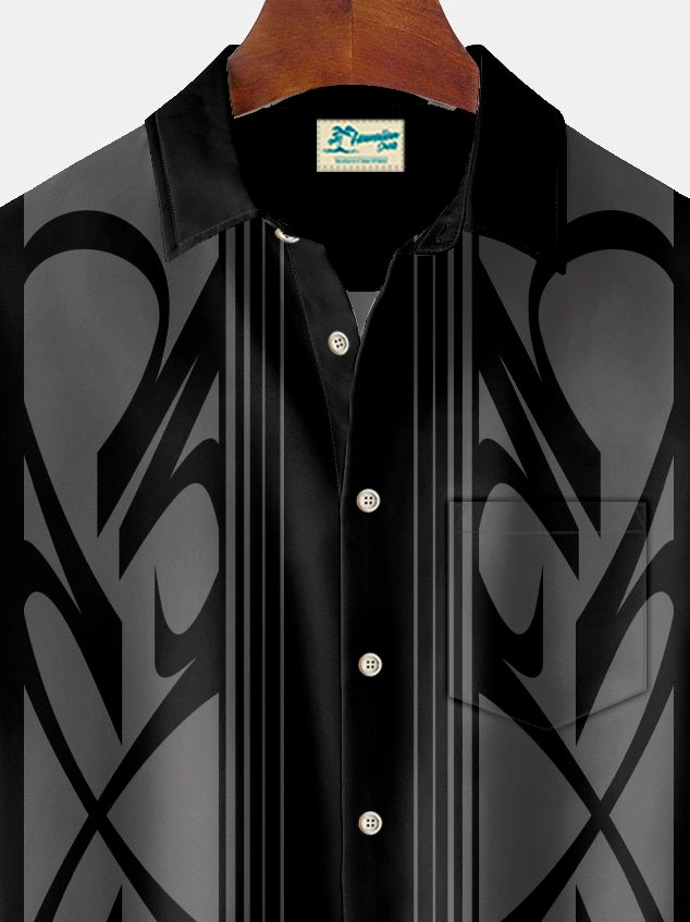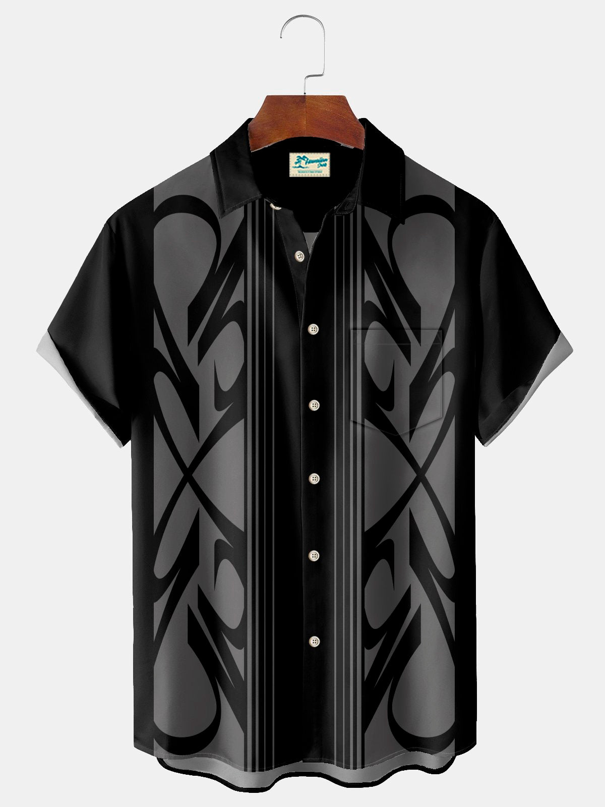 Alohadaddy Vintage Bowling Geometric Print Chest Pocket Stretch Shirt Big Tall