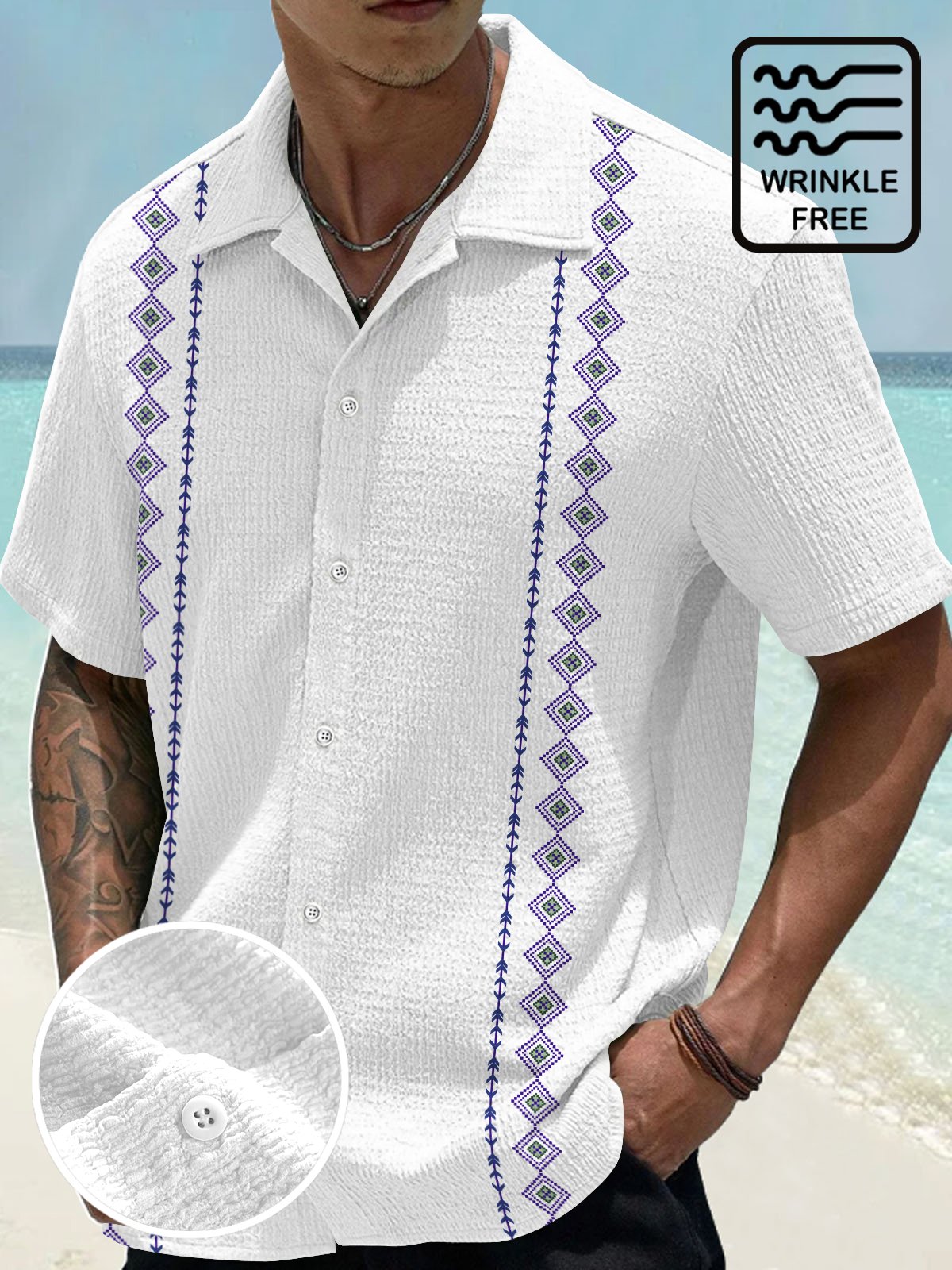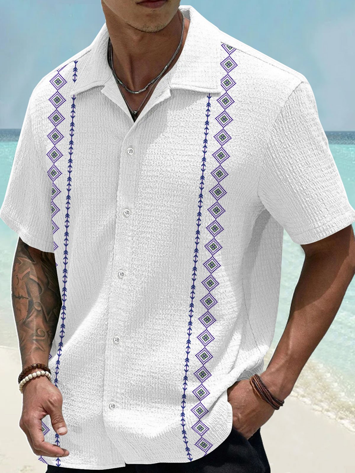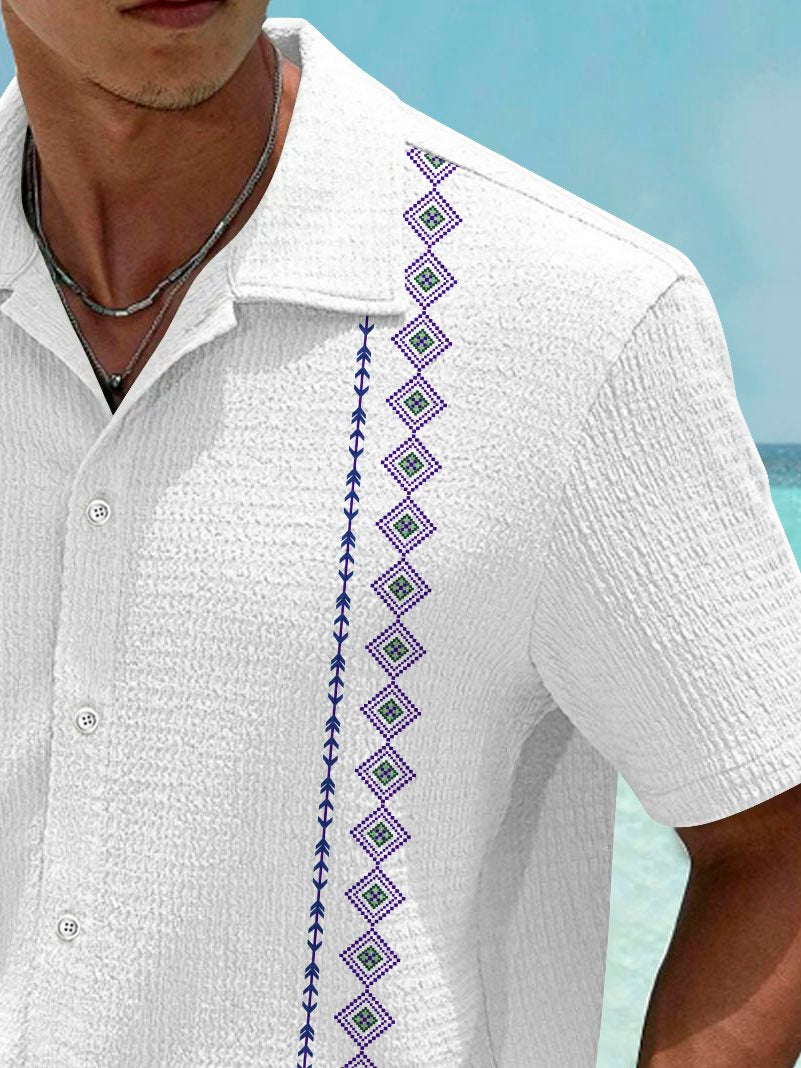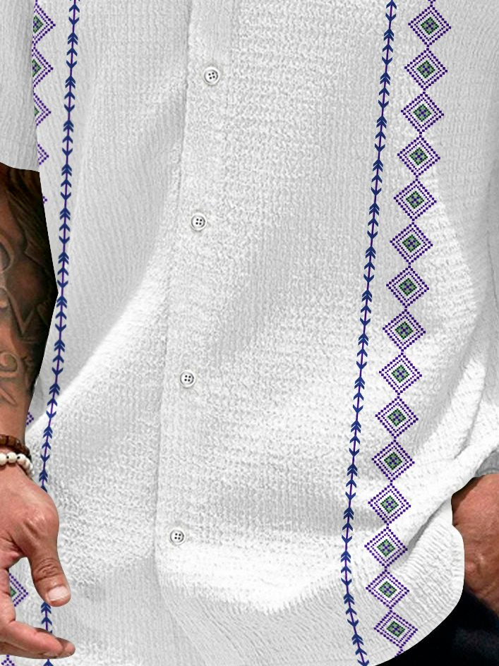Alohadaddy Vintage Bowling Geometric Print Men's Seersucker Stretch Shirt Big Tall