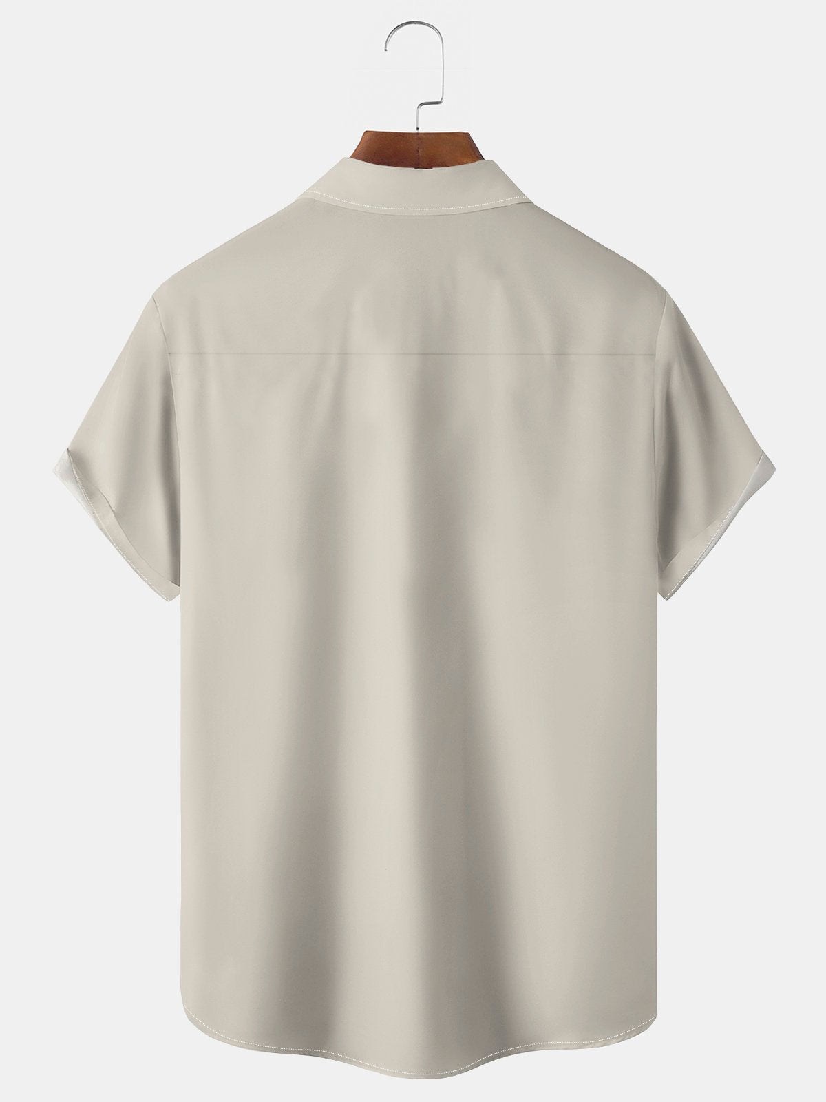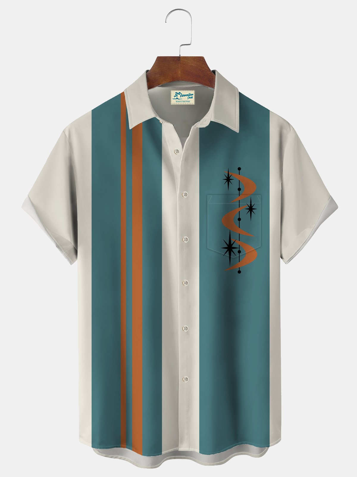 Alohadaddy Vintage Bowling Geometric Starburst Print Men's Chest Pocket Stretch Shirt Big Tall