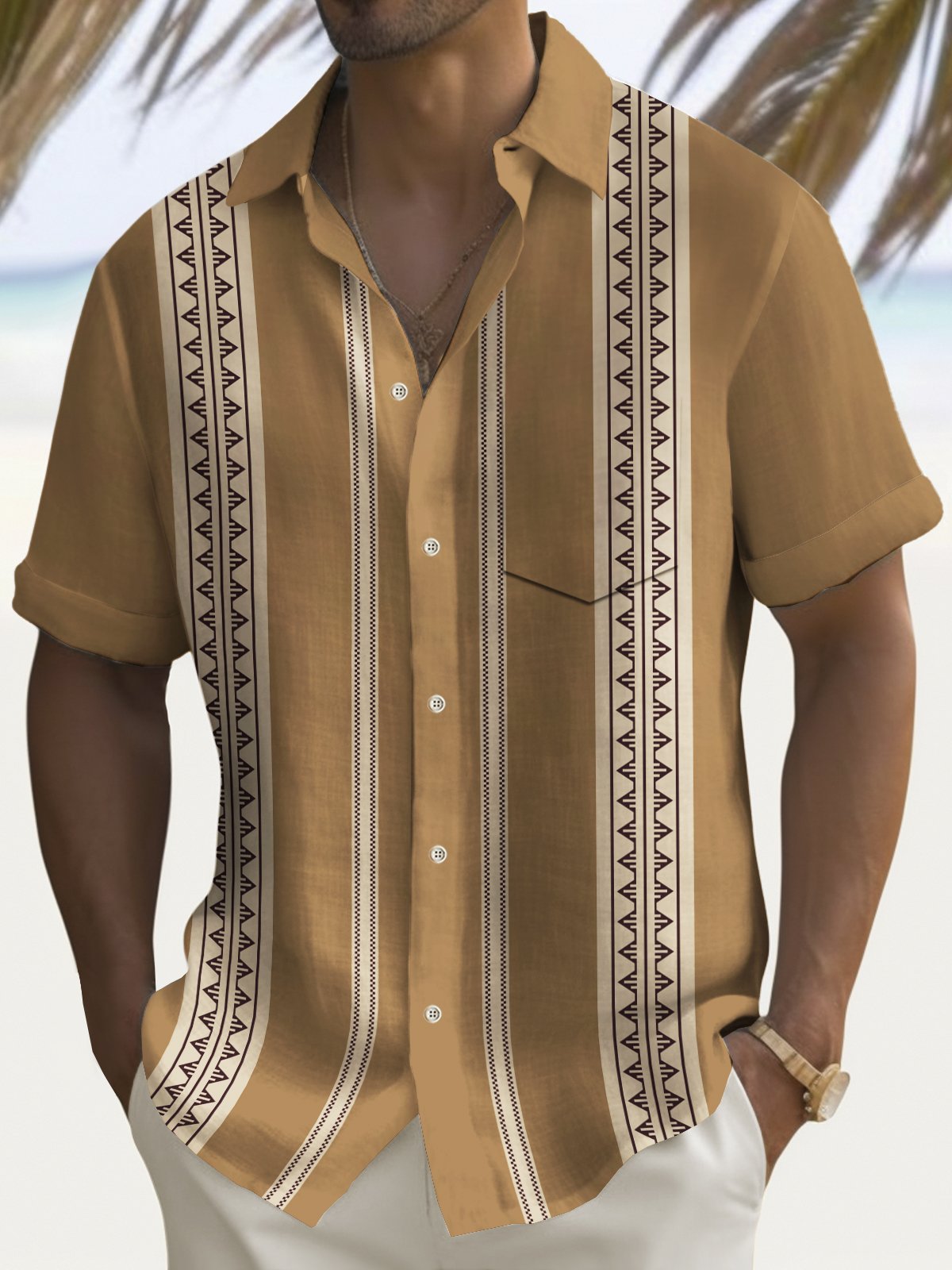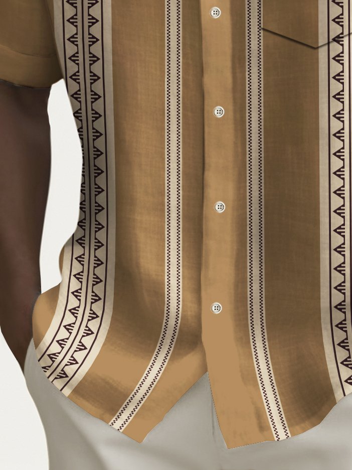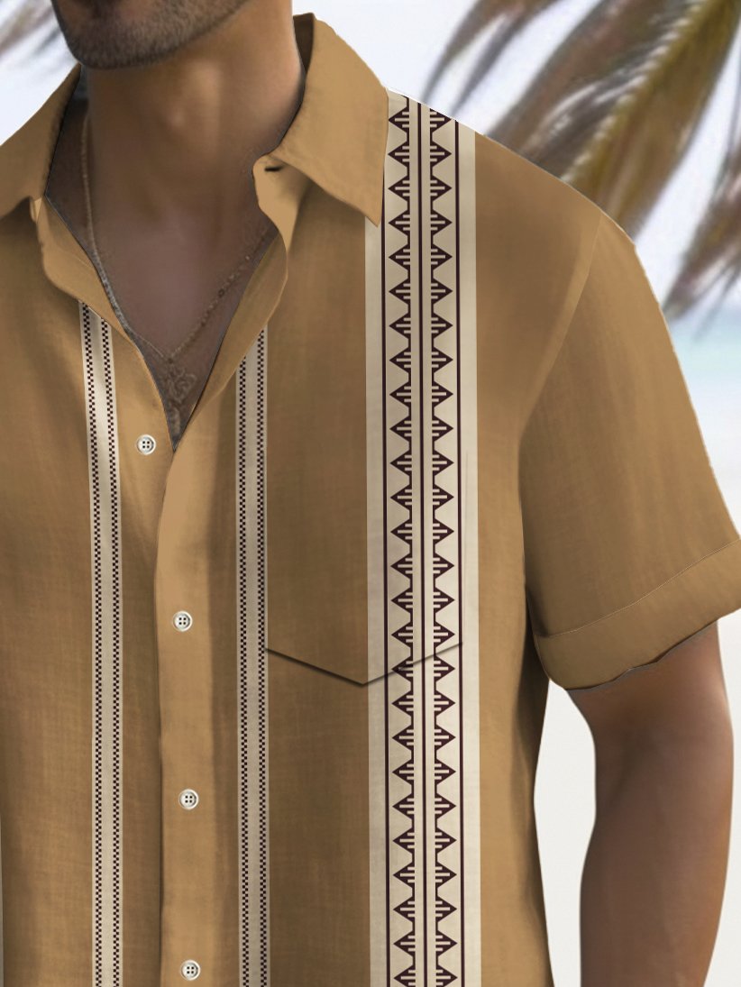 Alohadaddy Vintage Bowling Greek Pattern Printed Men's Chest Pocket Stretch Shirt Big Tall