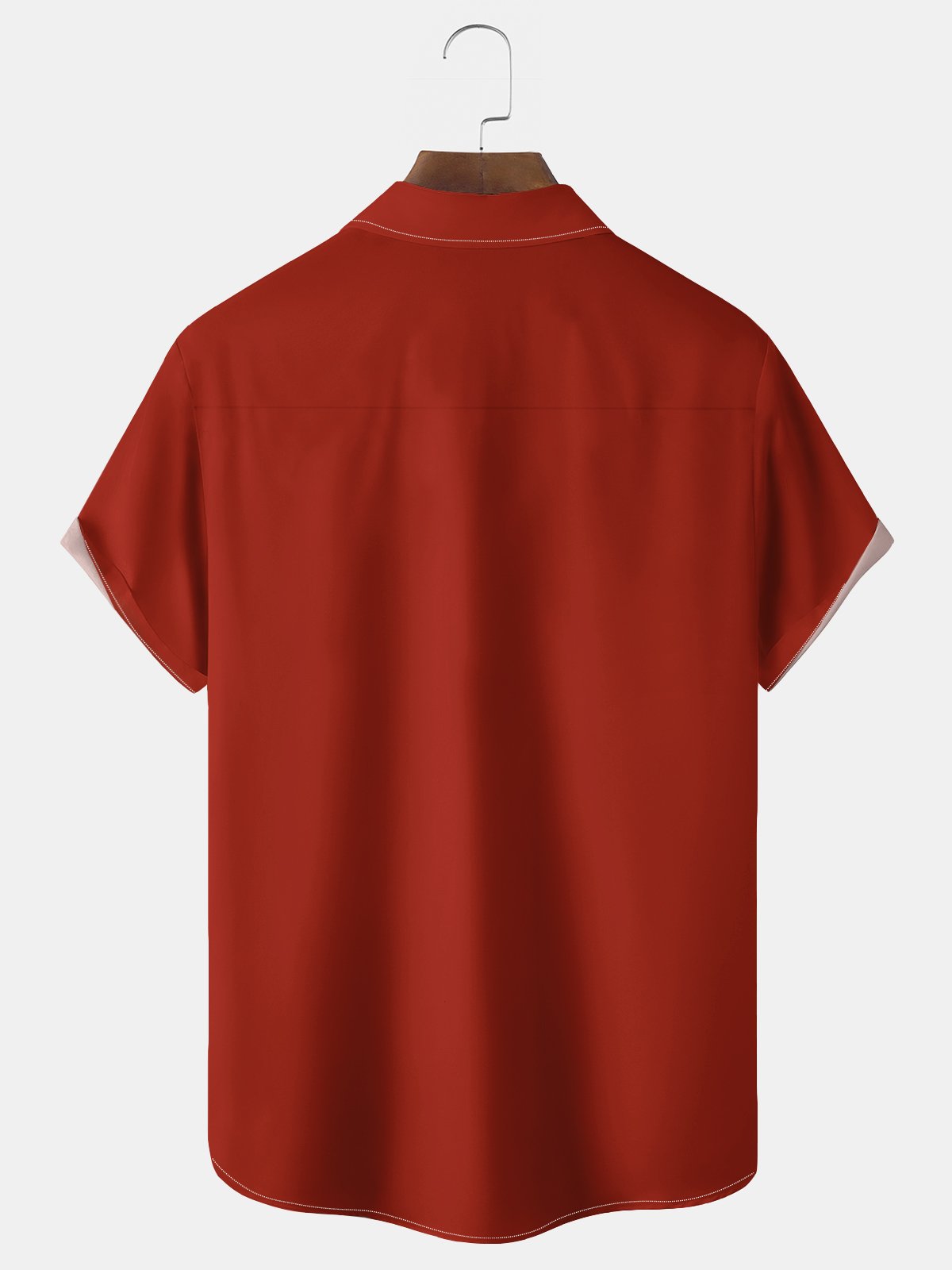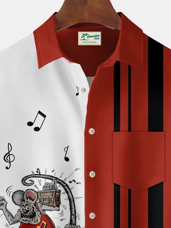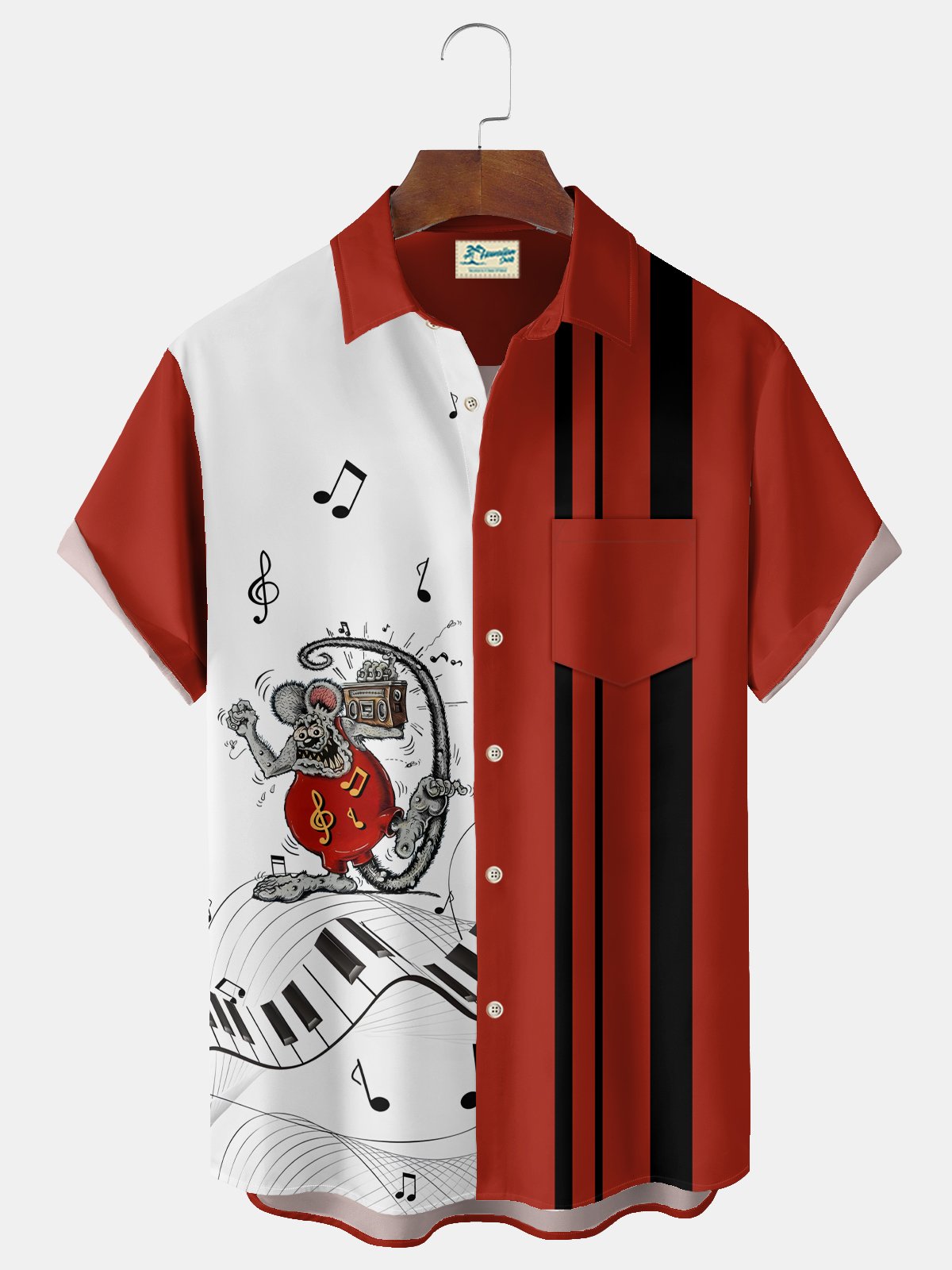 Alohadaddy Vintage Bowling Men's Music Cartoon Print Chest Pocket Shirt Big Tall