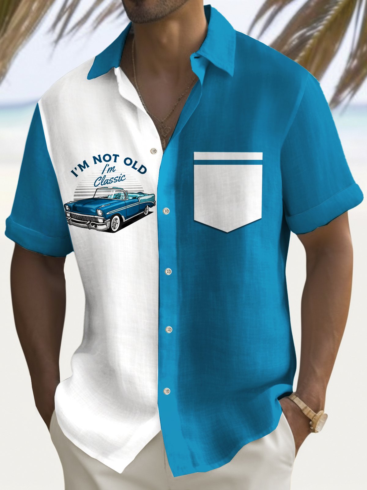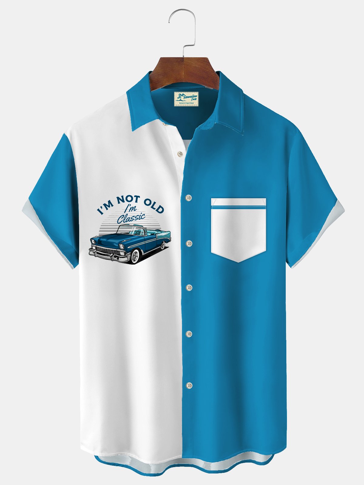 Alohadaddy Vintage Bowling Muscle Car Print Men's Chest Pocket Stretch Shirt Big Tall