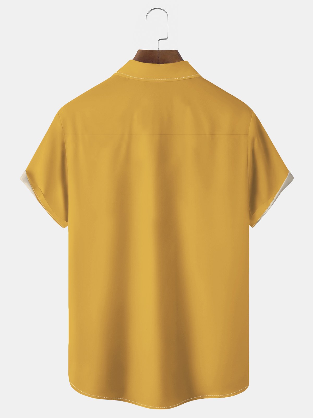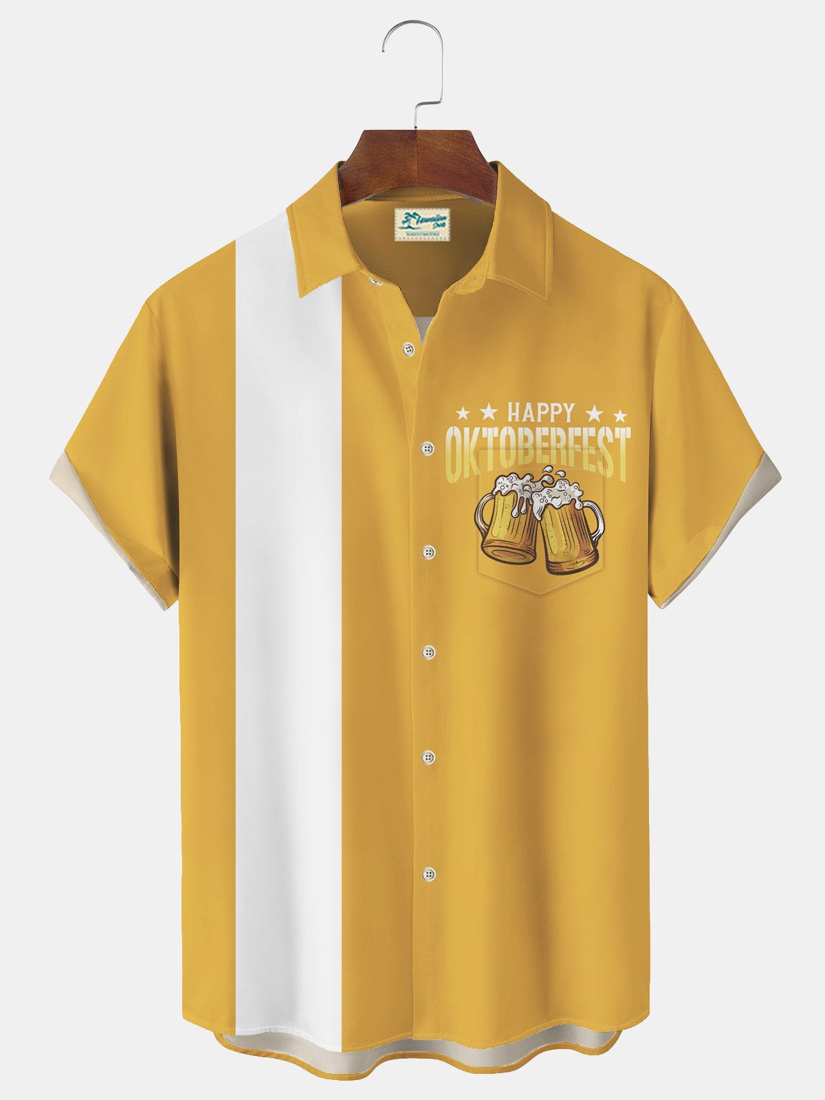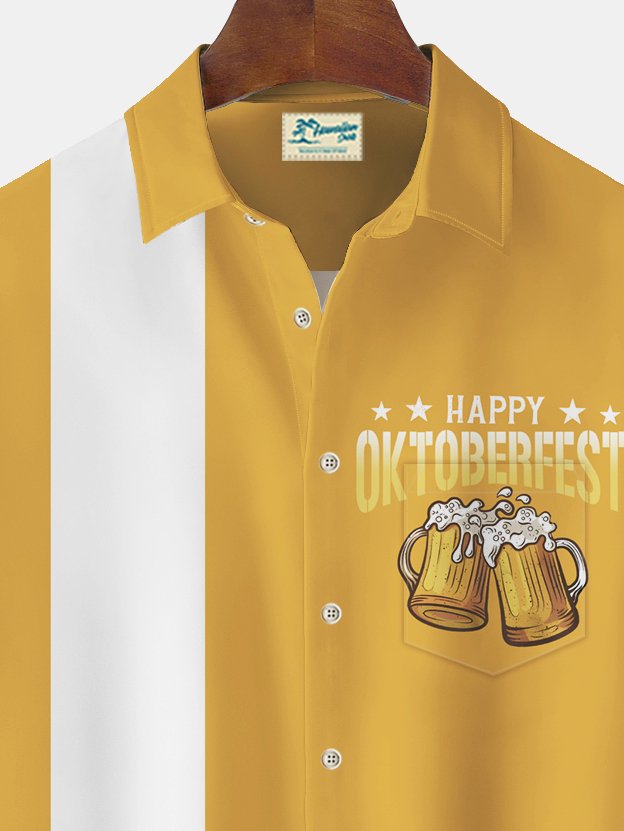 Alohadaddy Vintage Bowling Oktoberfest Beer Print Men's Chest Pocket Stretch Shirt Big Tall