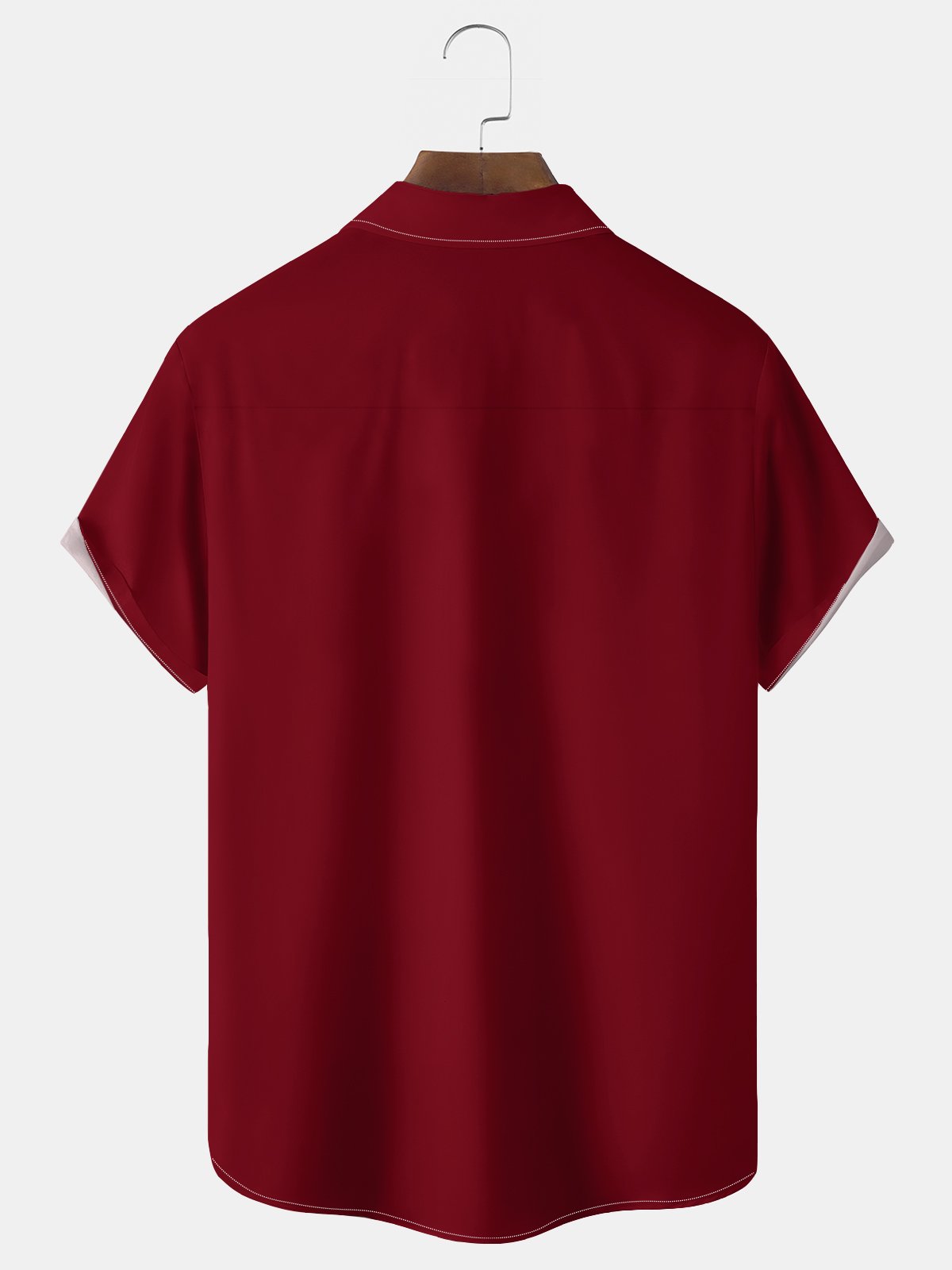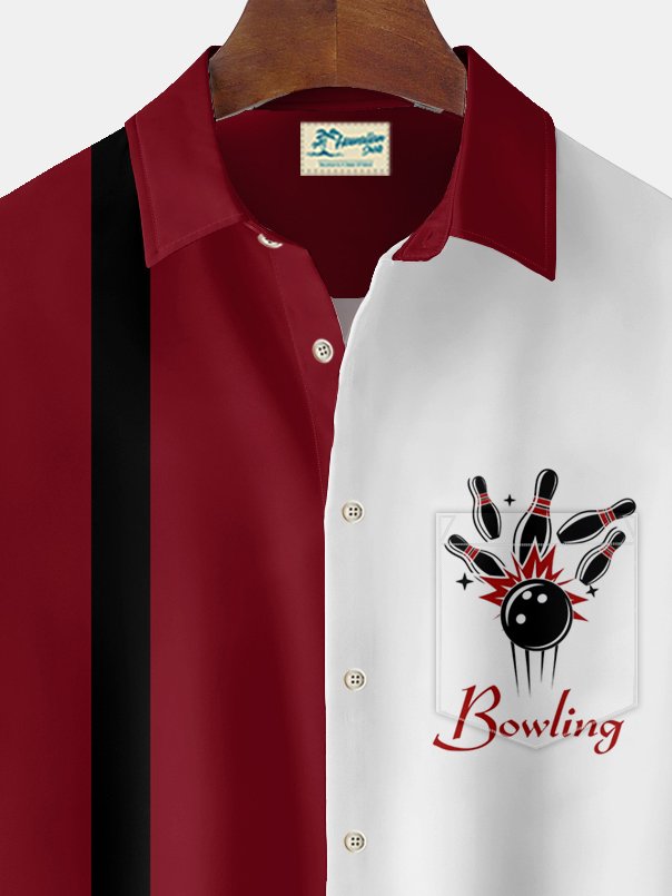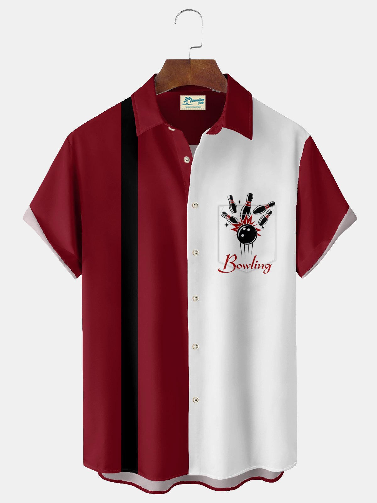 Alohadaddy Vintage Bowling Print Chest Pocket Men's High Shirt Big Tall