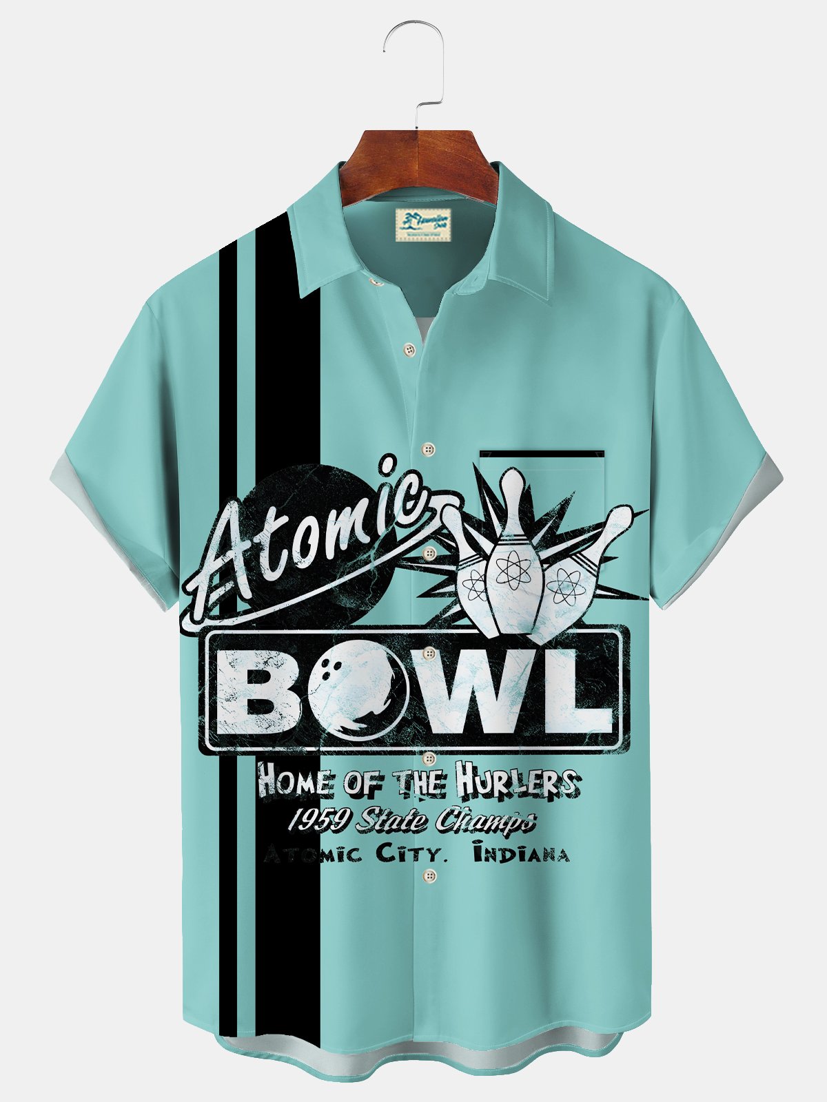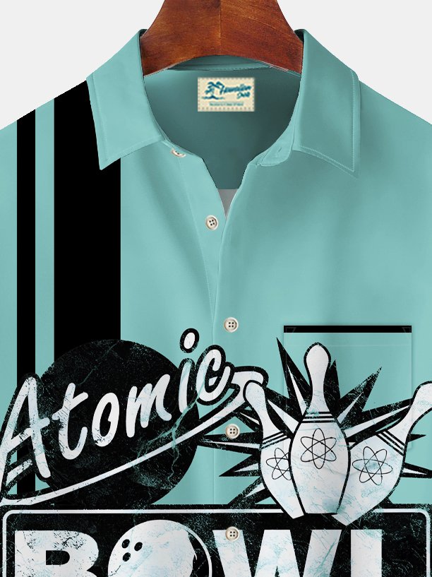 Alohadaddy Vintage Bowling Print Men's Chest Pocket Stretch Shirt Big Tall
