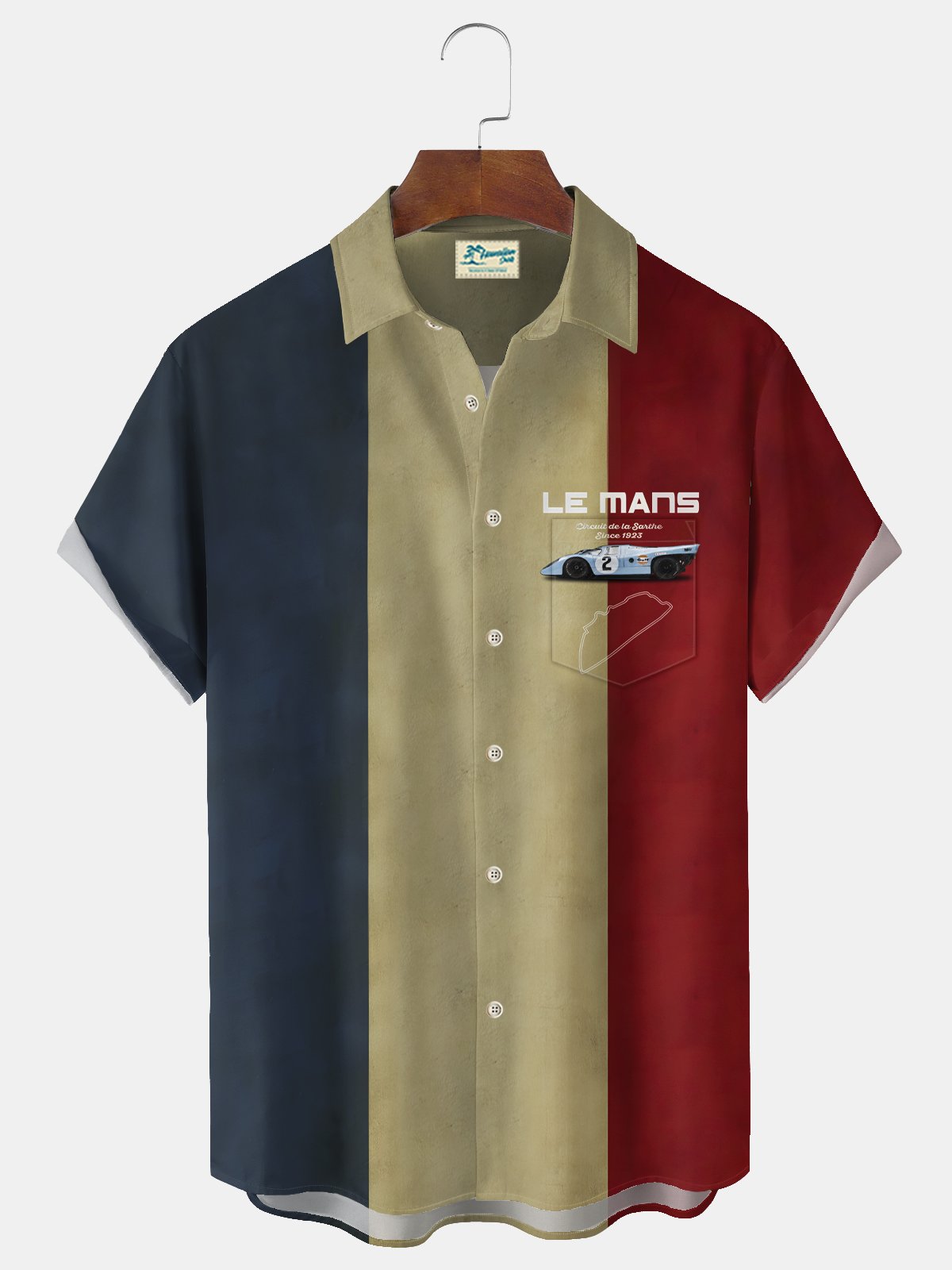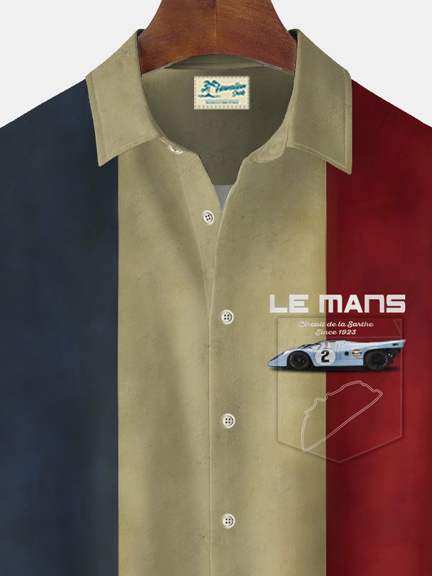Alohadaddy Vintage Bowling Racing Print Men's Chest Pocket Stretch Shirt Big Tall