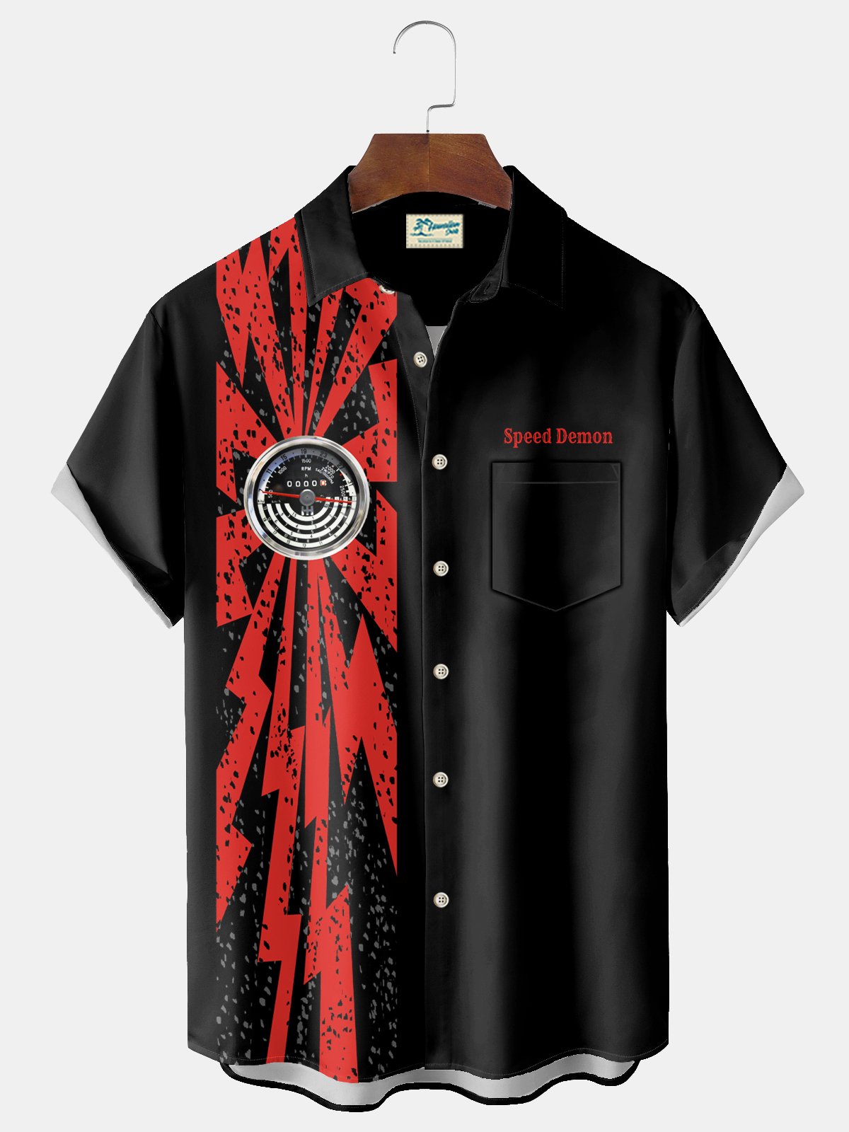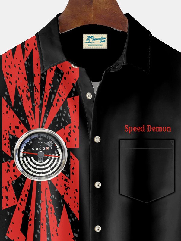 Alohadaddy Vintage Bowling Speed Demon Print Men's Chest Pocket Stretch Shirt Big Tall