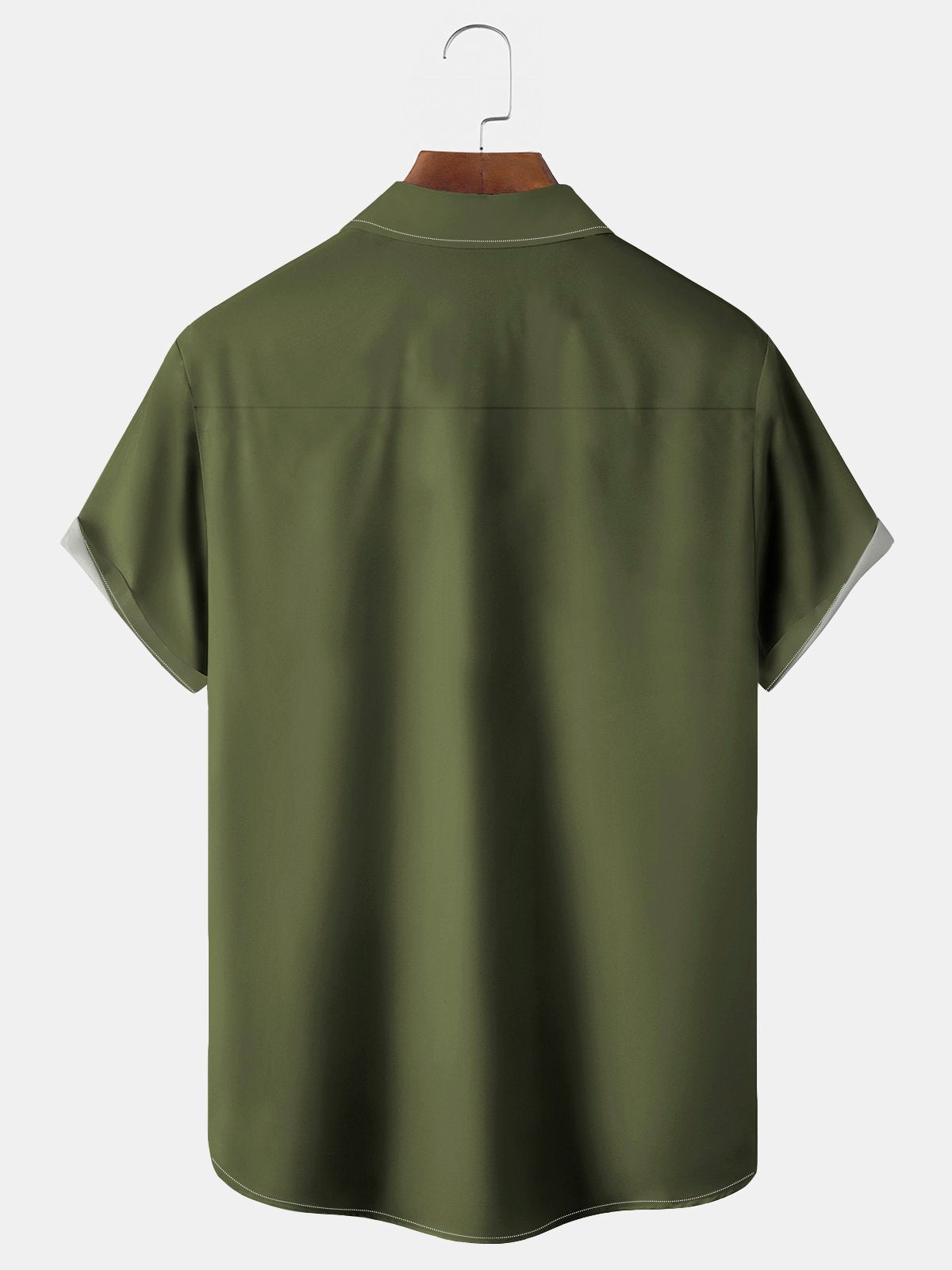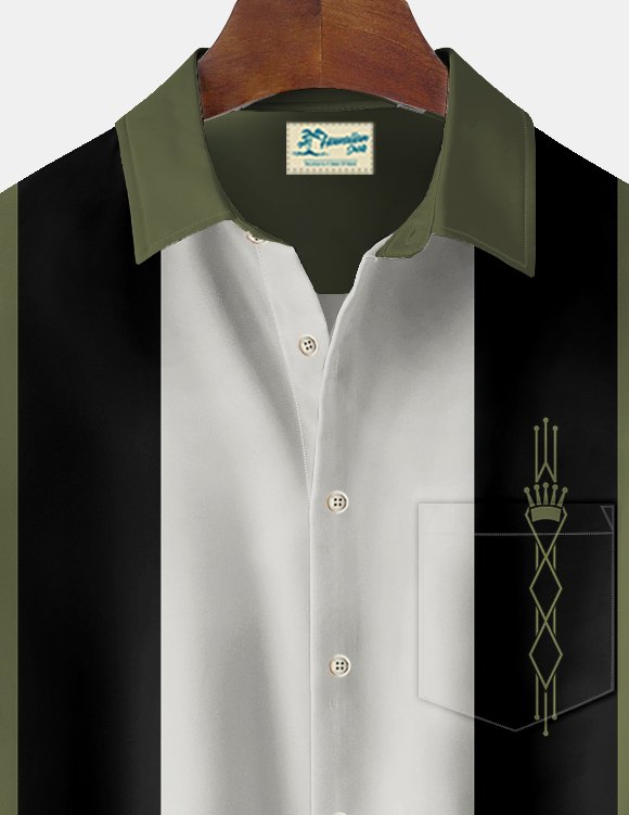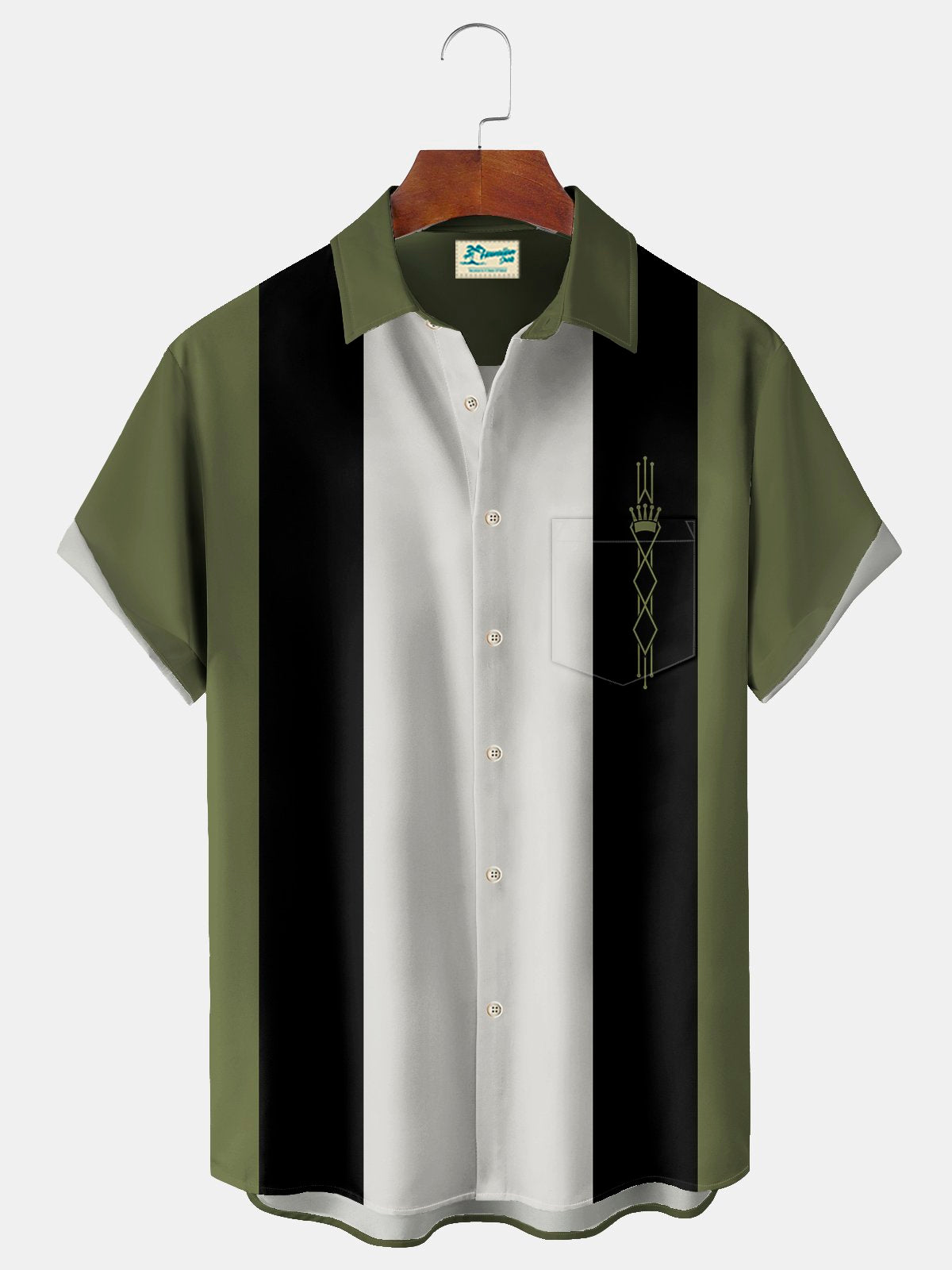 Alohadaddy Vintage Bowling Stripe Art Print Chest Pocket Men's Tall Shirt Big Tall