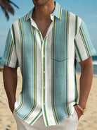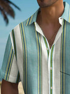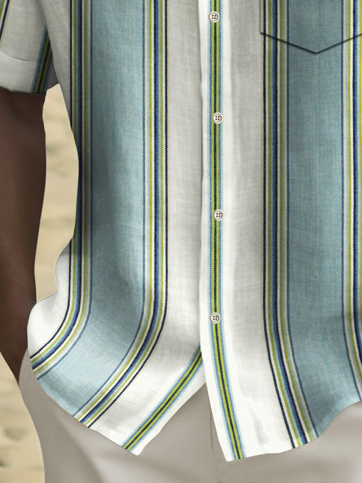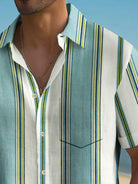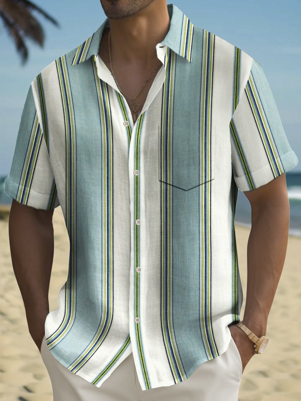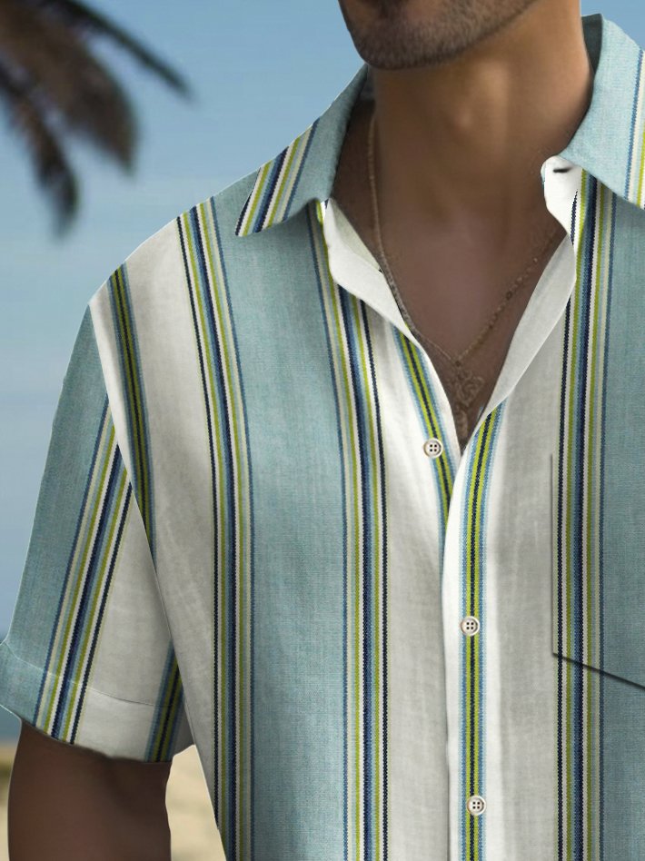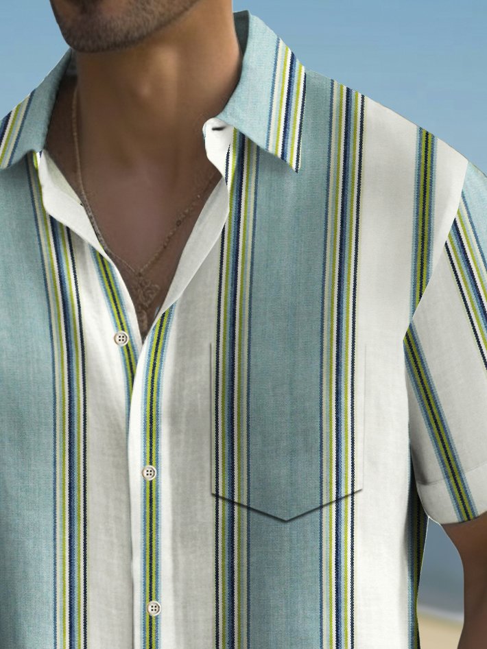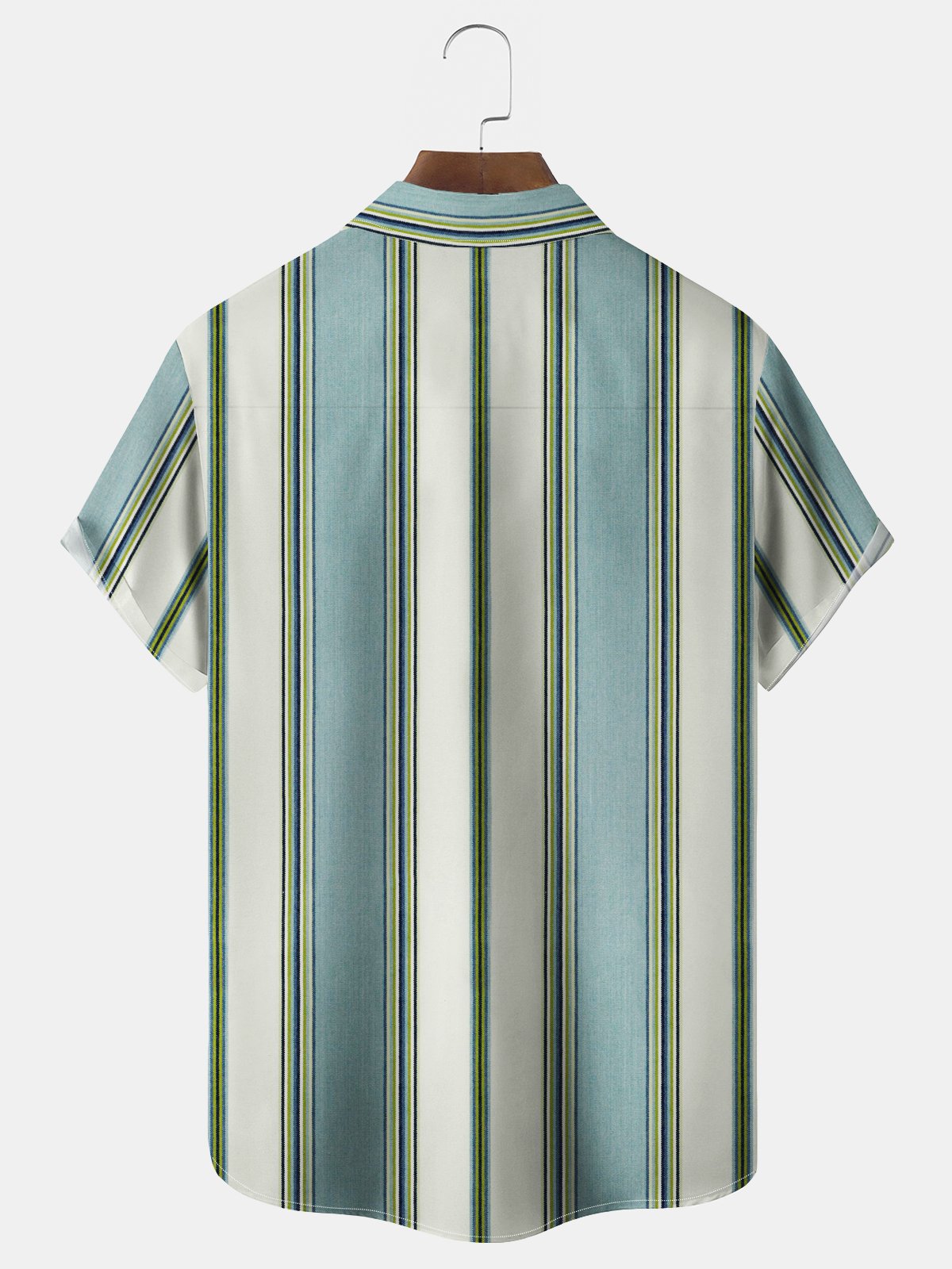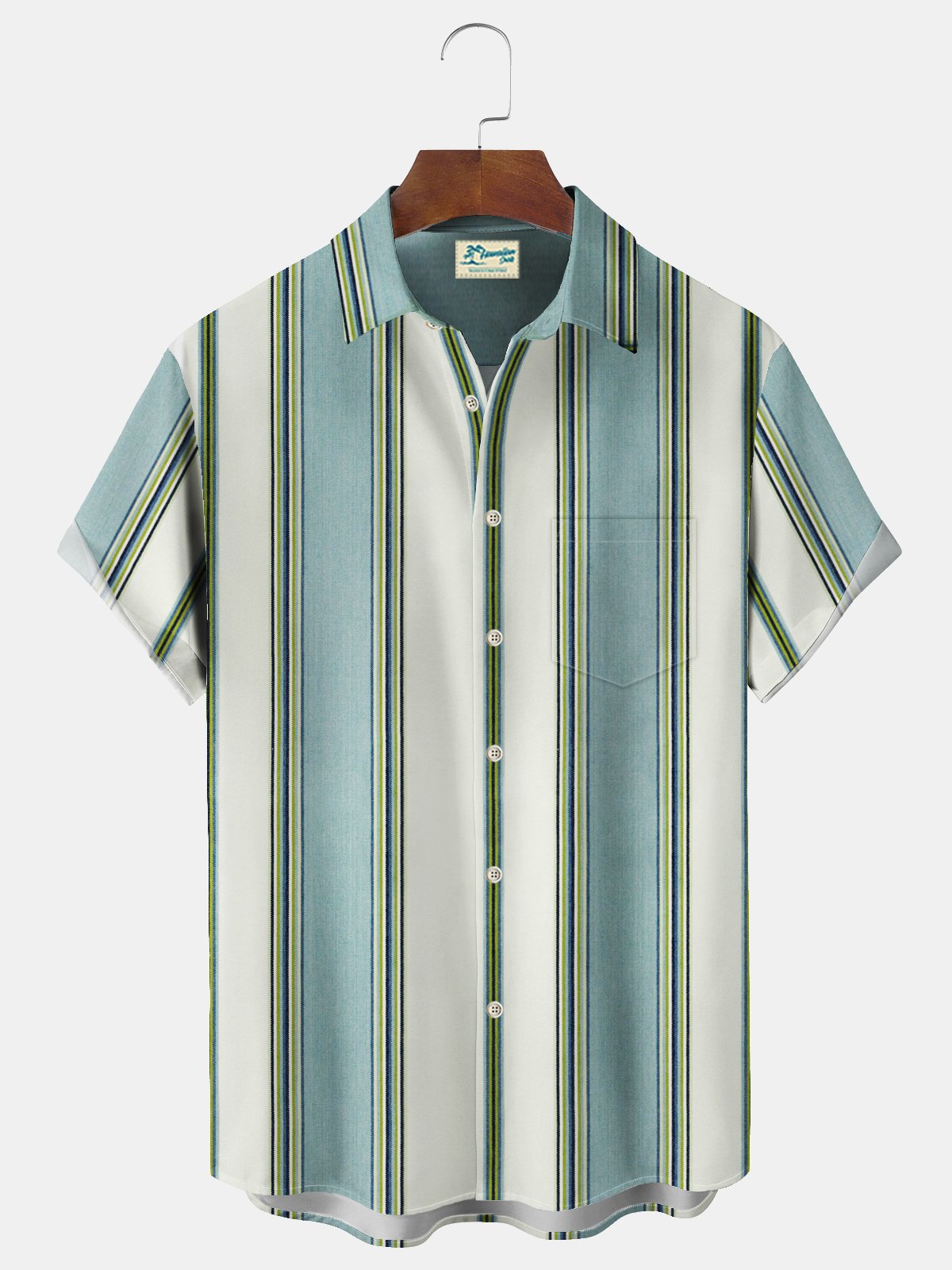 Alohadaddy Vintage Bowling Stripe Print Chest Pocket Men's High Shirt Big Tall