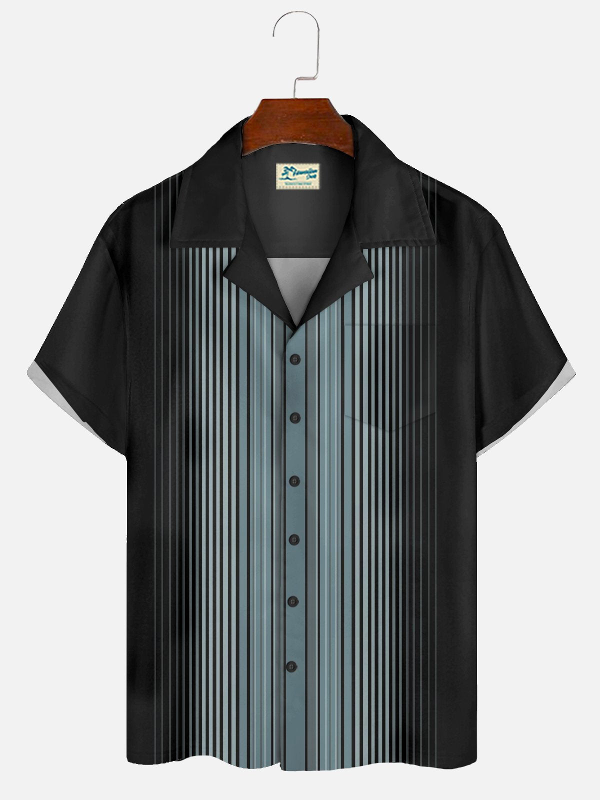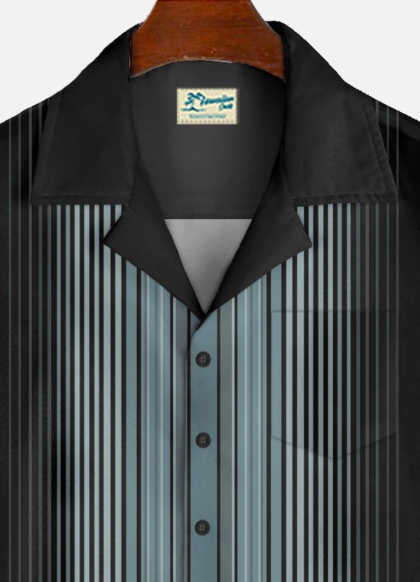 Alohadaddy Vintage Bowling Stripe Print Chest Pocket Men's High Shirt Big Tall
