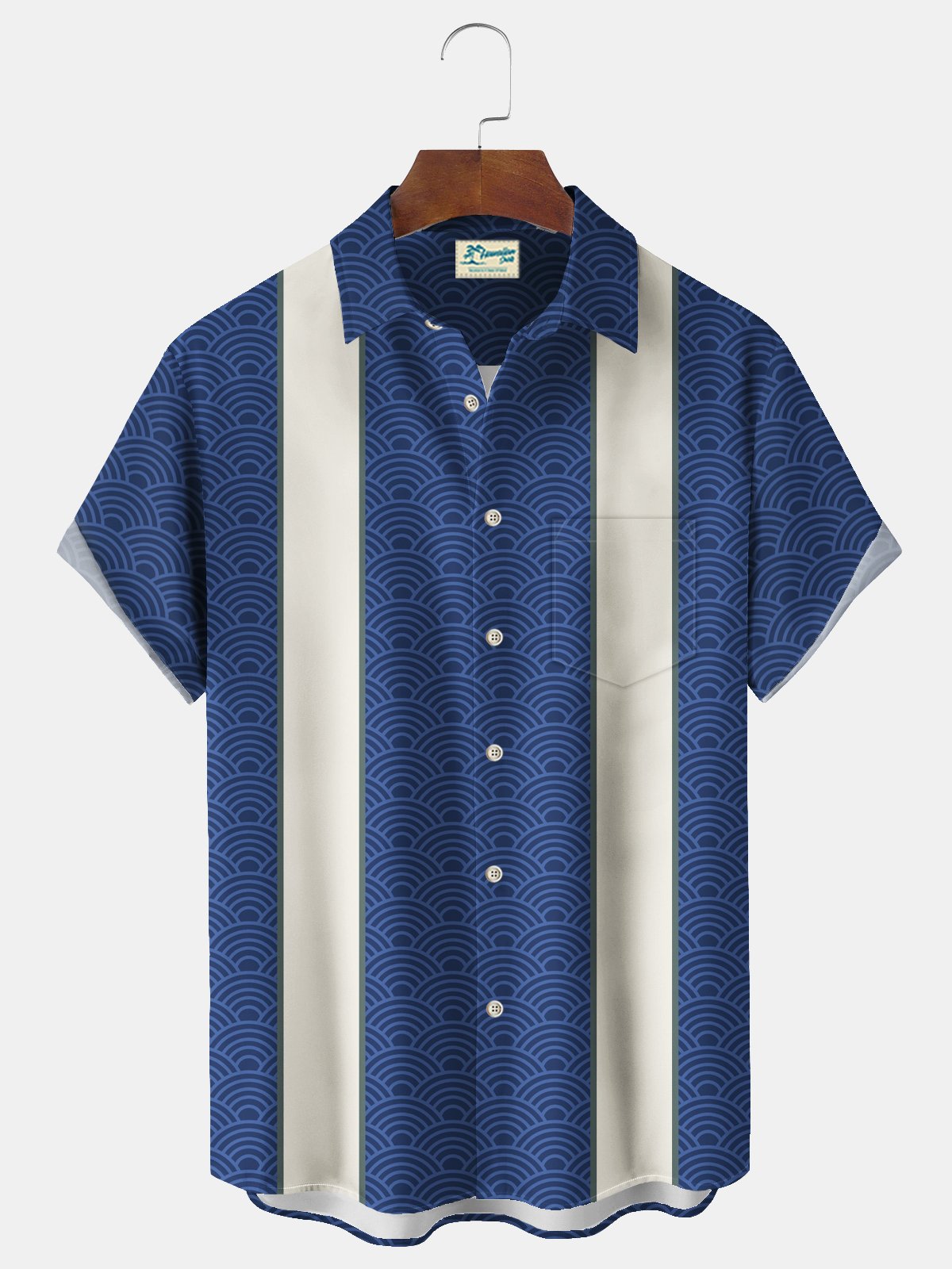 Alohadaddy Vintage Bowling Stripe Print Men's Chest Pocket Stretch Hawaiian Shirt