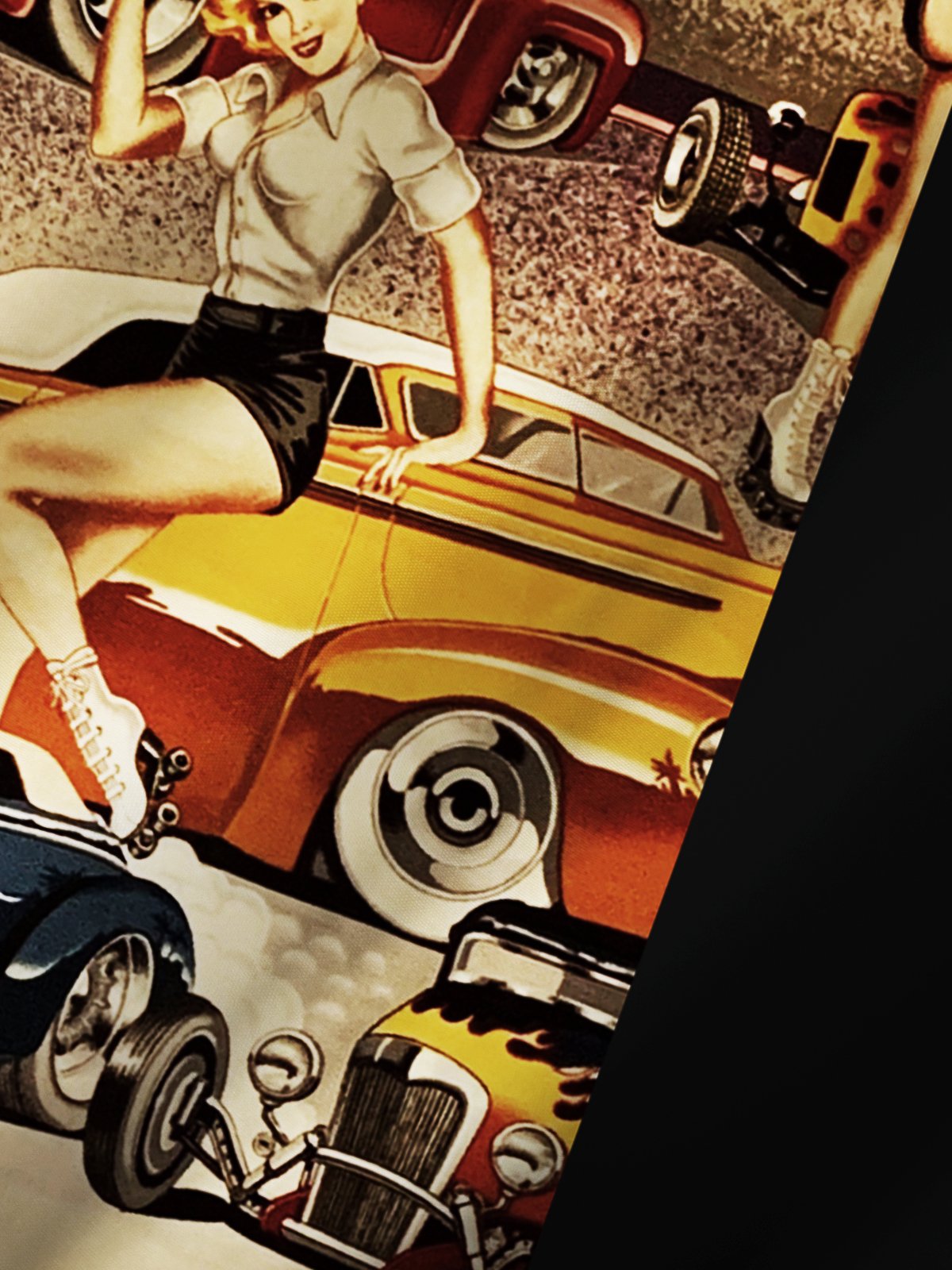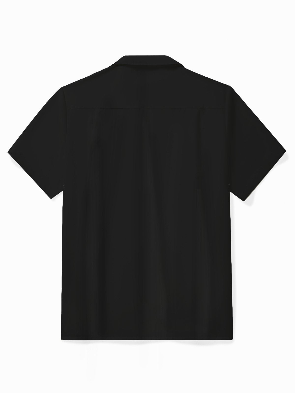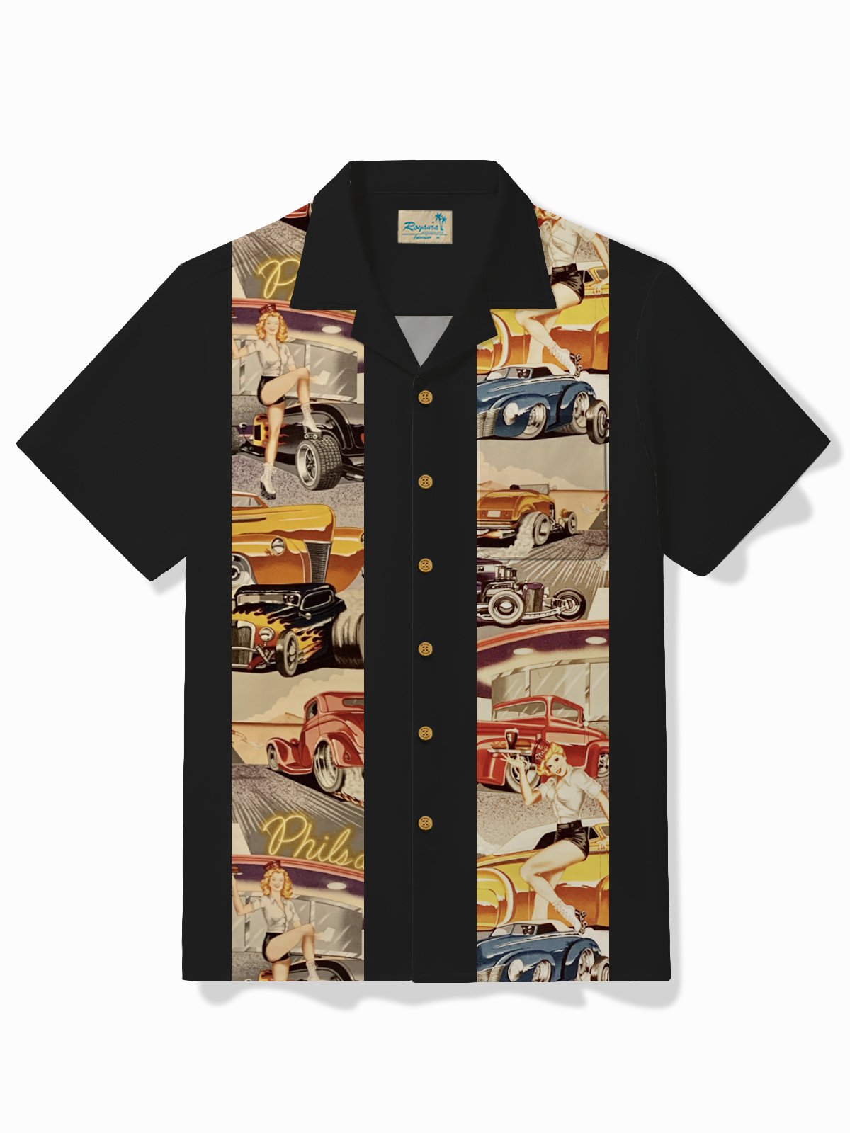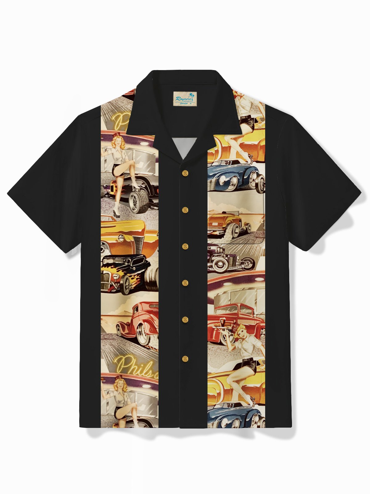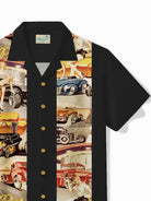 Alohadaddy Vintage Classic Car Black Men's Bowling Shirt Easy Care Camp Pocket Shirt Big Tall