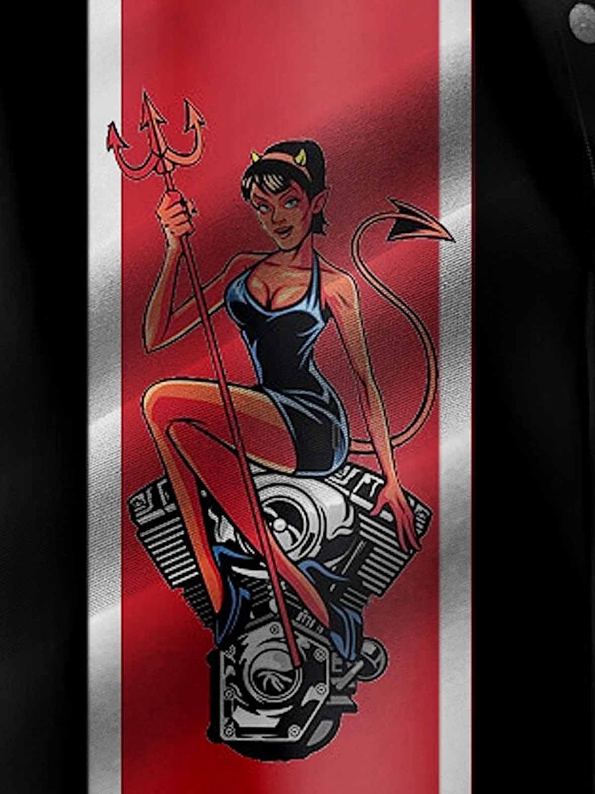 Alohadaddy Vintage Devil Biker Print Pocket Bowling Shirt