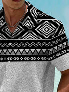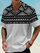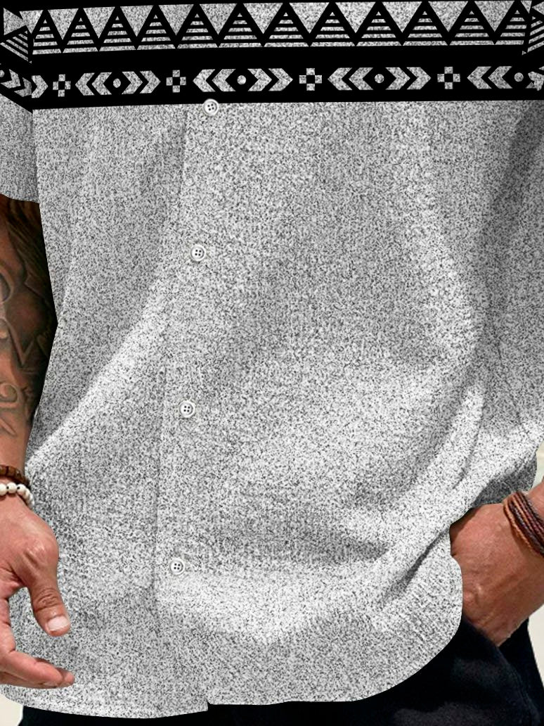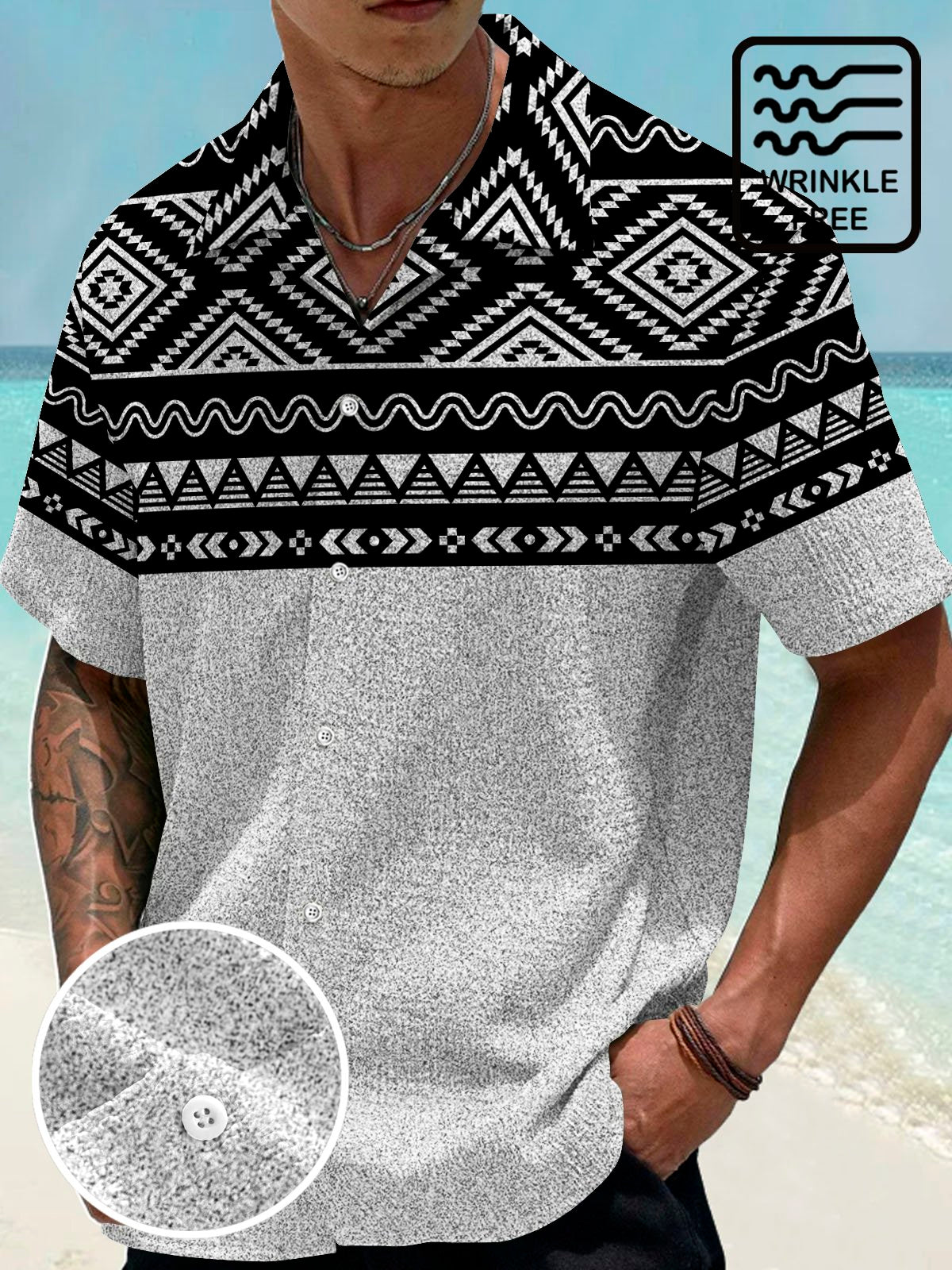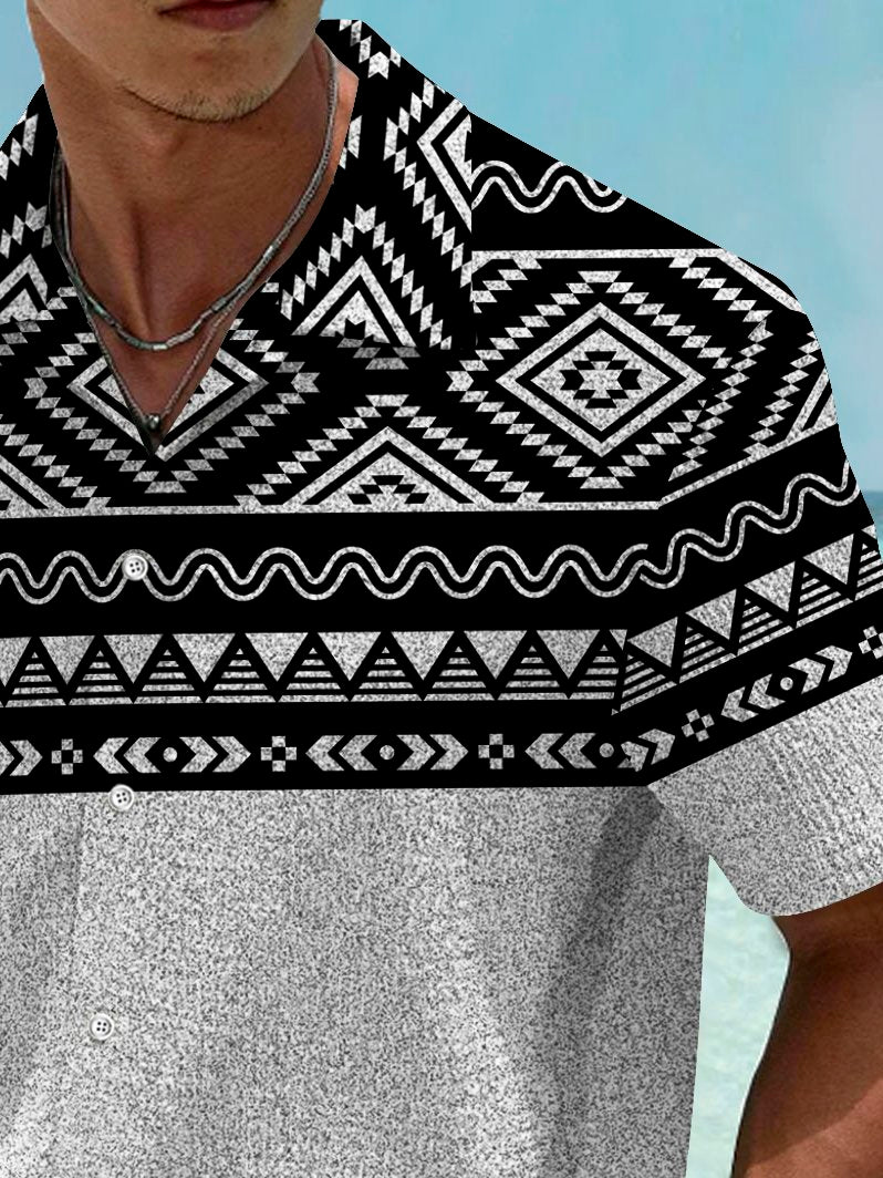 Alohadaddy Vintage Ethnic Pattern Print Men's Chest Pocket Seersucker Stretch Shirt Big Tall