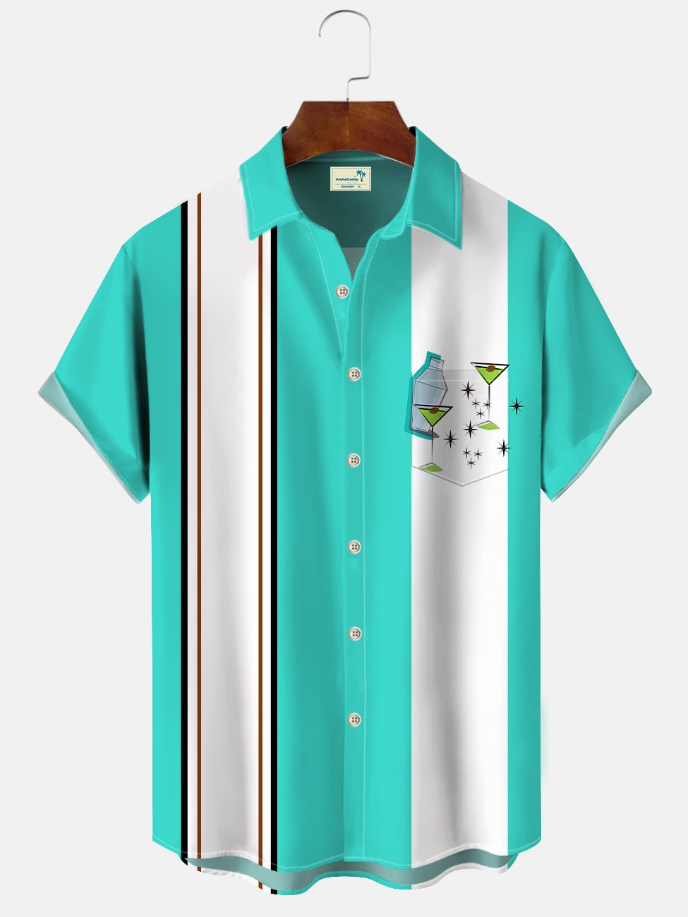 Alohadaddy Vintage Geometric Atomic Print Men's Button Pocket Shirt
