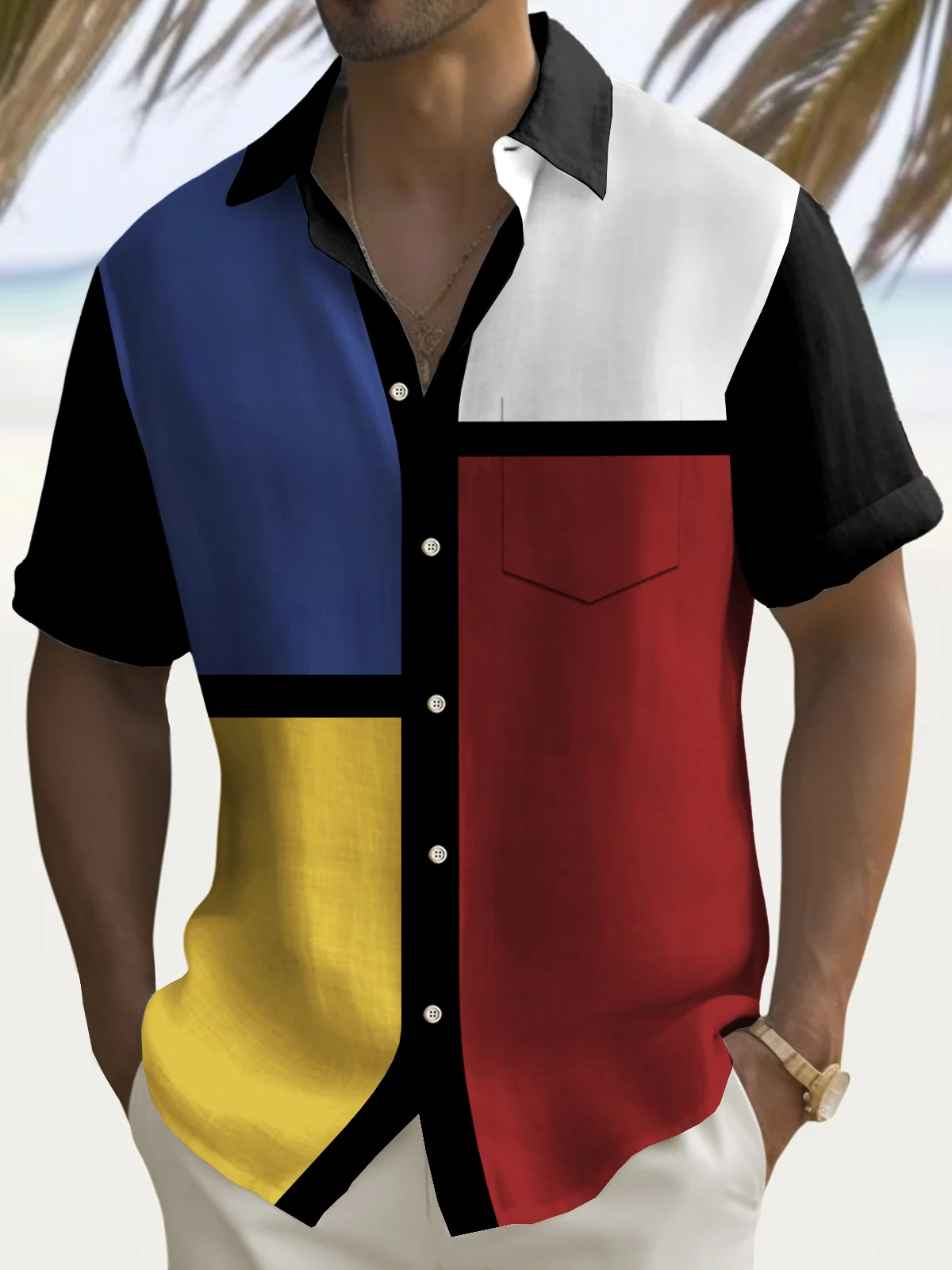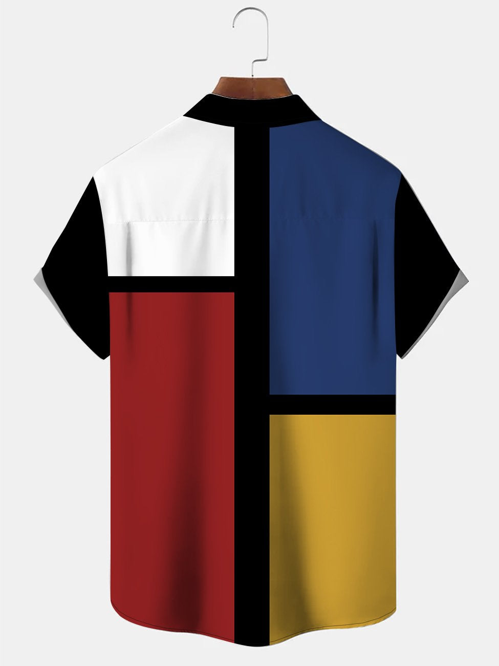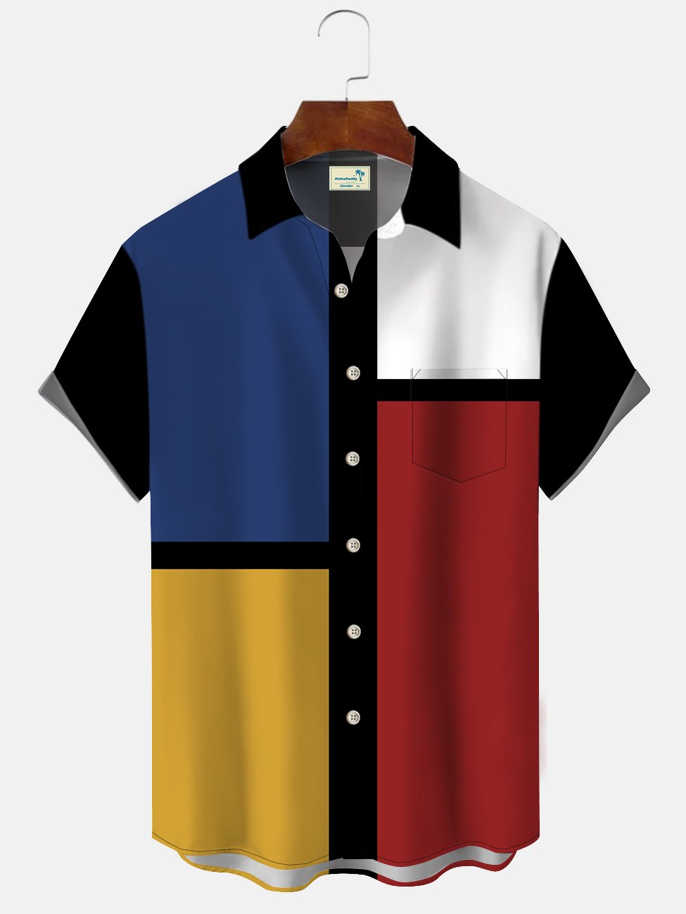 Alohadaddy Vintage Geometric Print Chest Pocket Big Tall Men's Turtleneck Shirt