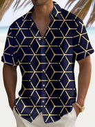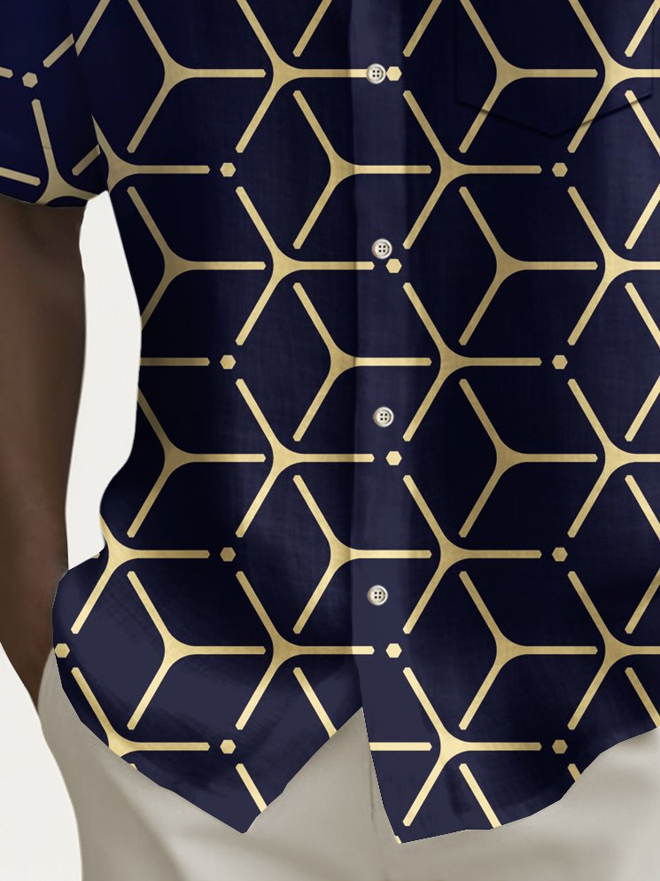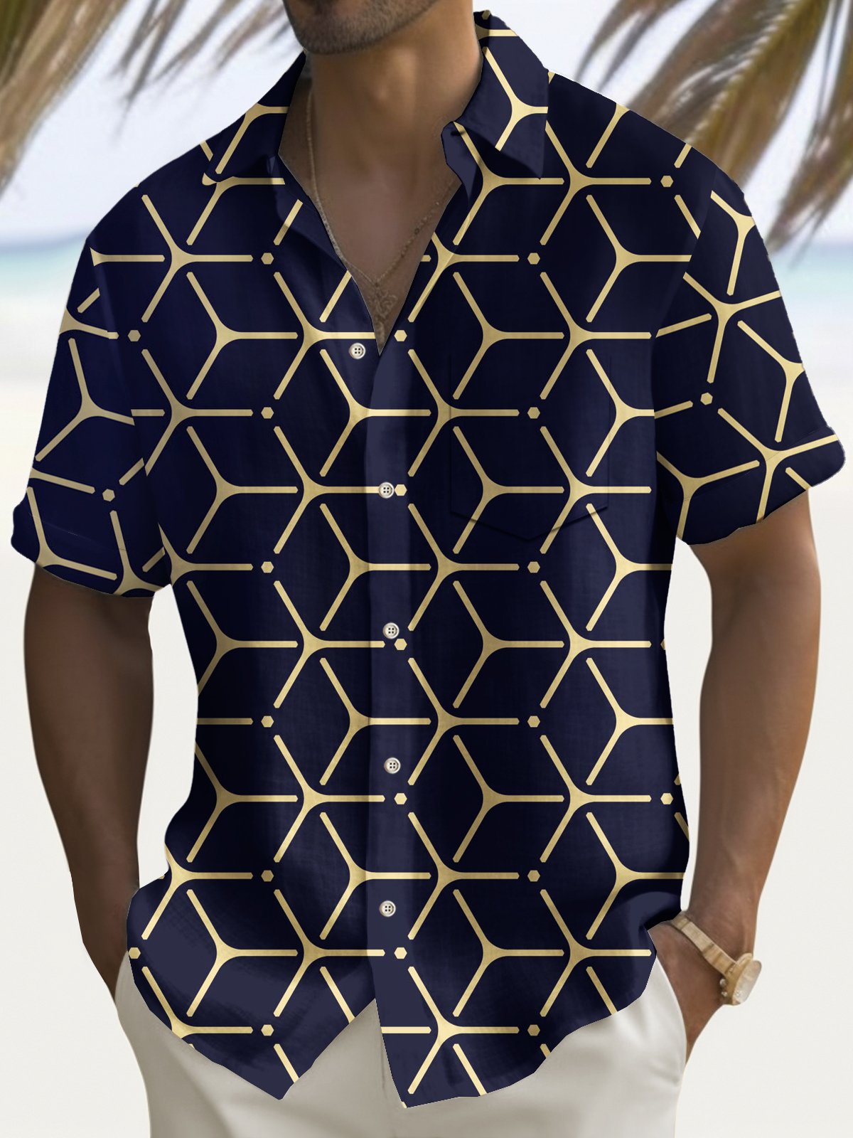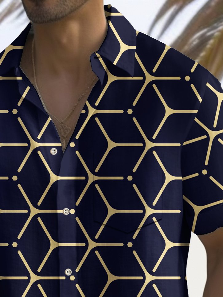 Alohadaddy Vintage Geometric Print Chest Pocket Stretch Hawaiian Shirt Big Tall
