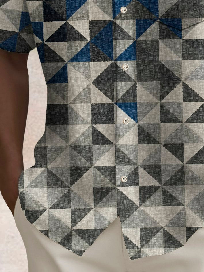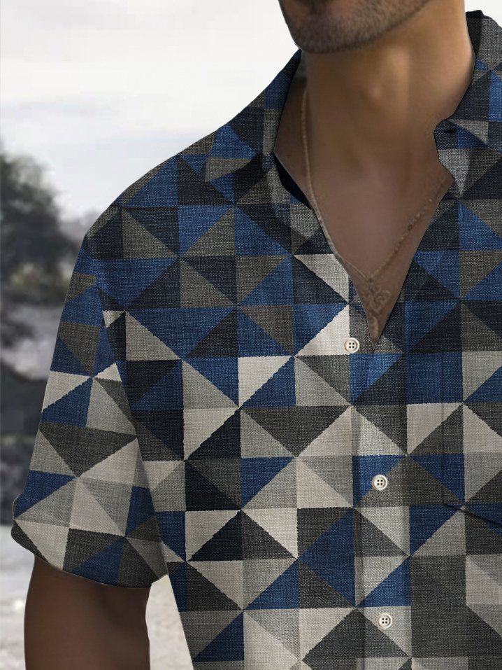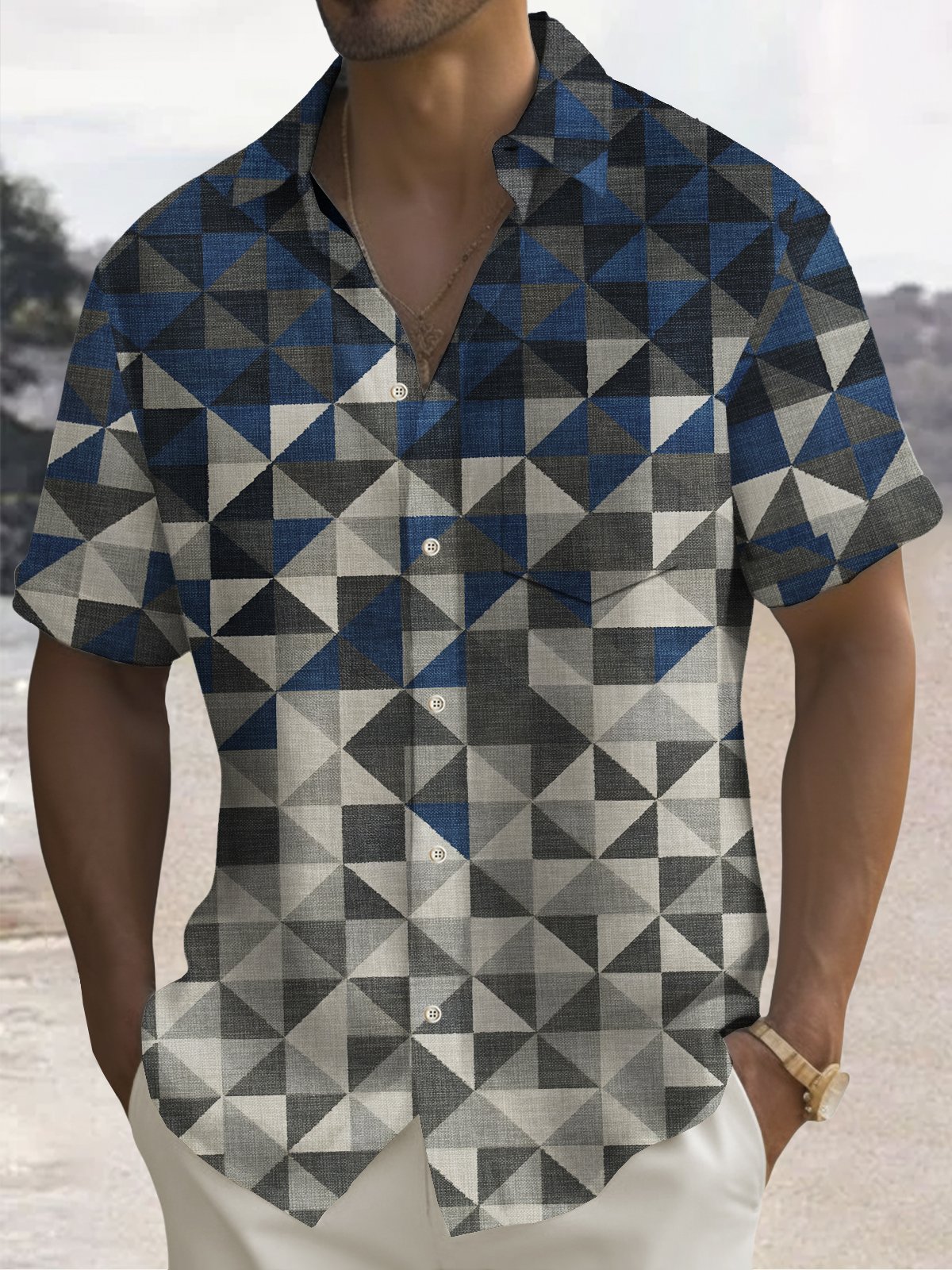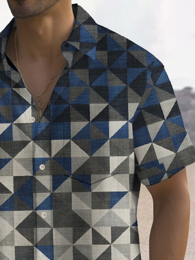 Alohadaddy Vintage Geometric Print Chest Pocket Stretch Shirt Big Tall