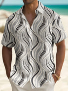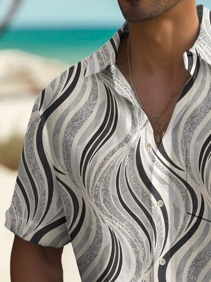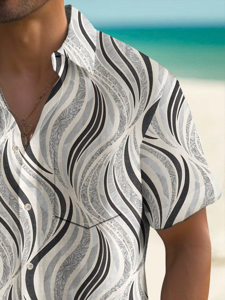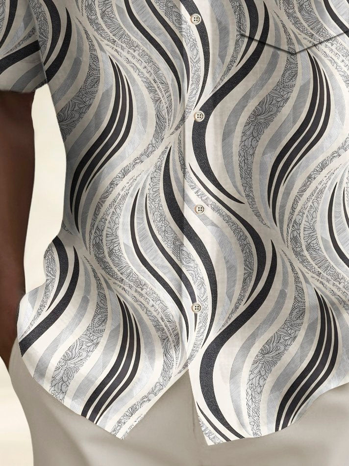 Alohadaddy Vintage Geometric Texture Print Men's Chest Pocket Stretch Shirt Big Tall