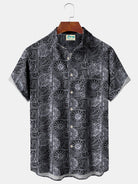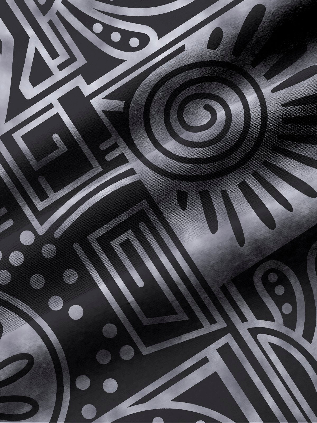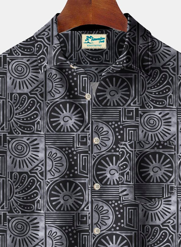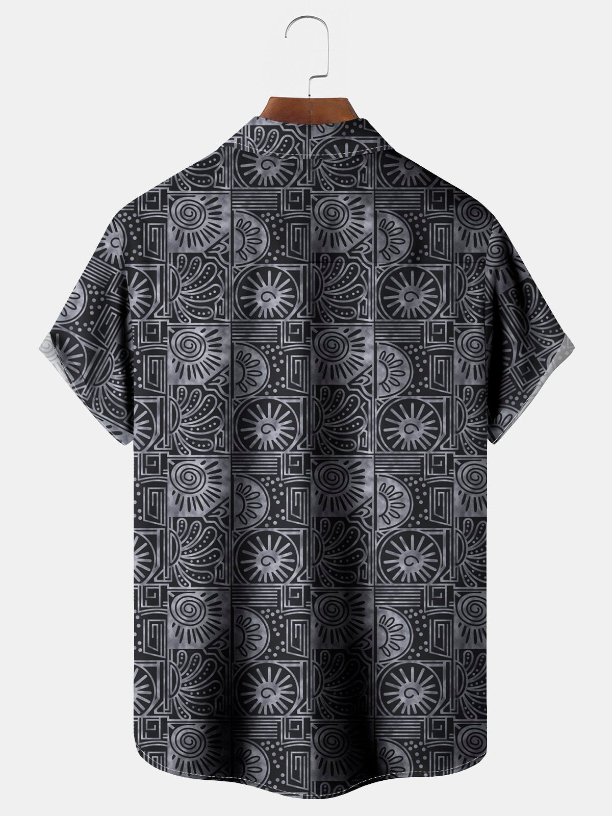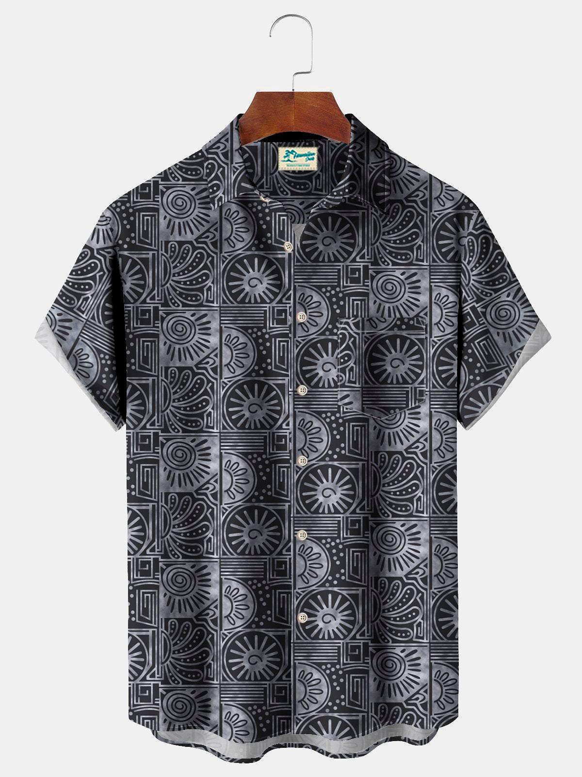 Alohadaddy Vintage Geometric Texture Printed Chest Pocket Men's Turtleneck Shirt Big Tall