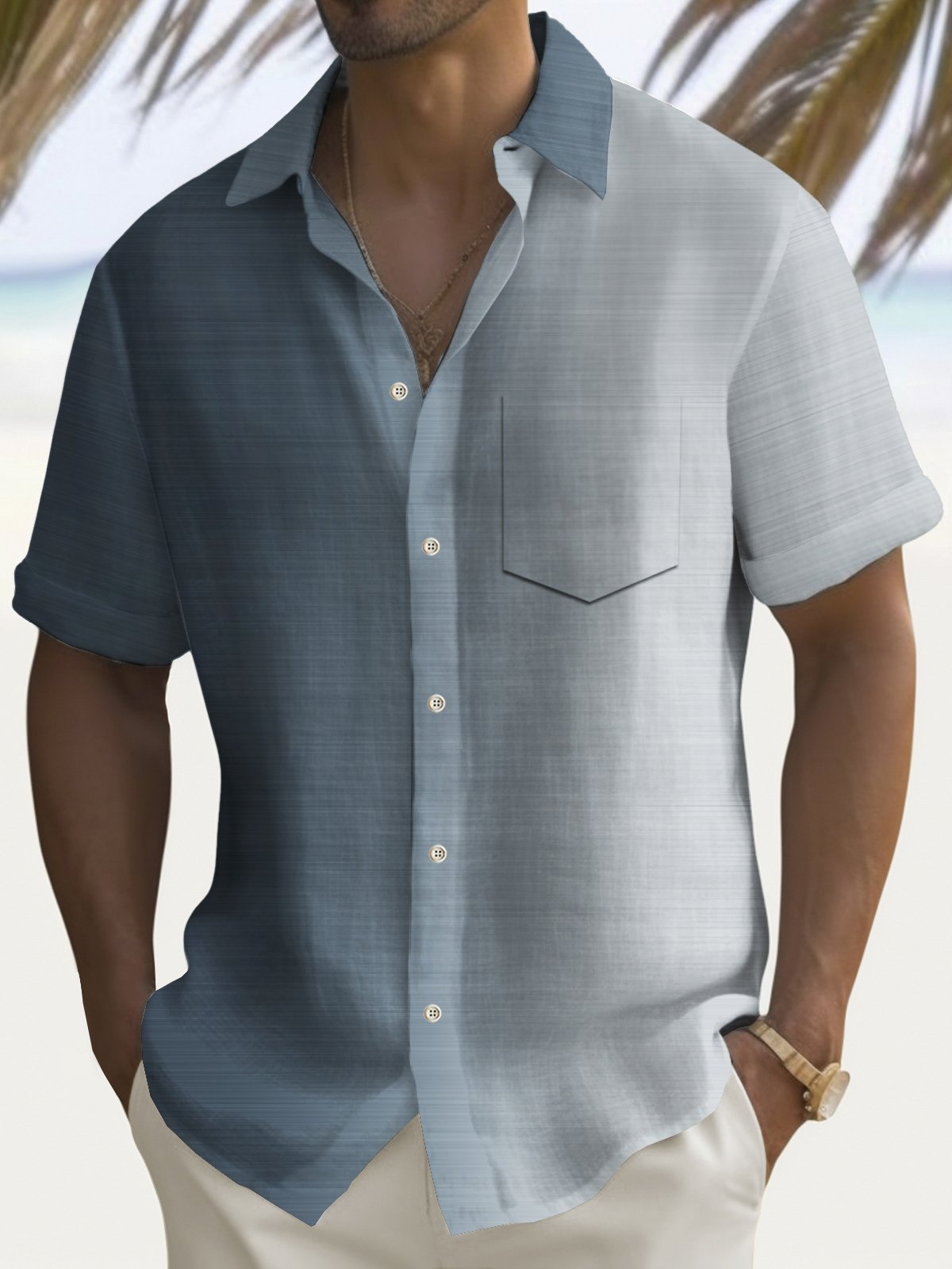 Alohadaddy Vintage Gradient Print Chest Pocket Stretch Shirt Big Tall