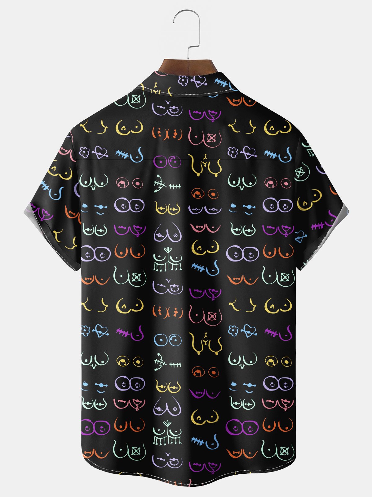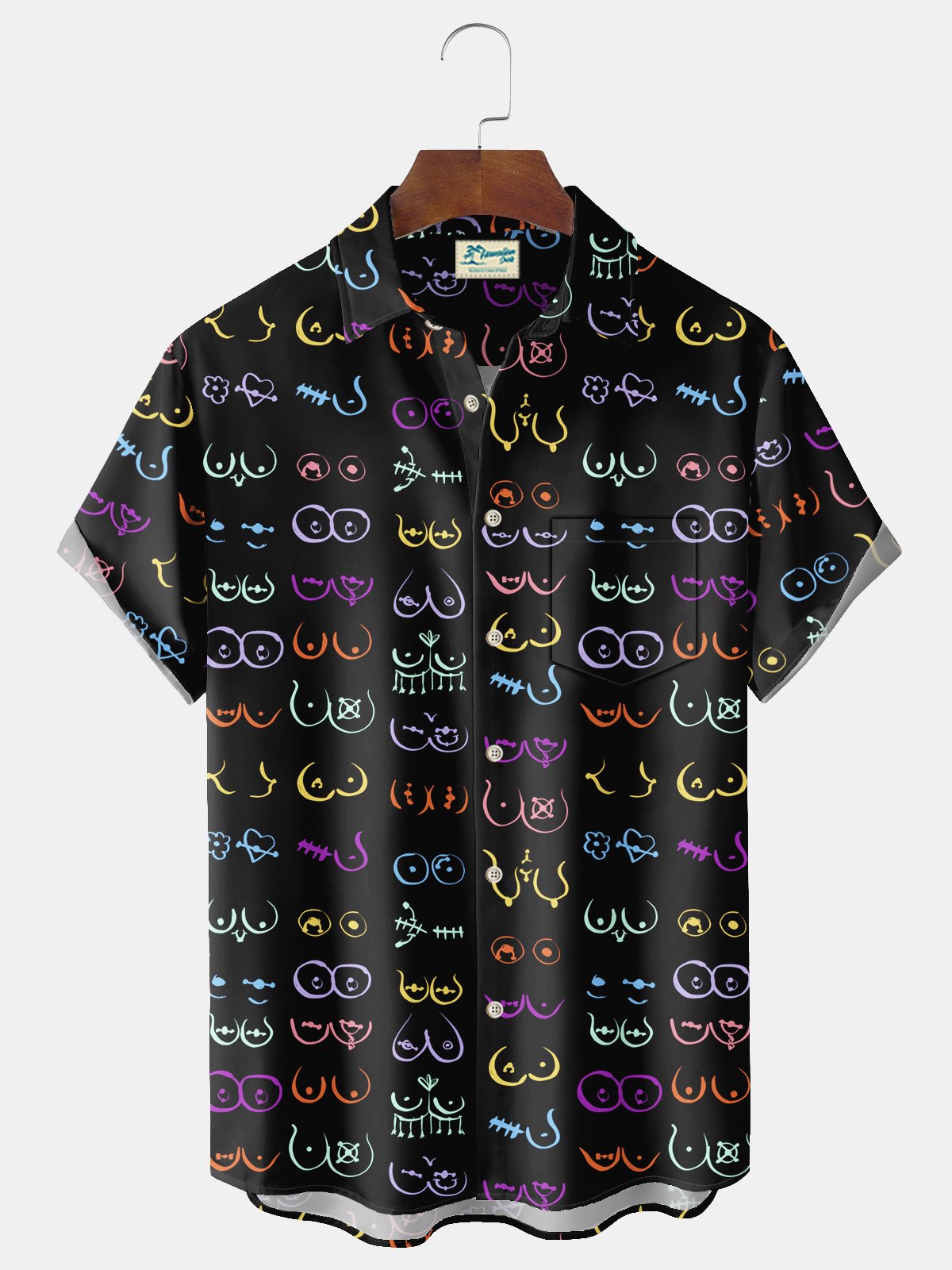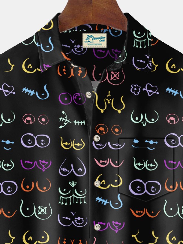 Alohadaddy Vintage Line Cartoon Print Men's Chest Pocket Stretch Shirt Big Tall