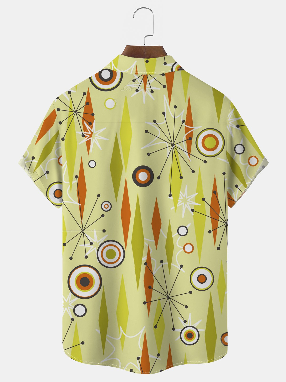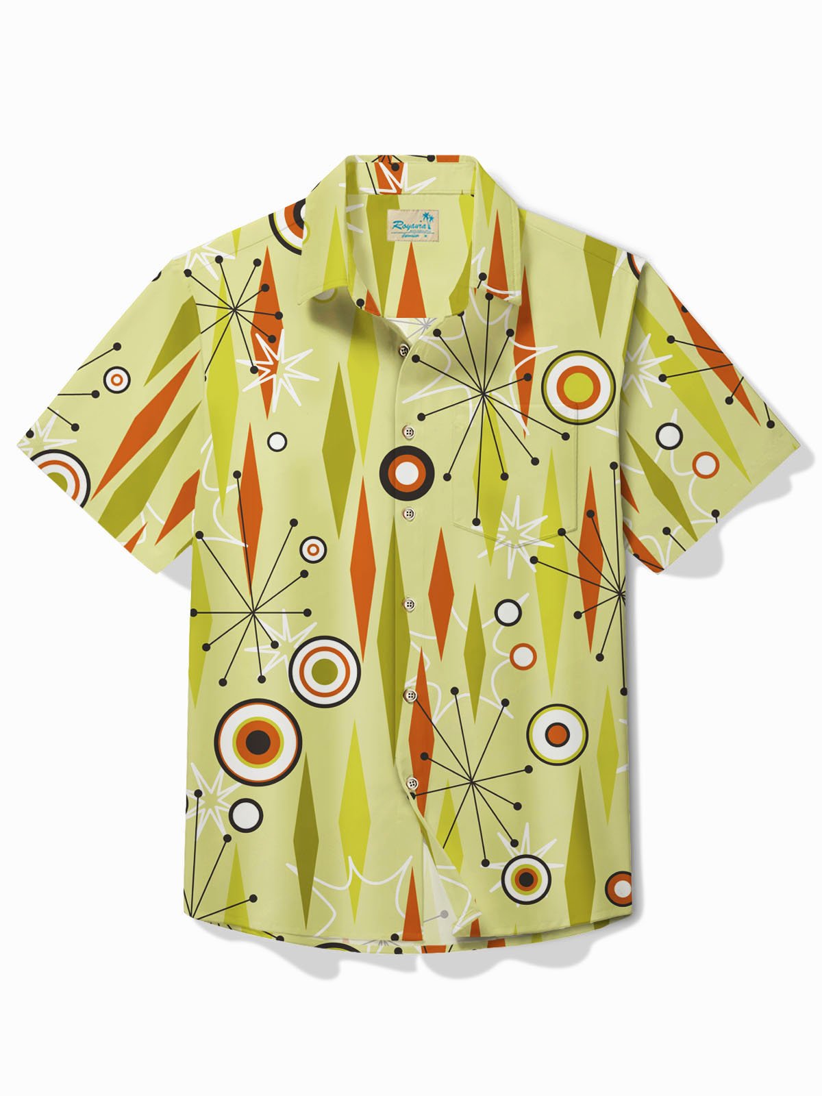 Alohadaddy Vintage Medieval Geometric Men's Casual Shirt Art Pocket Button Camp Shirt Big Tall
