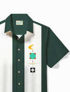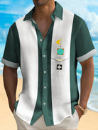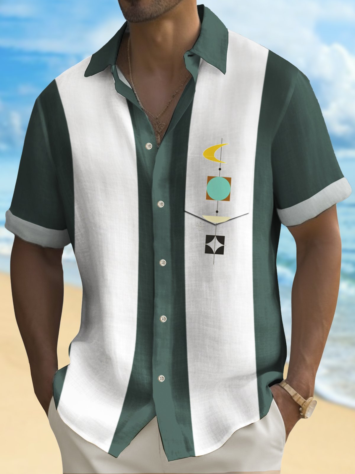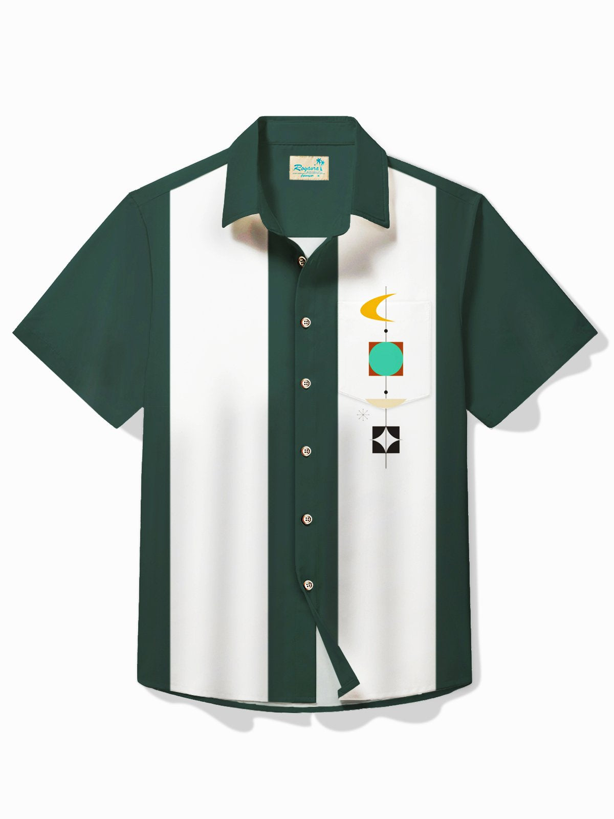 Alohadaddy Vintage Men's Bowling Medieval Geometric Art Print Shirt Stretch Pocket Camping Shirt Big Tall