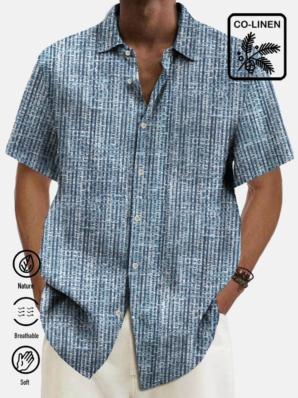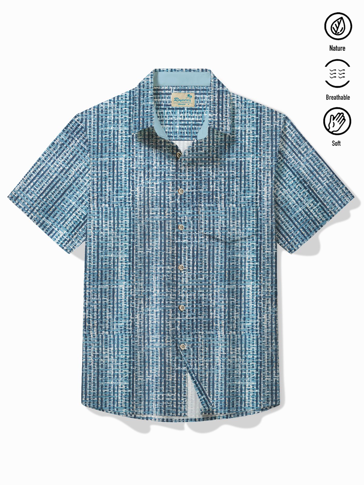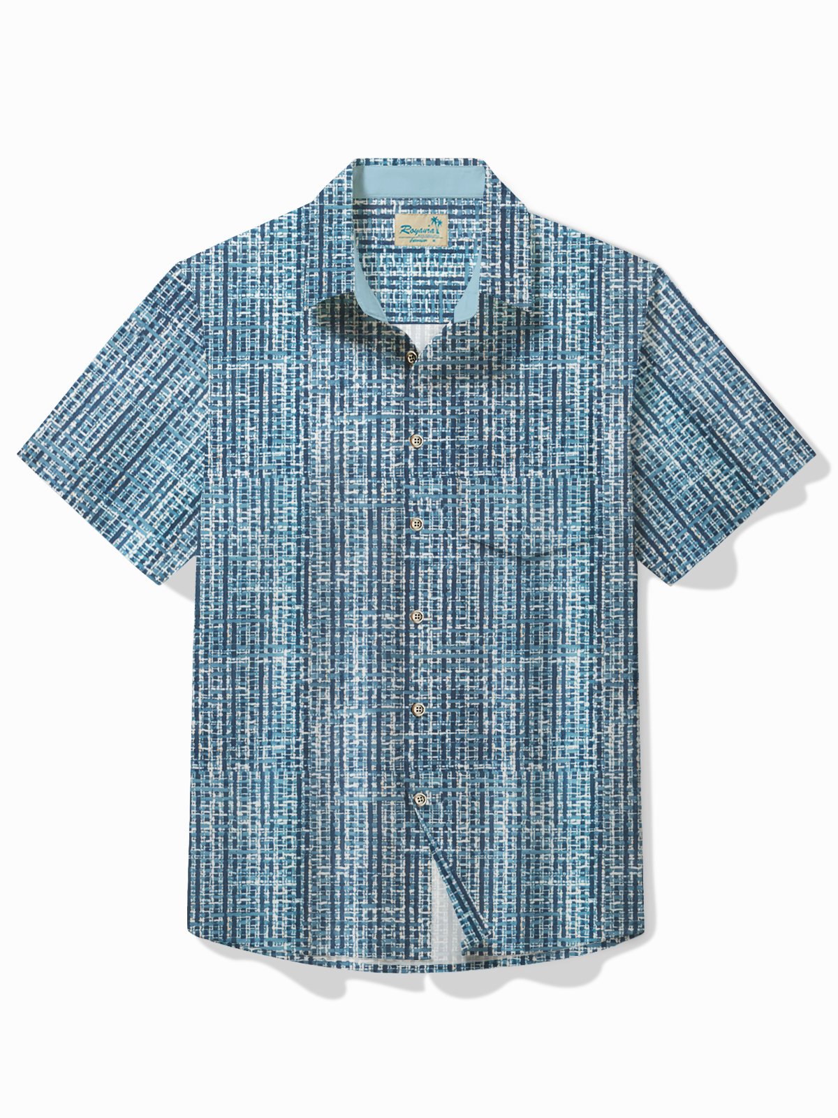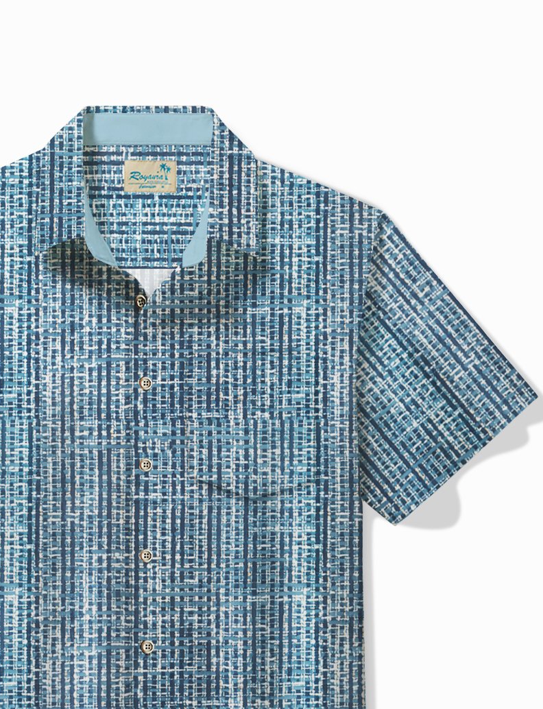 Alohadaddy Vintage Men's Hawaiian Shirt Abstract Textured Print Pocket Camping Shirt