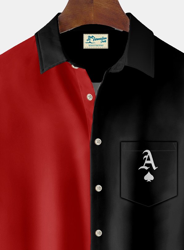Alohadaddy Vintage Playing Card Print Chest Pocket Men's Tall Shirt Big Tall