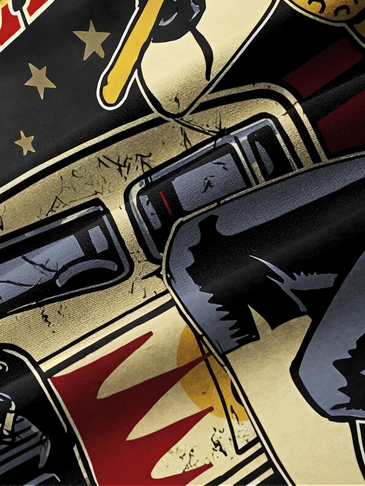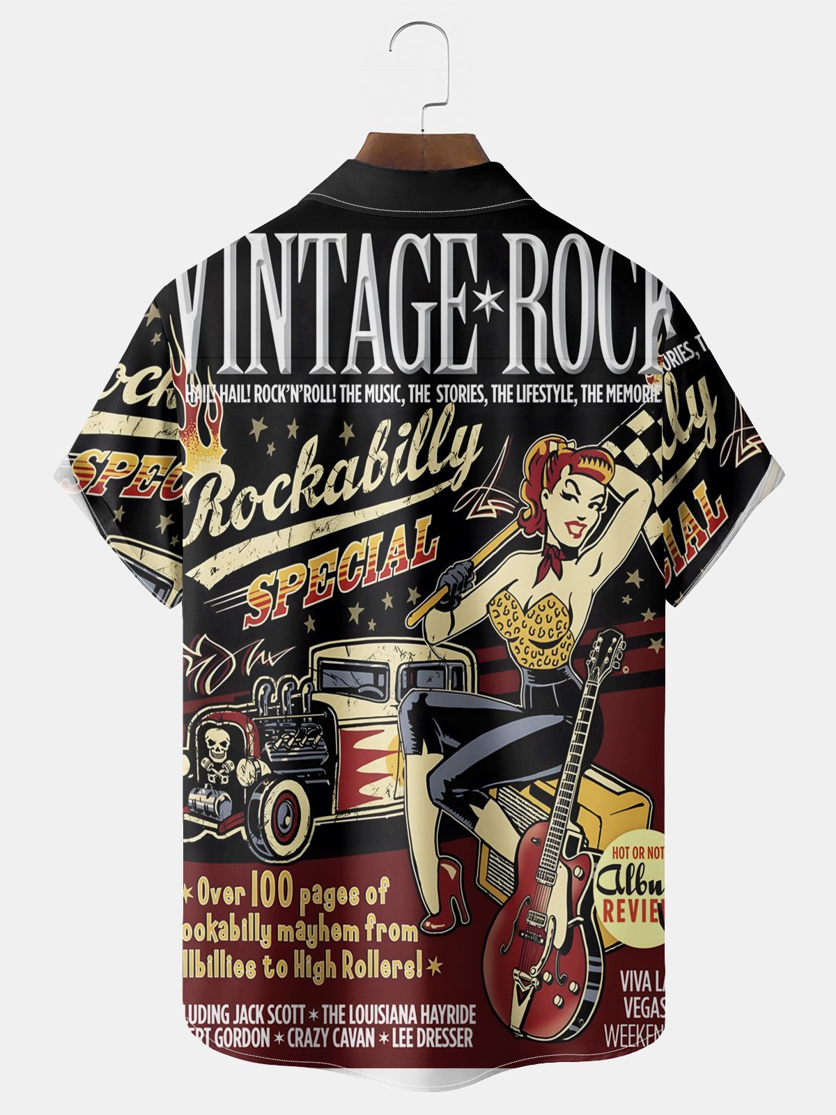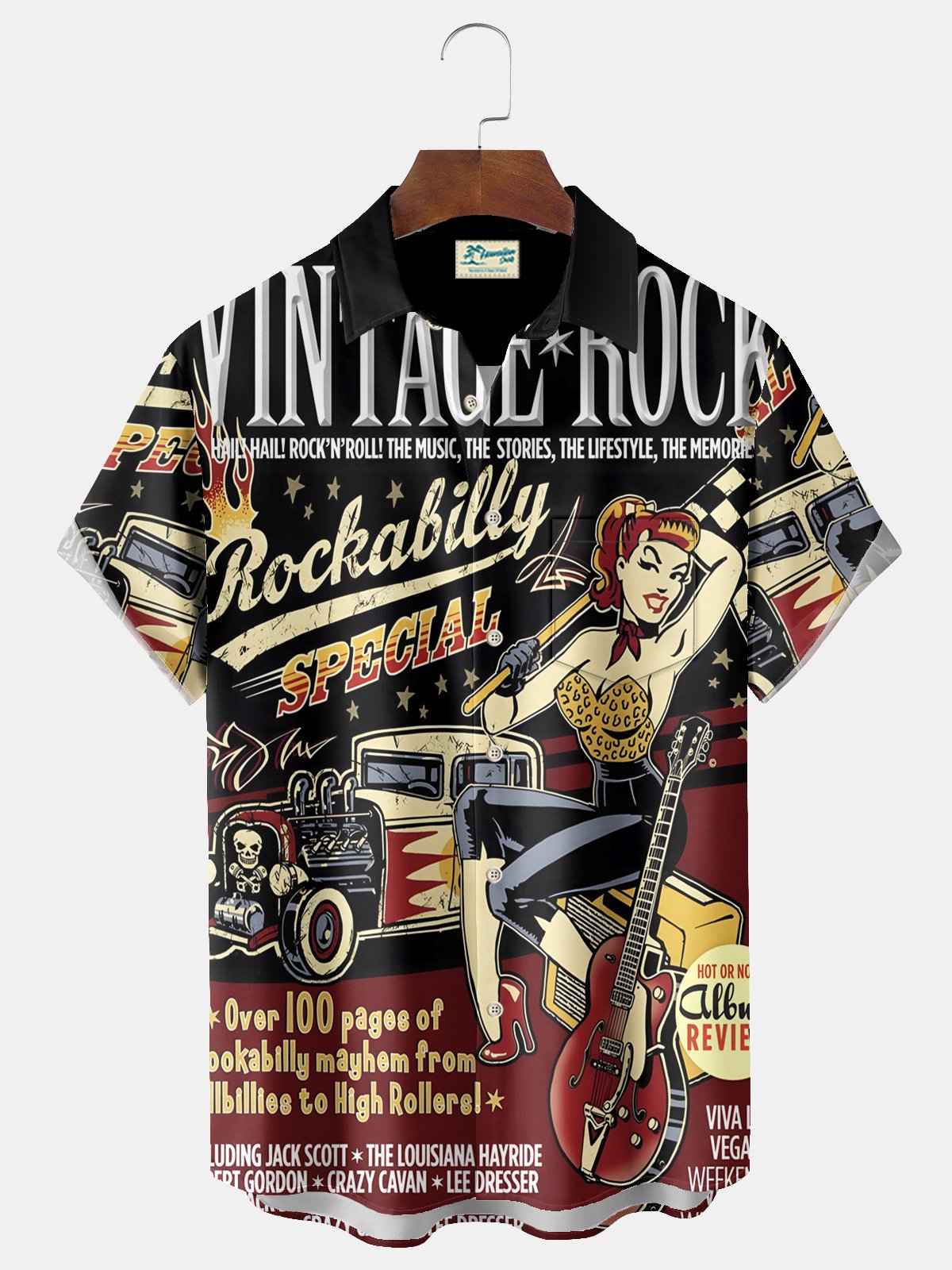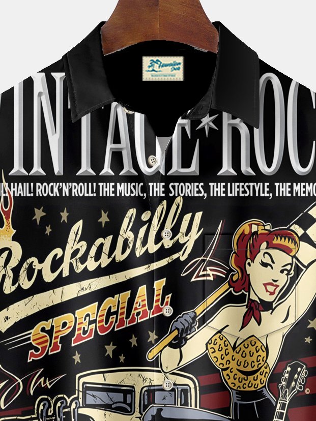 Alohadaddy Vintage Rock Print Men's Chest Pocket Stretch Shirt Big Tall