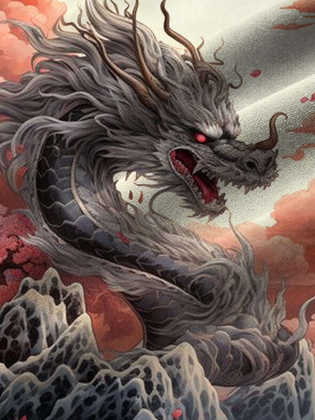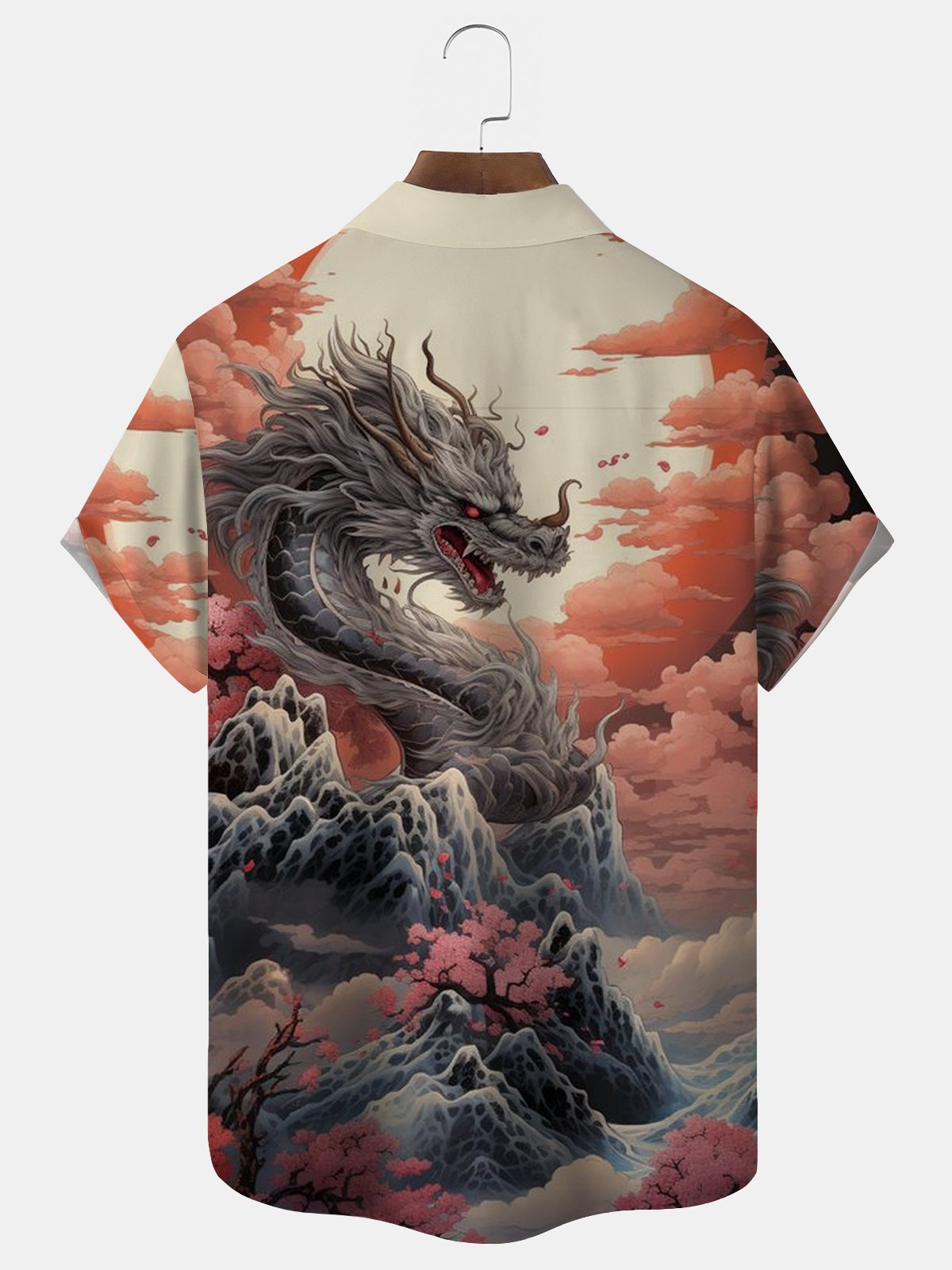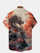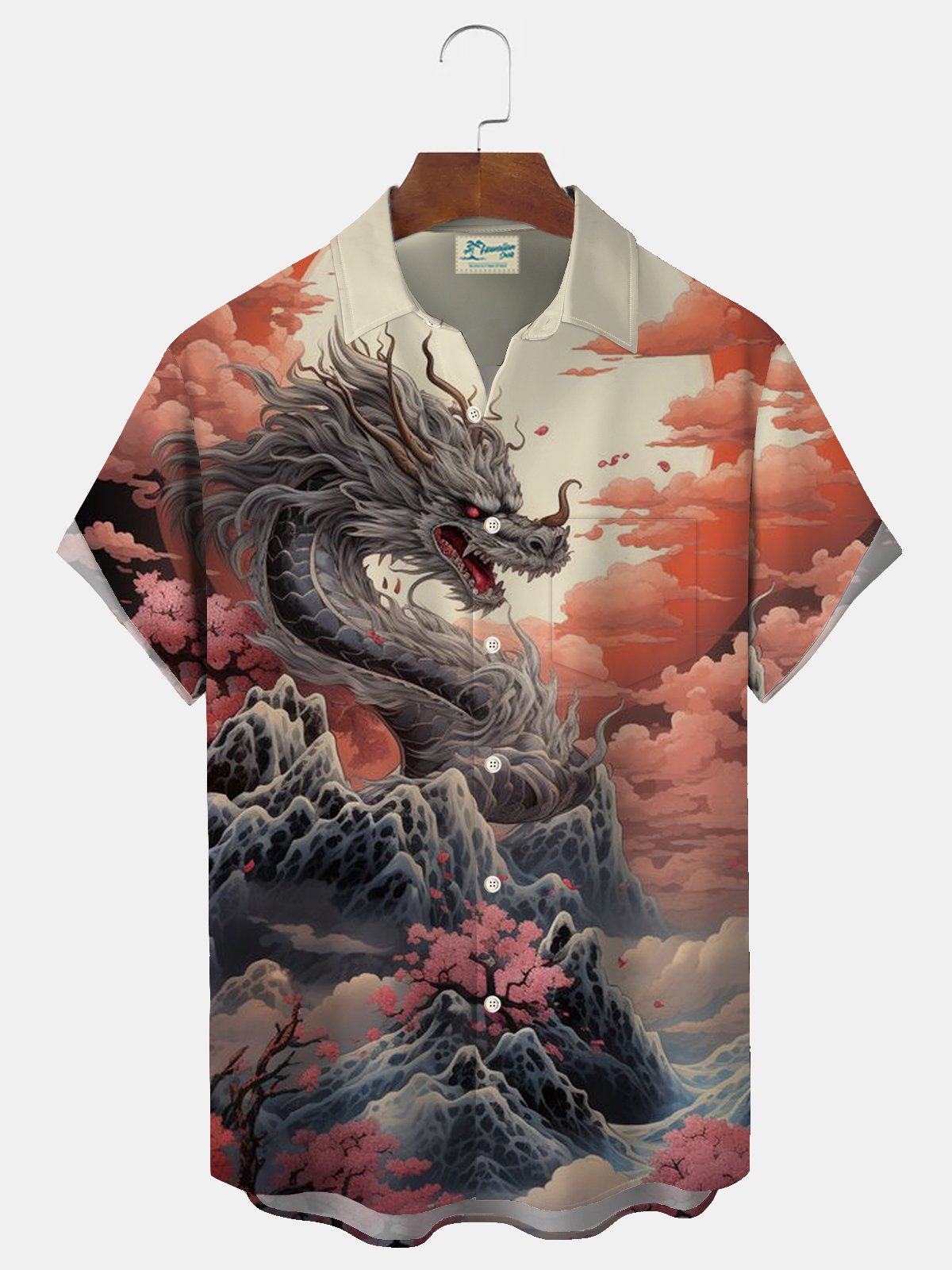 Alohadaddy Vintage Ukiyoe Dragon Print Men's Button Pocket Shirt