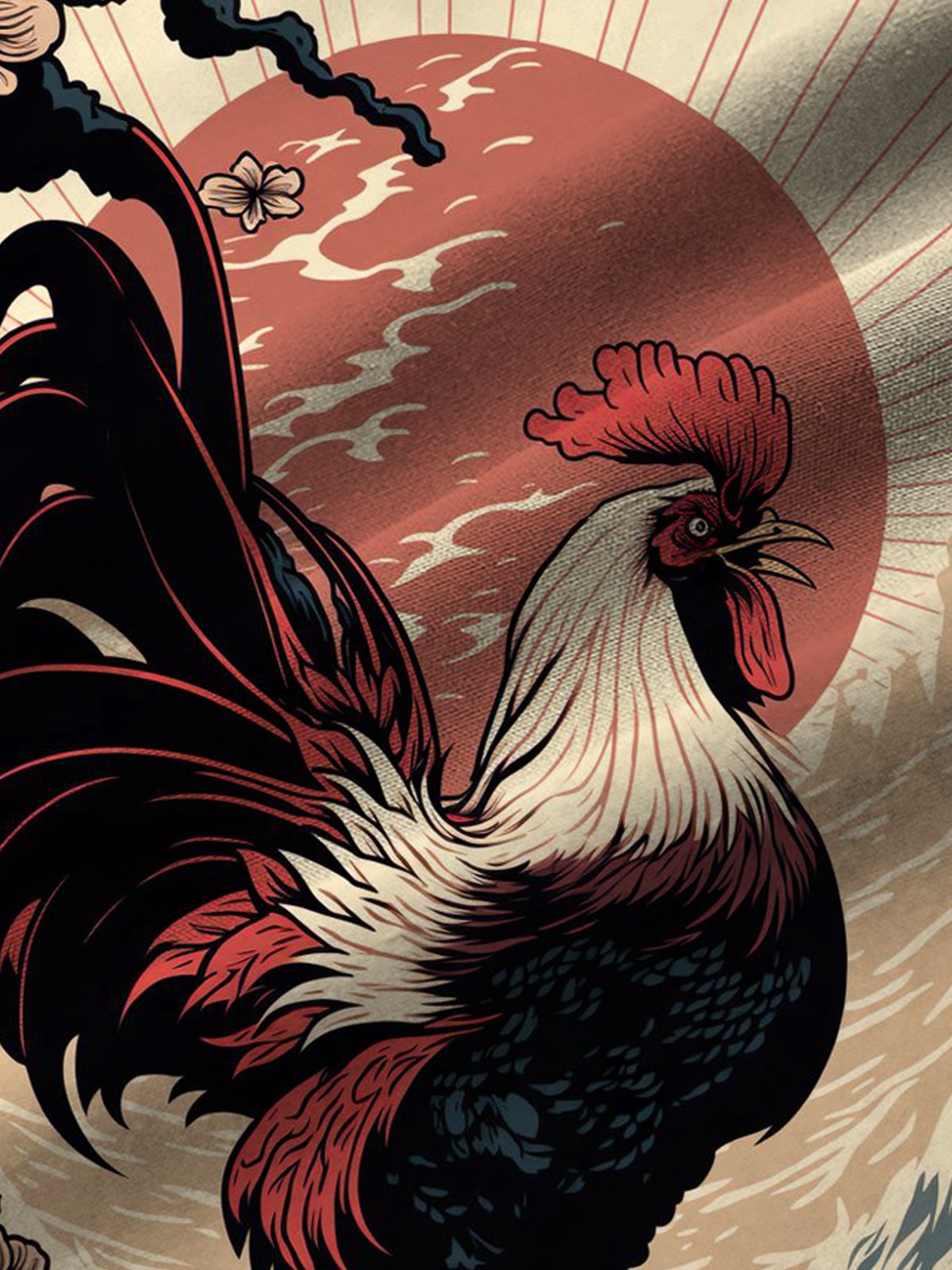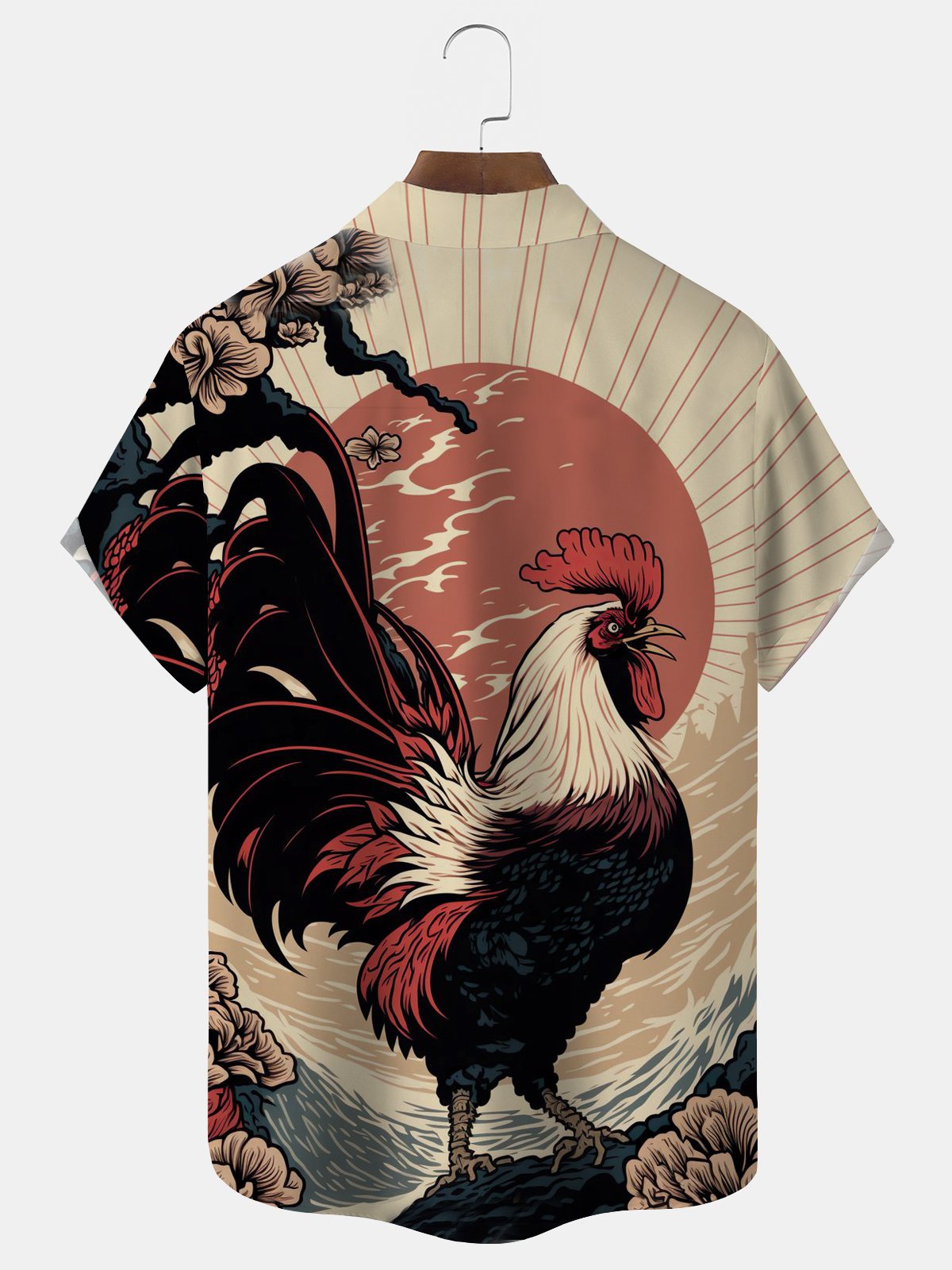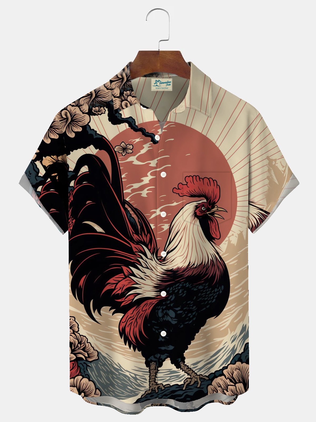 Alohadaddy Vintage Ukiyoe Rooster Print Men's Button Pocket Shirt