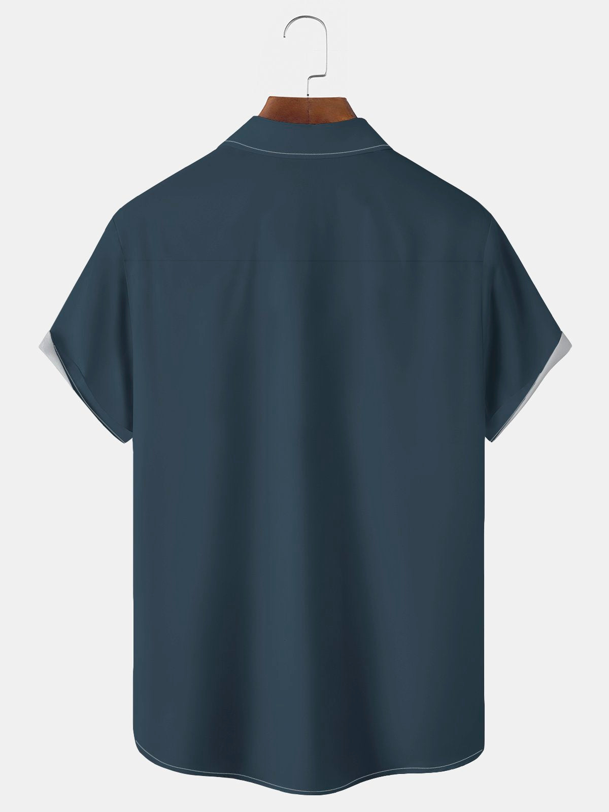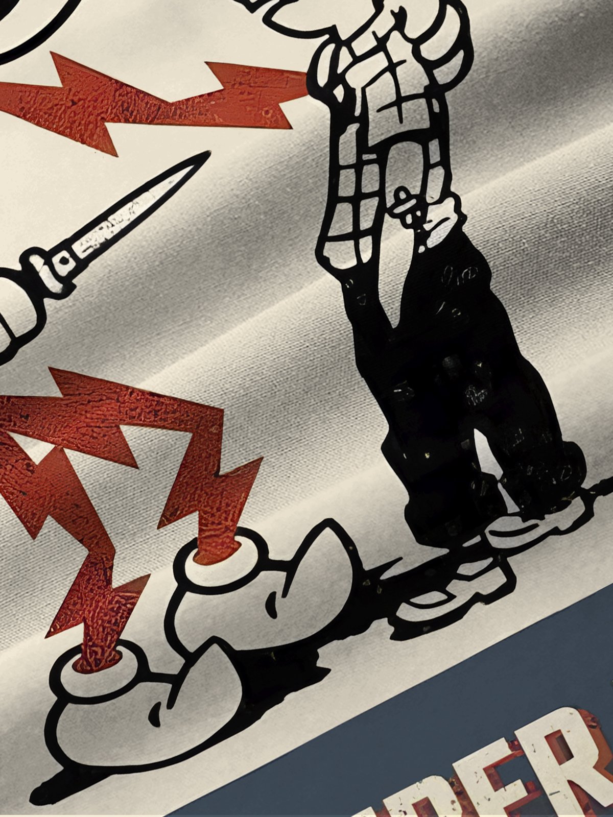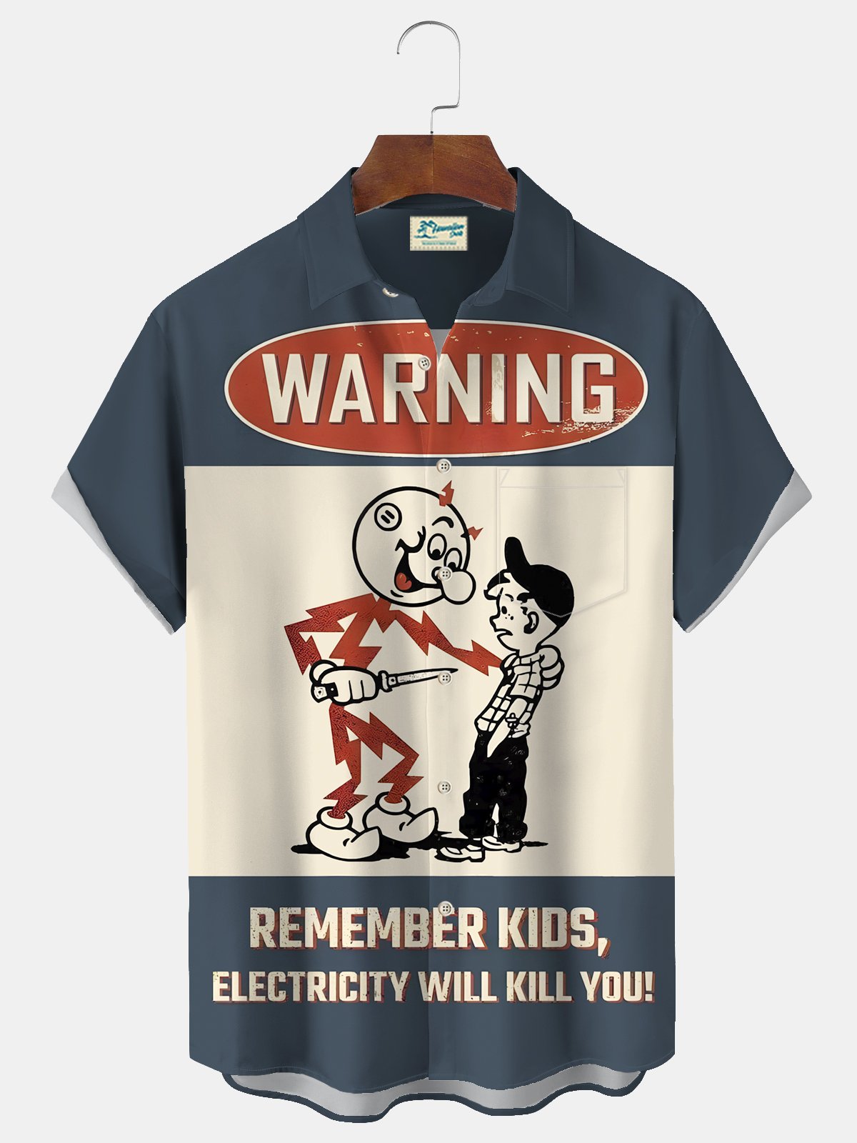 Alohadaddy Vintage Warning Cartoon Print Men's Chest Pocket Stretch Shirt Big Tall