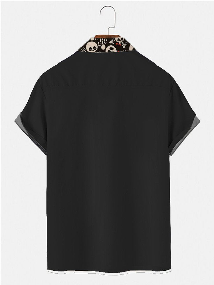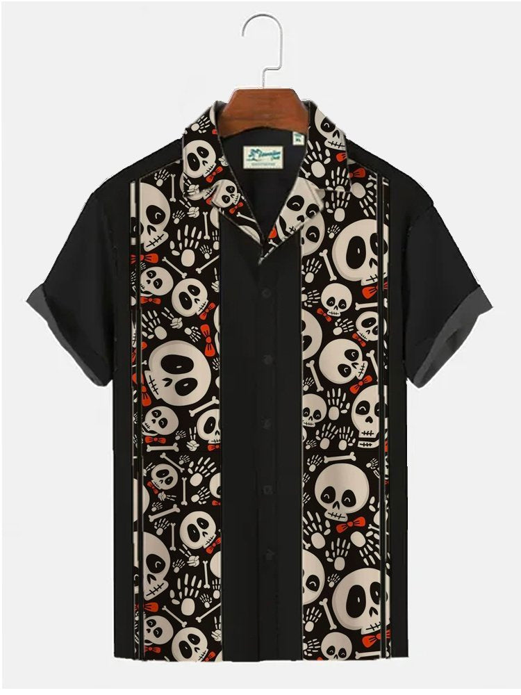 Cuban Collar Halloween Skull Print Hawaiian Shirt Top