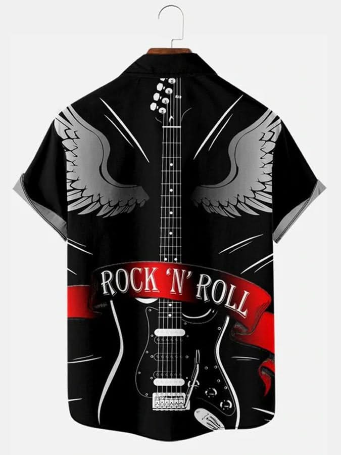 Men's Simple Casual Music Electric Guitar Splicing Lapel Shirt