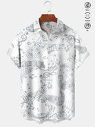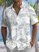 Alohadaddy® Casual Linen Music Notes Print Art Pockets Moisture Wicking Hawaiian Shirt Big & Tall