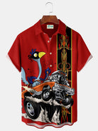 Alohadaddy 50's Retro Pinstripe Car Men's Bowling Shirt Cartoon Art Stretch Pocket Camp Shirt Big Tall